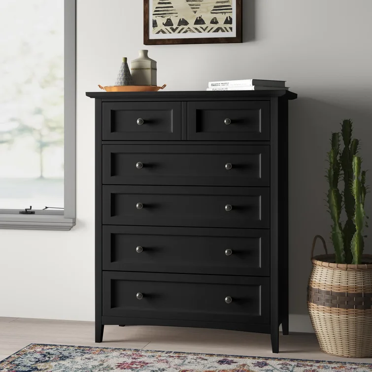 Dress up your bedroom in versatile style with this 5-drawer chest, crafted from a mix of solid and engineered wood. Its raised, molded details add a dash of dimension to your decor while its solid color blends effortlessly into both monochromatic and vibrant spaces. Perfect for stowing everything from sweaters to socks or spare linens, this functional design is a perfect fit for your bedroom. Plus, there's room up top for a mirror or jewelry box.