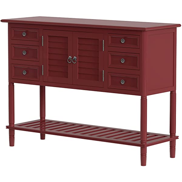 • 45" Narrow Console Table with 6 Drawers,1 Cabinet & 1 Shelf Accent Entry Table Sofa Table w/Storage for Entryway,Hallway,Living Room,Dining Room,Bedroom,Behind Couch,Foyer Buffet Table Sideboard Red