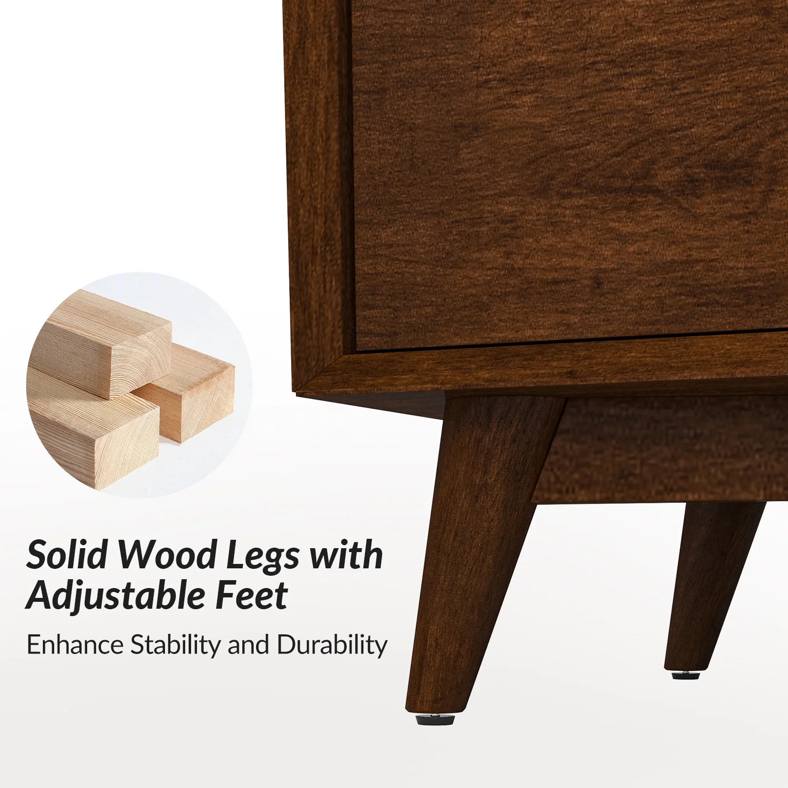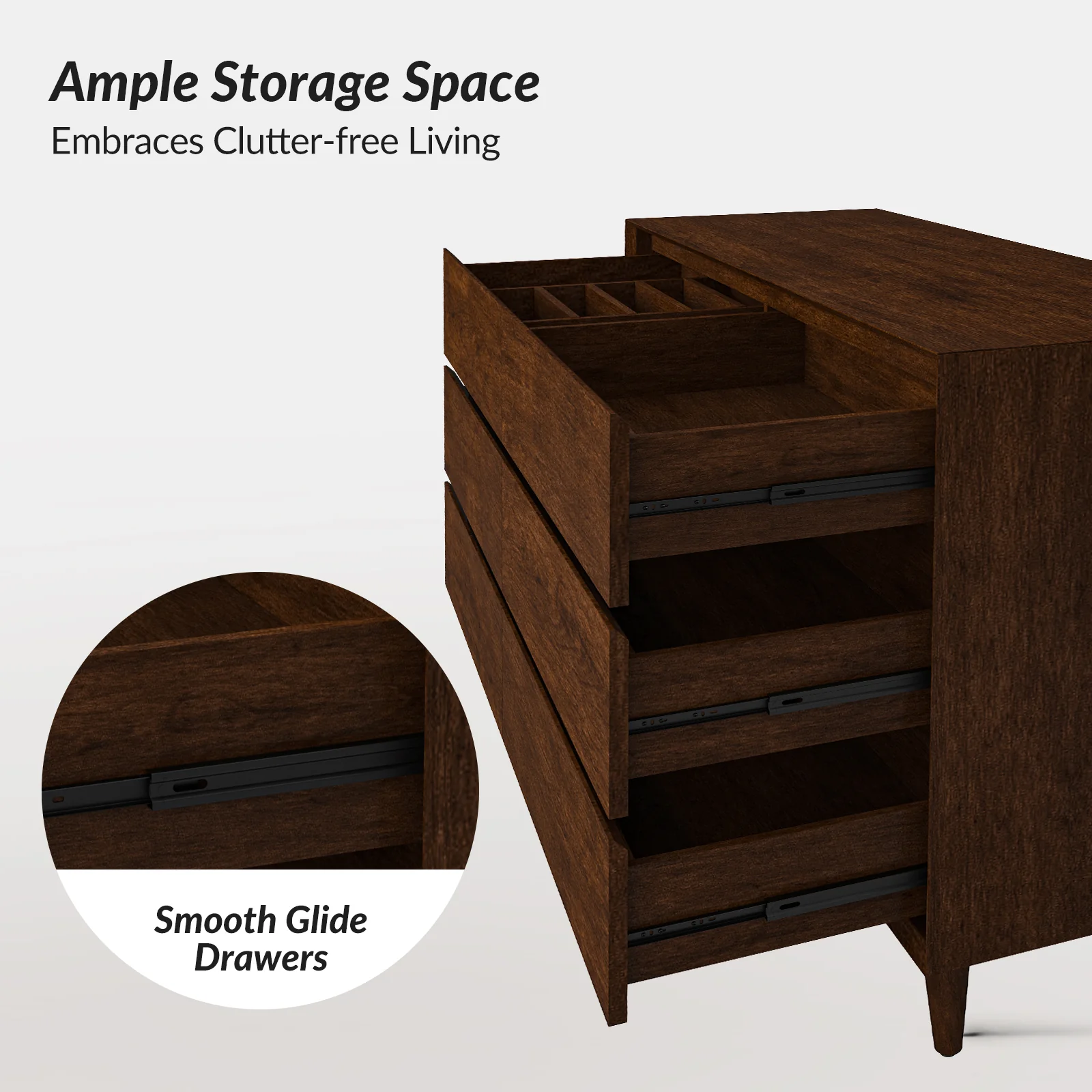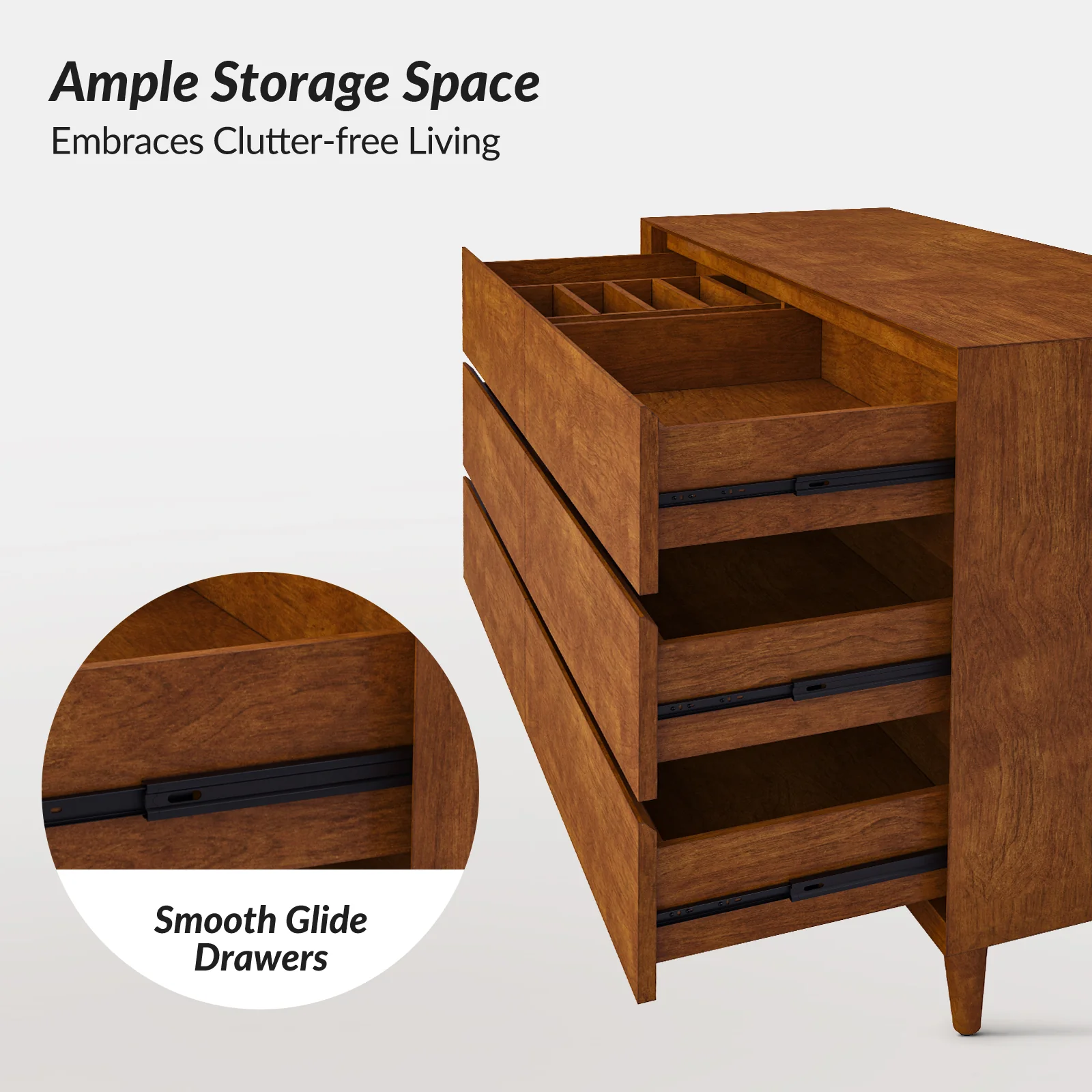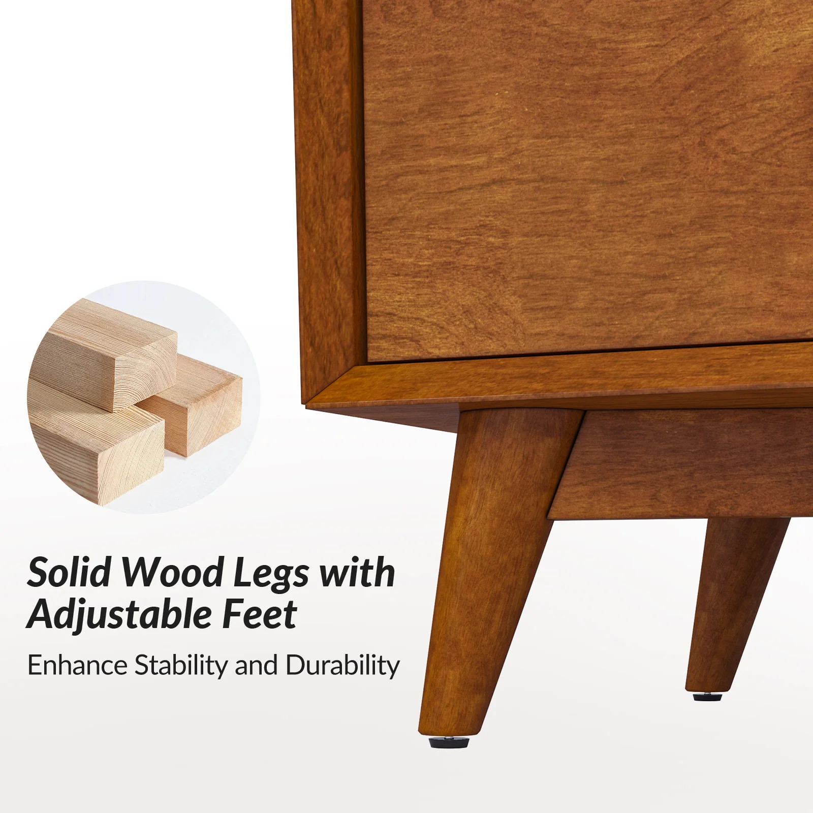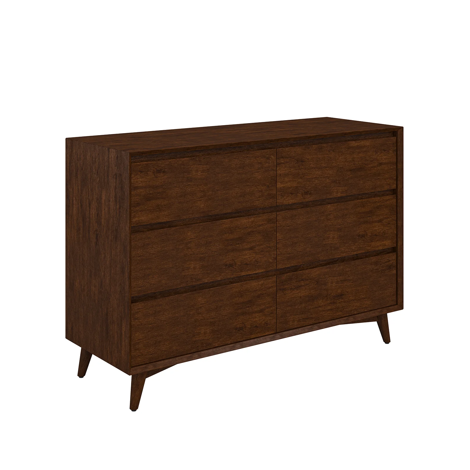 The mid-century 6-drawer nursery dresser embodies sleek sophistication with its timeless design. Crafted with sturdy materials, it offers ample storage space for your nursery essentials while maintaining a minimalist aesthetic. The drawers feature internal partitions, allowing for easy organization of your belongings. The solid wood legs provide stability and durability. Additionally, the adjustable feet ensure stability on uneven surfaces. This nursery dresser seamlessly blends functionality with style, making it a versatile addition to kids bedroom or living area. Enjoy the fusion of practicality and elegance with this tastefully designed piece of furniture.