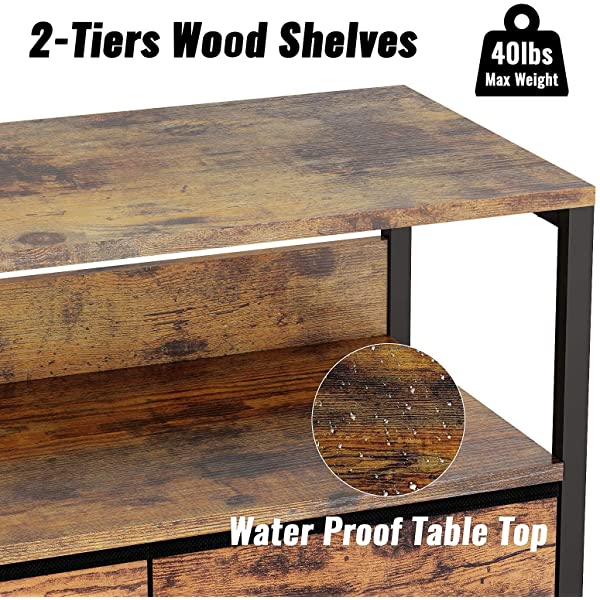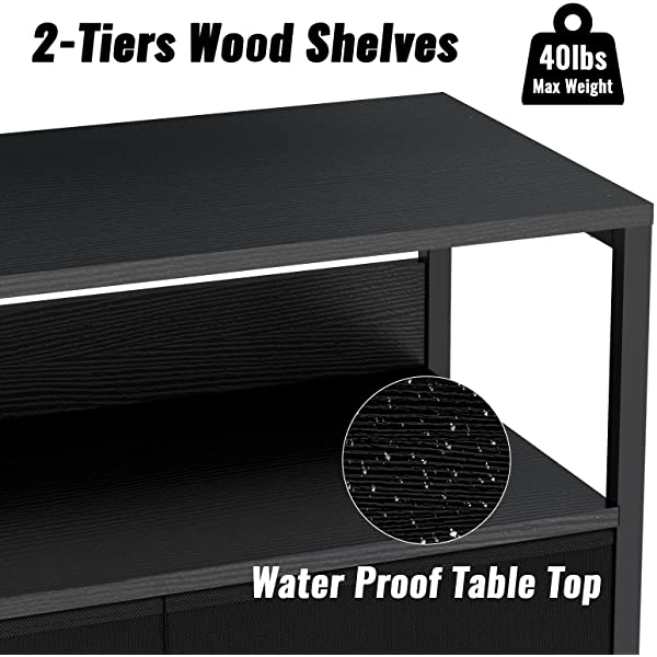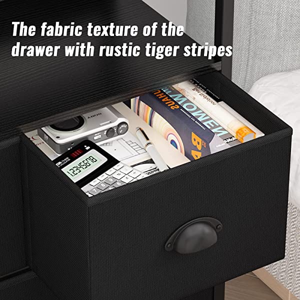 [Portable & Easy to Assemble]: The package includes all the tools and accessories, you can install it in 20 minutes with the instruction .Perfect Gift With functional and decorative characters, our tall table dresser will be a great gift for a housewarming or your family and friends. Kids Protection: This organizer is friendly to kids or young ones,the fabric drawers won't pinch hands if little guys want to organize their clothing in drawers . The anti-tip kit included provides a safe environment for your family. [Wide storage space]: Measures 22.8" (L) x 11.4" (W) x 24.8" (H). This dresser is perfect for bedroom , living room, closet, nursery or kid's room, playrooms, toddlers room, entryway, hallway, and more. [Versatile 2 Shelf Nightstand] : This nightstand contains 2 shelves and 3 fold-able drawers to provide plenty of storage space for your belongings, elegant smooth metal handle on drawers for opening and closing more easily .Wood top provides a hard surface to place printer, lamps, books, decor, and more,3 removable drawers to provide sufficient space for sorting and organizing of daily necessities, such as clothes, towels,lingerie,socks. [Stability & Safety]:The bedroom nightstand is made of Superior MDF board, which is durable and easy to clean.Fabric Drawers Made of linen fabric drawers(NOT WOOD DRAWER),which is more durable than non-woven fabrics ,the dresser storage is lightweight and portable, less of hassles to move.Anti-toppling device provided to prevent it from falling down.