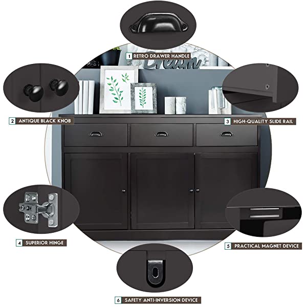• Giantex Sideboard Buffet Server Storage Cabinet Console Table Home Kitchen Dining Room Furniture Entryway Cupboard with 2 Cabinets and 3 Drawers Adjustable Shelves, White (White)