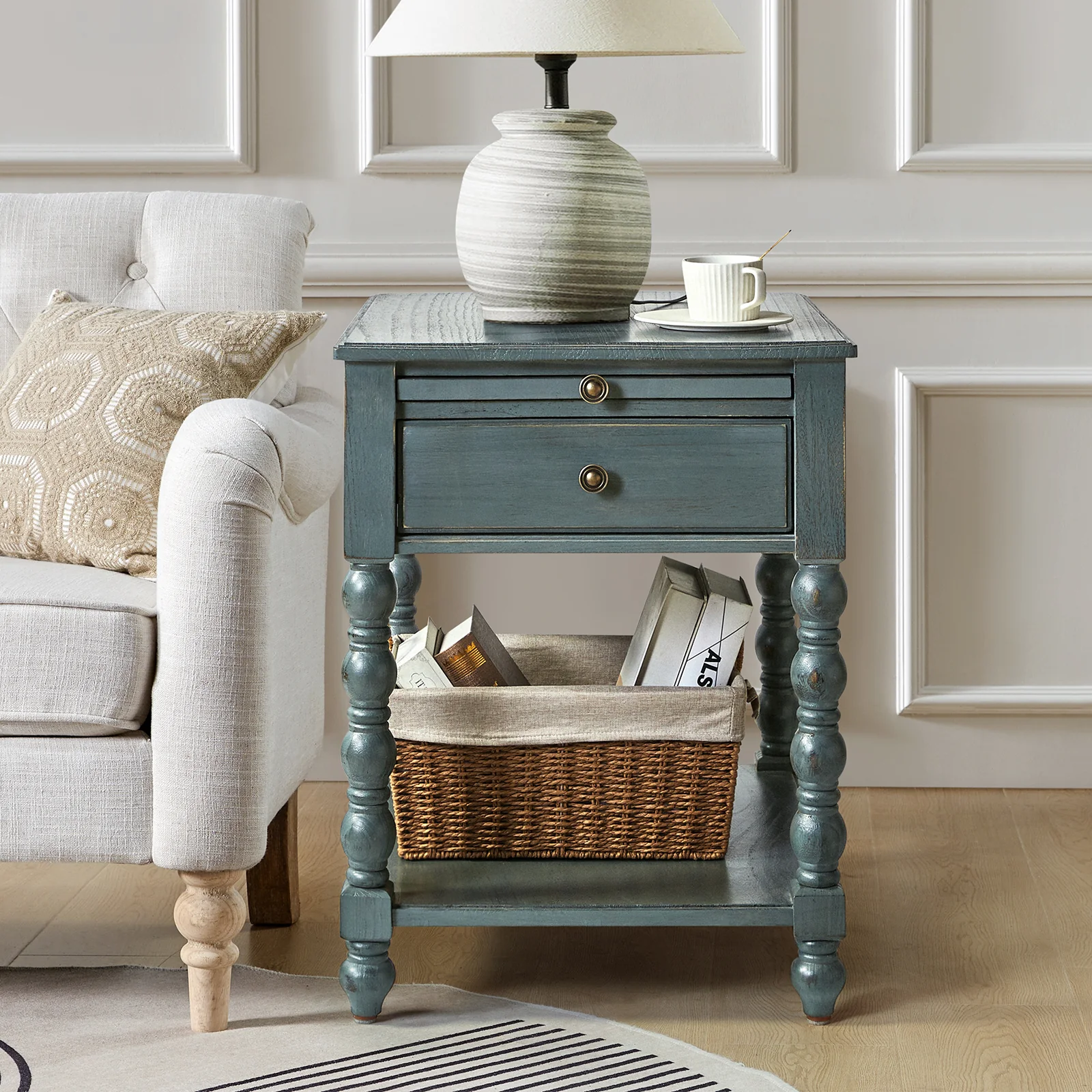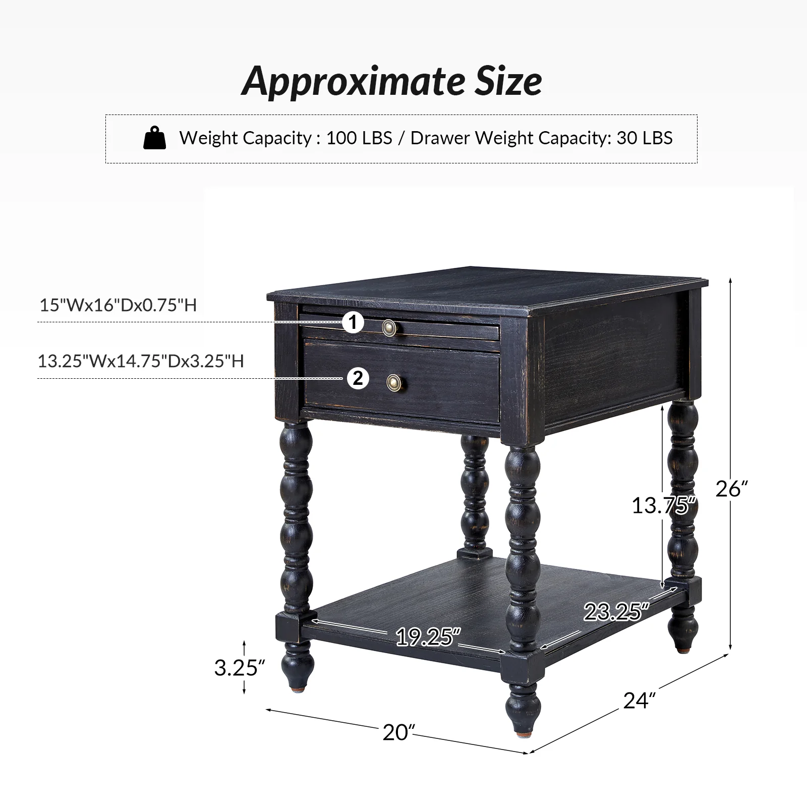 • Ira 26" Tall Farmhouse Solid Wood End Table with Built-in Charging Outlets