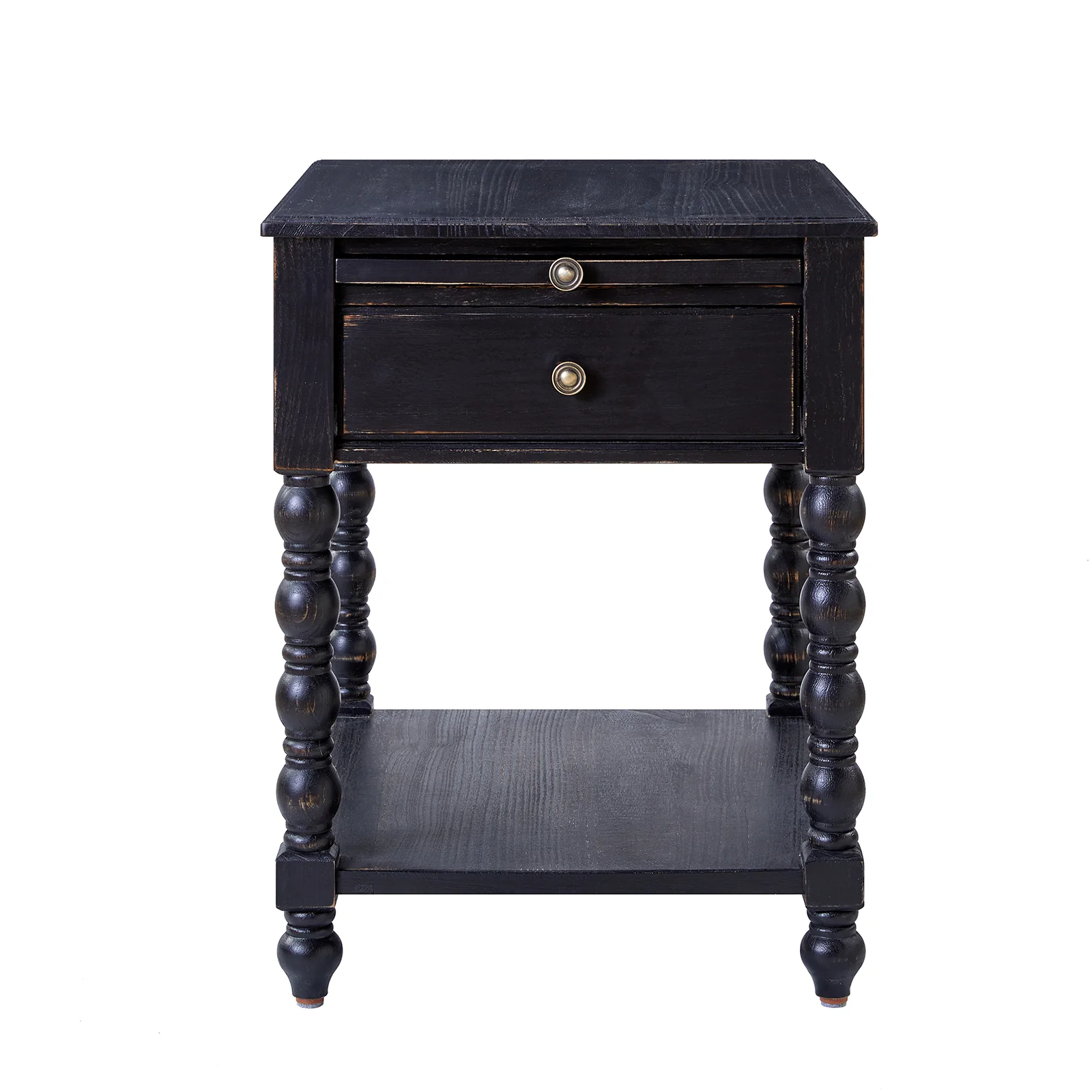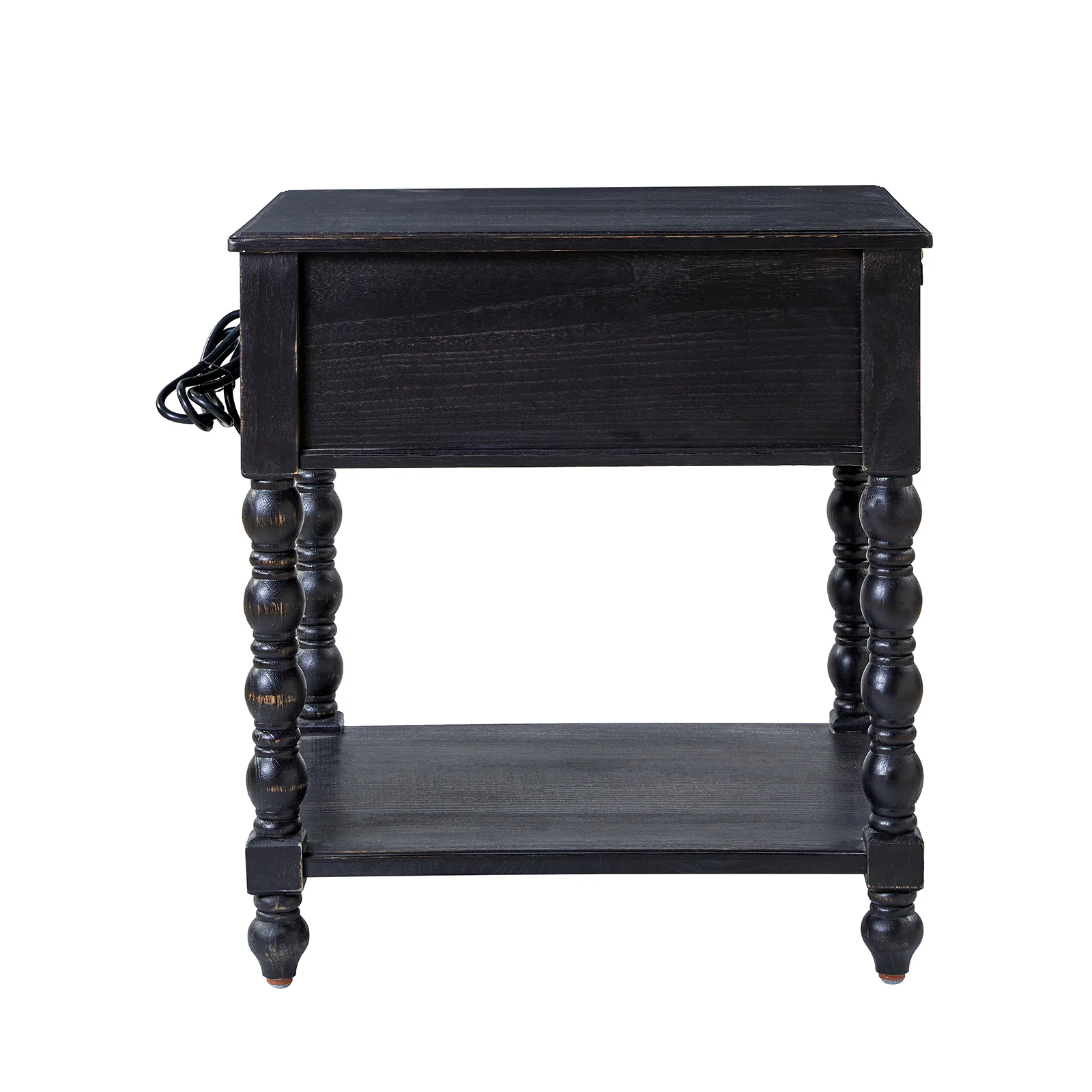 Ira 26" Tall Farmhouse Solid Wood End Table with Built-in Charging Outlets