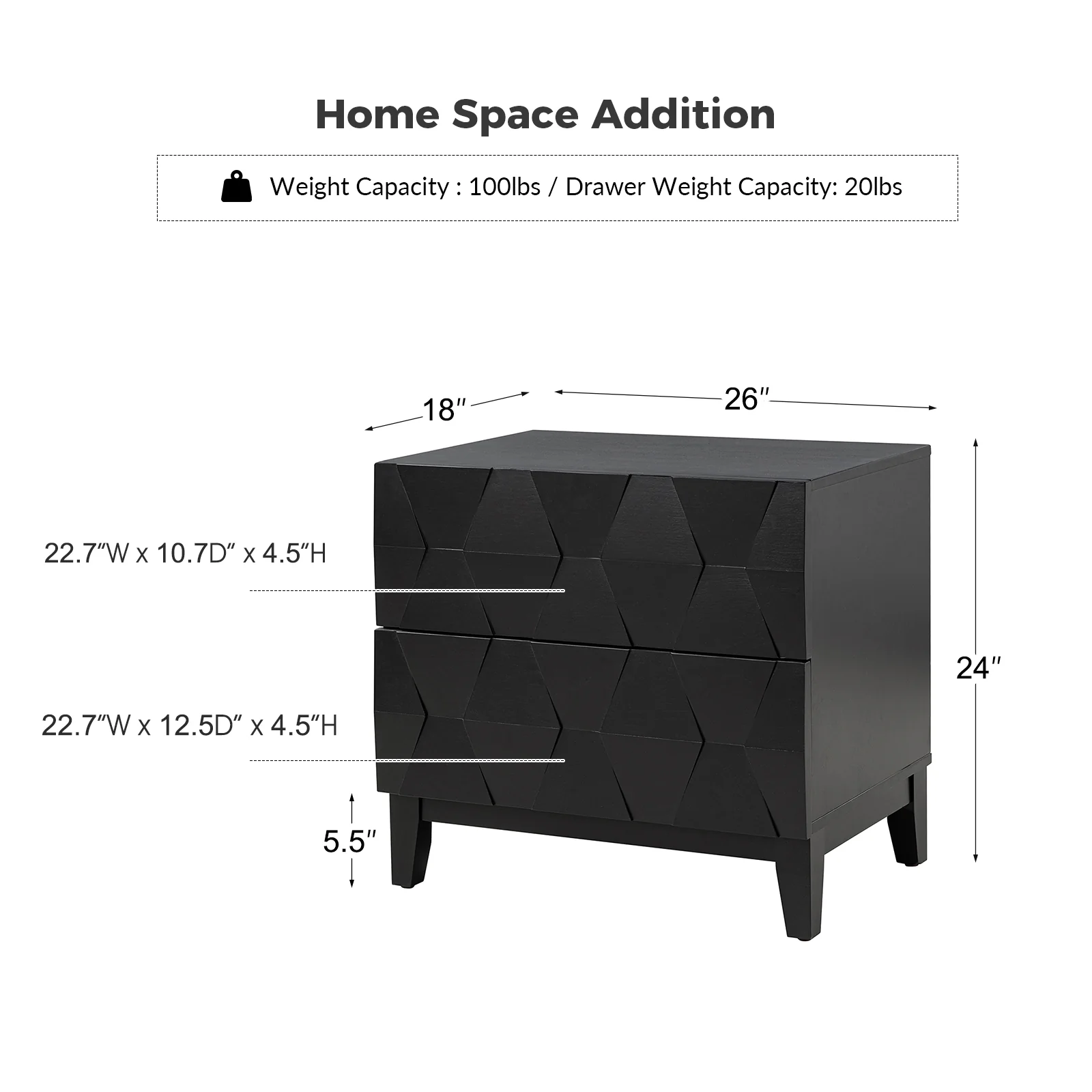 • Kamu 2 - Drawer Nightstand Chest with Built-in Outlets