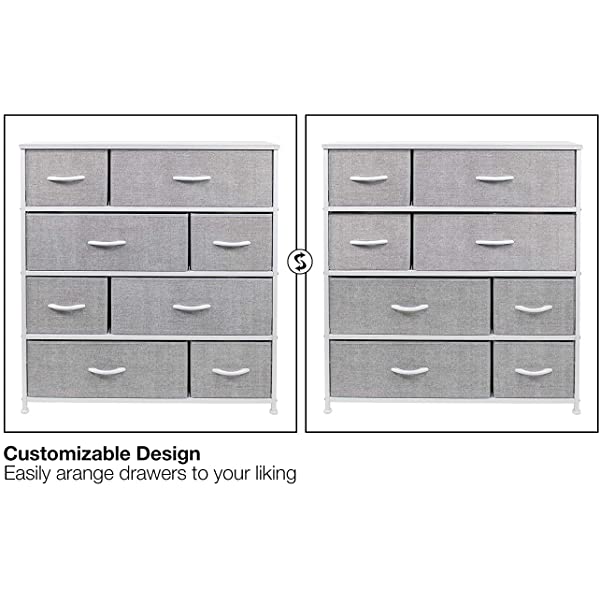 Give your household essentials a cozy landing spot with the Sorbus 8-Drawer Dresser. This beautiful dresser chest features a tabletop surface and pull-out drawers to tuck away household clutter. The thoughtful design is great for small living spaces and works equally well near the bed or sofa. Organization enthusiasts will enjoy filling each drawer with clothing, linens, and knick-knicks from around the home. The lightweight frame makes this unit easy to transport and when not in use, simply fold the fabric drawers flat for storage. Use alone as a single unit or pair with any drawer configuration from the Sorbus Furniture Collection.