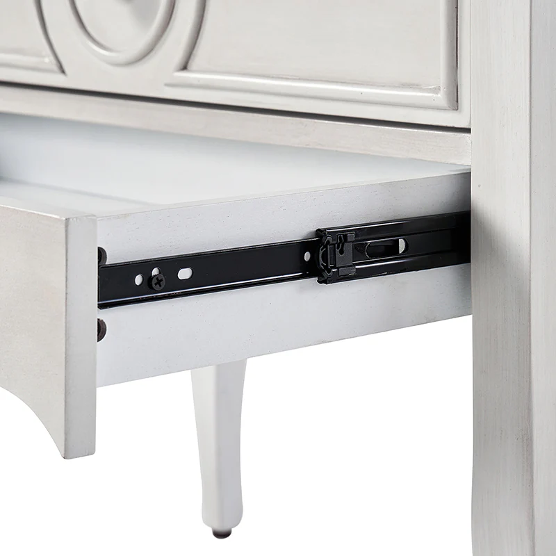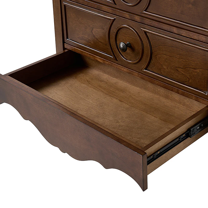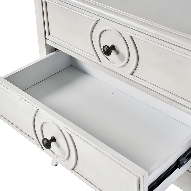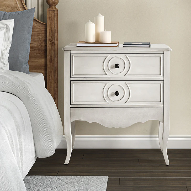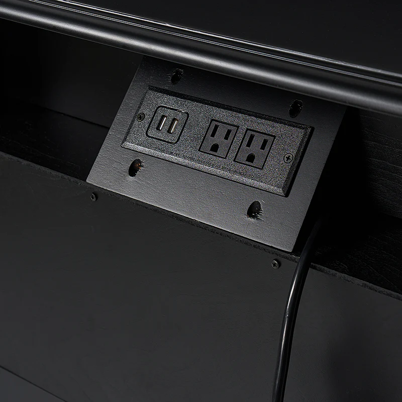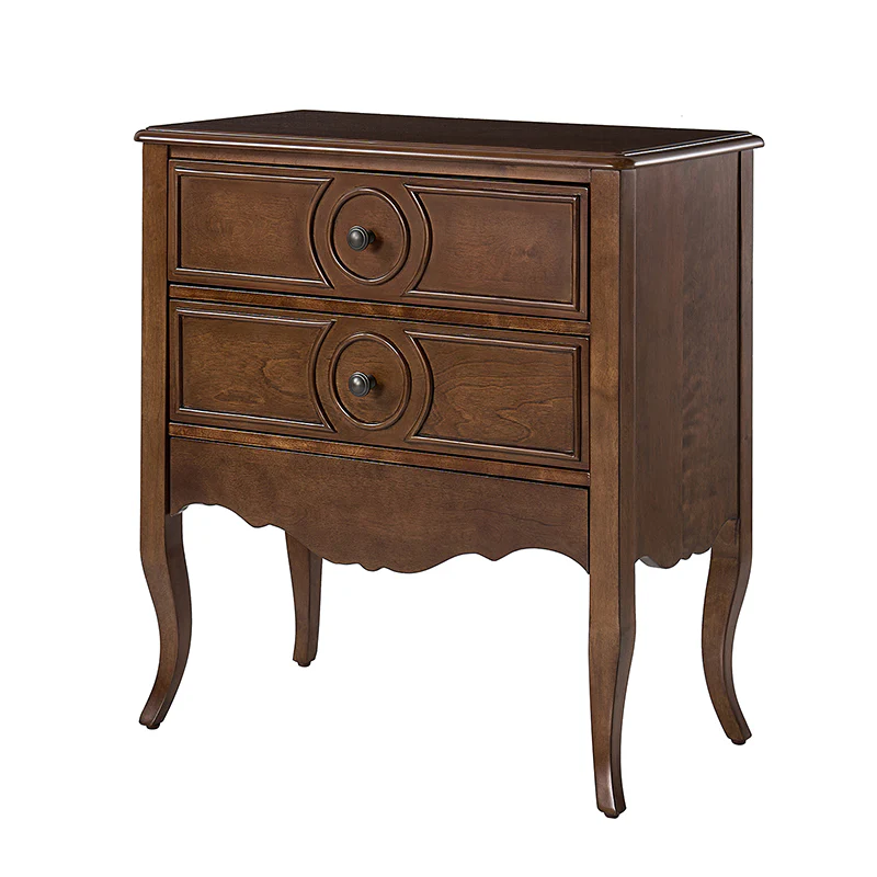 The classic nightstand with a hidden drawer is a blend of classic elegance and functionality. Its design features two visible drawers and a discreetly hidden drawer, providing ample storage space while maintaining a sleek appearance. The top drawer comes with a built-in charging station, offering convenient access to power your devices while keeping them organized. With its classical exterior and high legs, this nightstand exudes timeless charm and sophistication. The wooden trim detail creates a visually appealing framework, adding to its overall aesthetic. Additionally, the adjustable feet ensure stability and durable. This nightstand seamlessly combines traditional craftsmanship with mid-century practicality, making it a perfect addition to any bedroom setting.