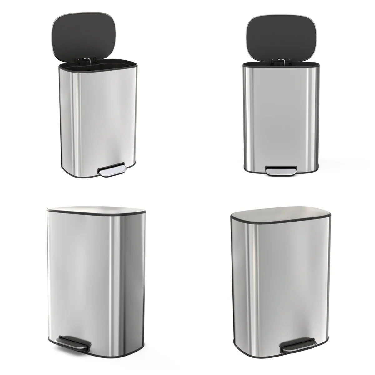 Rectangular stainless steel trash can with manual foot lever. Fingerprint-proof, smudge resistant, and durable stainless steel exterior. Heavy-duty plastic interior bucket can be easily removed for convenient waste disposal. Removable plastic liner andstay open lid lock make bag changes and cleaning easy.