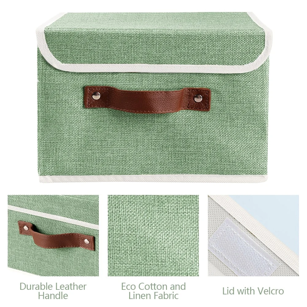 Organize your mess with our cotton & linen fabric cube storage bins, which are functional, durable, and meet your different needs. They are designed with lids and faux leather handles for easy to move. They are good helpers to store books, clothes, baby products, kids’ toys, towels, blankets, snacks, etc. Perfect for home, apartment, office and school organization and storage.