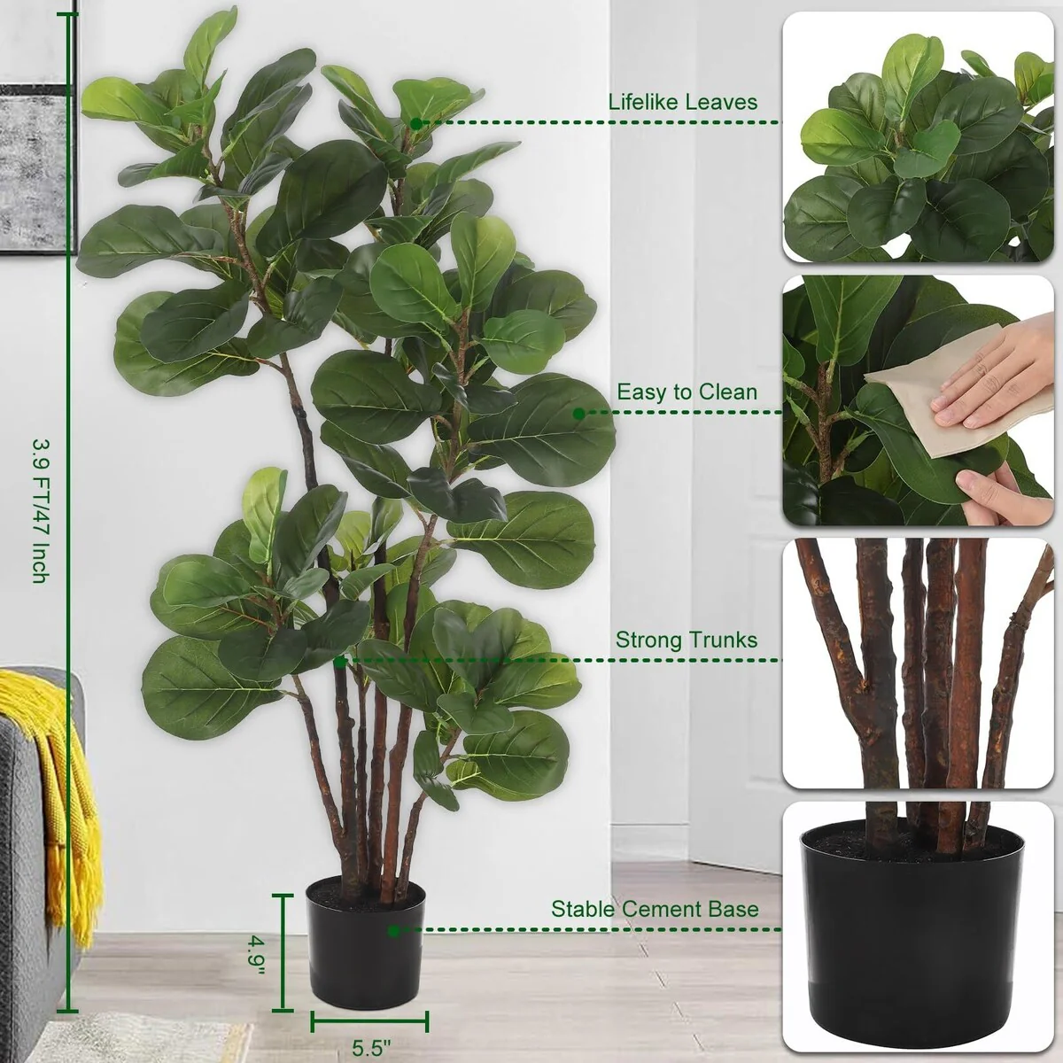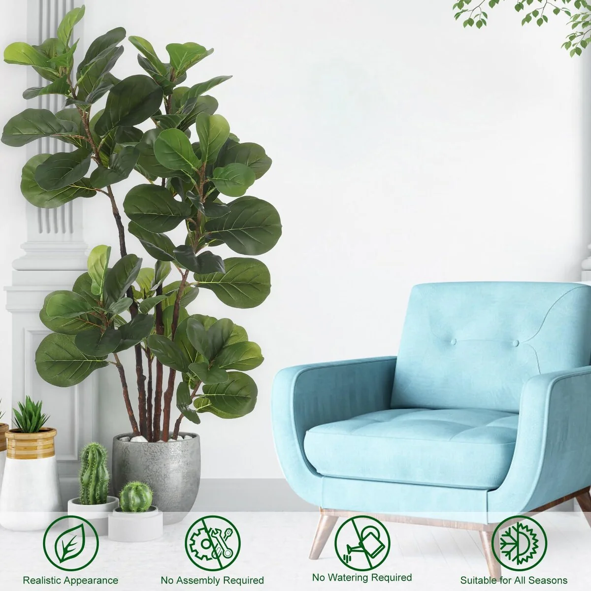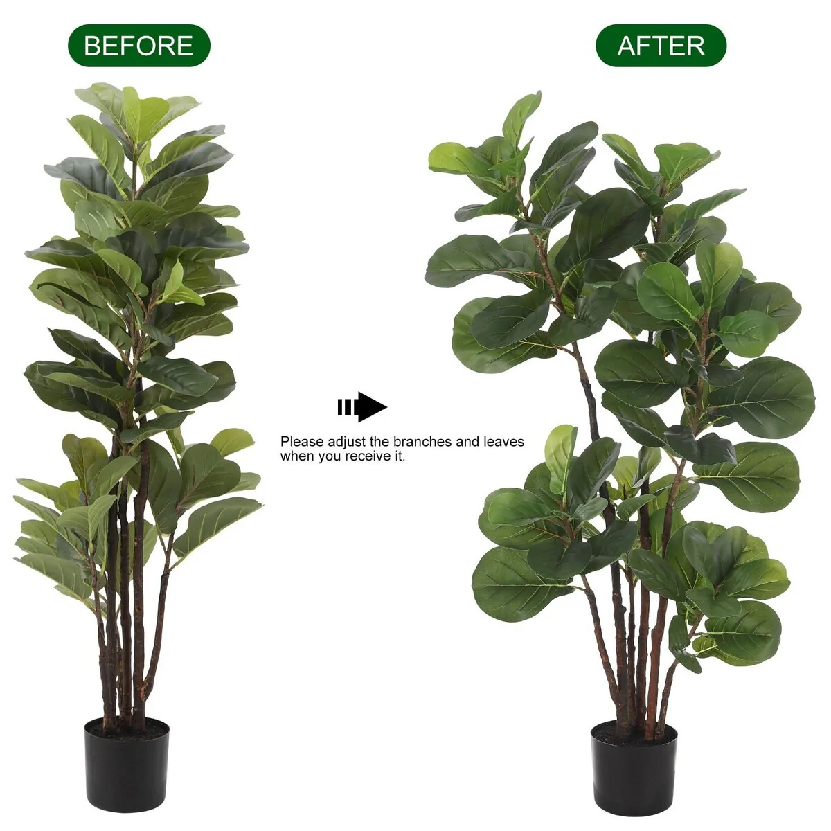 Realistic Fiddle Leaf Tree: Our artificial ficus tree is made from durable, high-quality materials and features carefully crafted leaves and trunks that resemble a real fiddle leaf fig tree. With three tall trunks and three short trunks totaling 72 leaves, you'll feel the vitality of a green plant whether you touch it or admire its appearance.