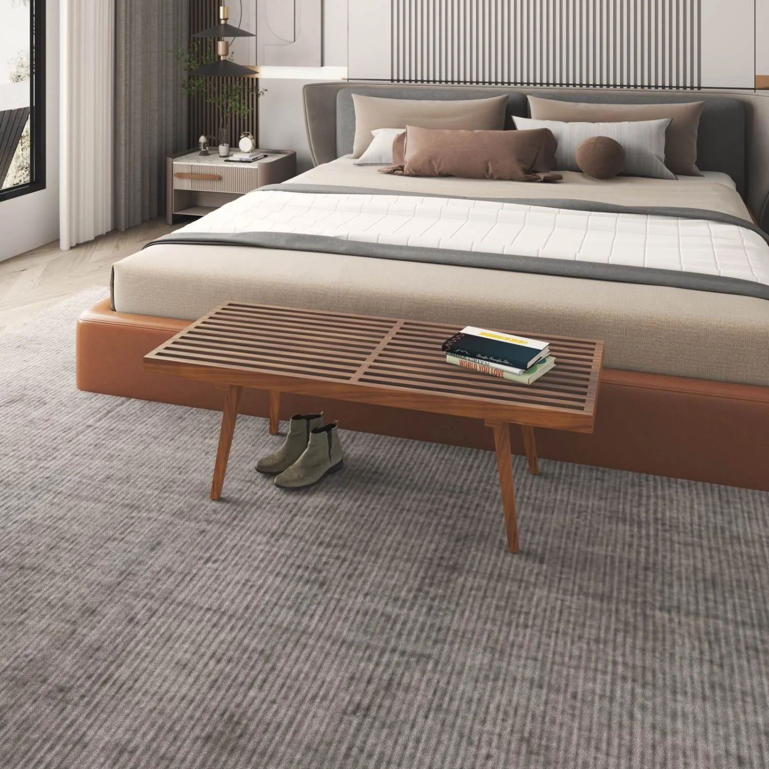 • Floor-Protecting Plastic Glides: Each leg of the bedroom bench is fitted with plastic glides at the base. These glides are small discs or pads attached to the bottom of the wooden legs. They prevent direct contact between the wooden legs and the floor, reducing the potential for scratching or scuffing the surface when the bench is moved.