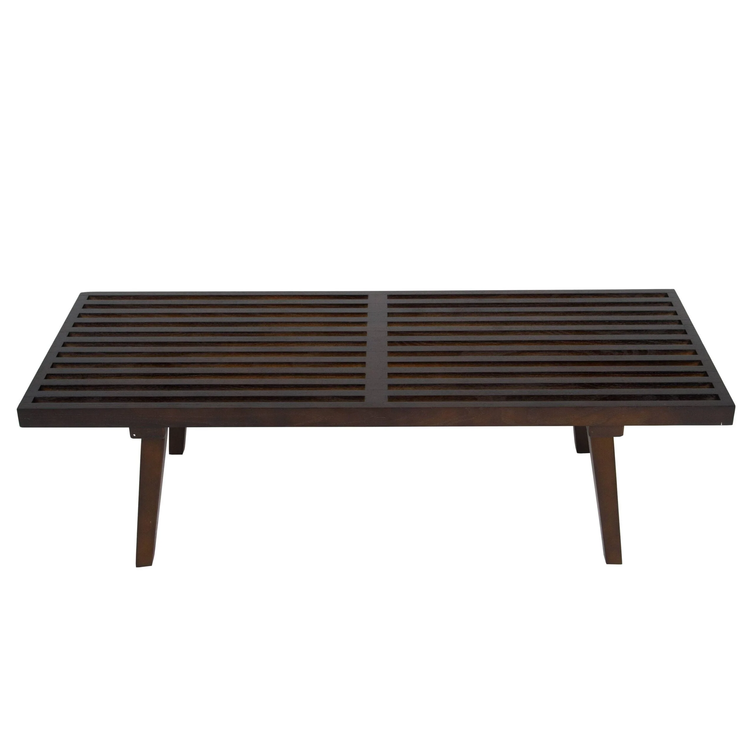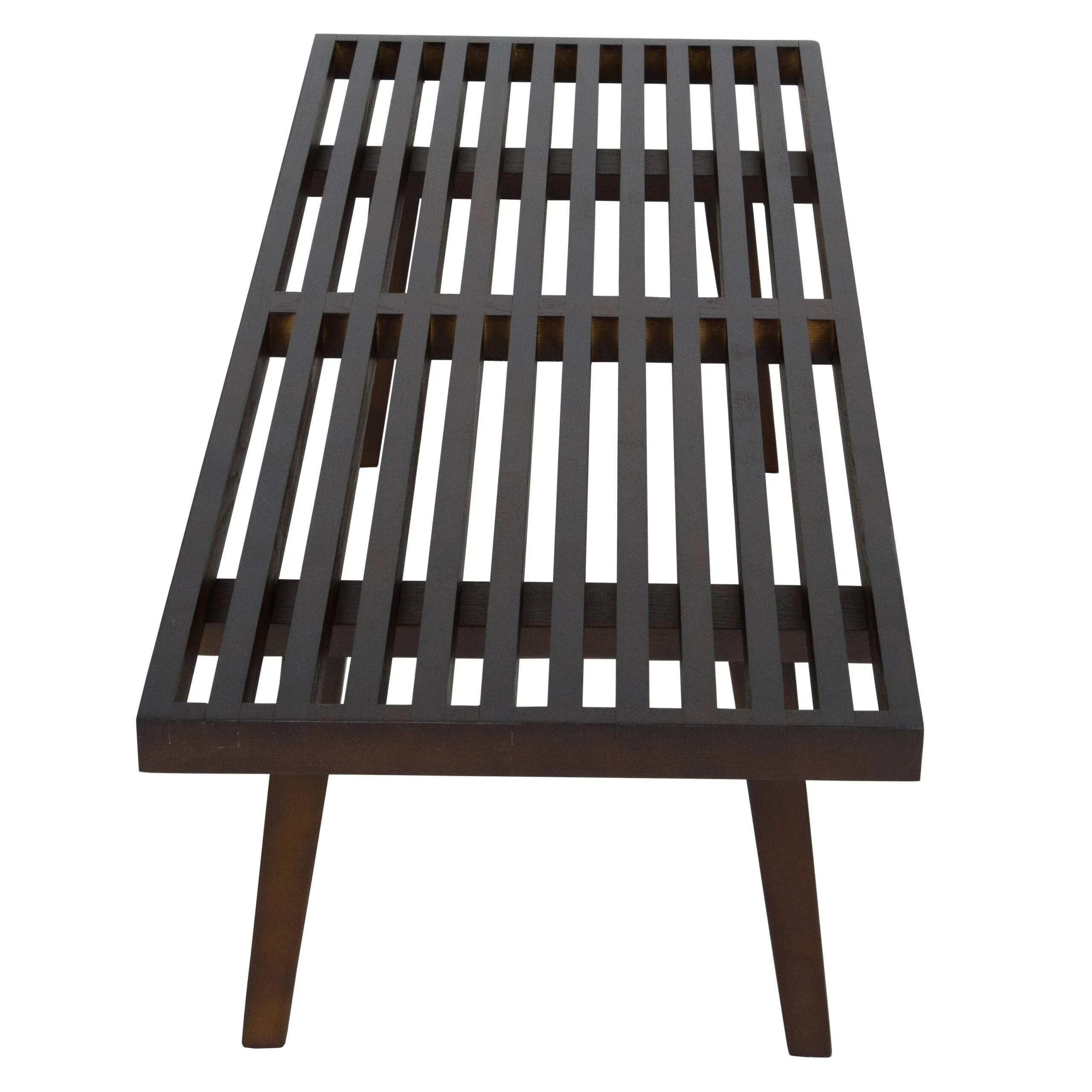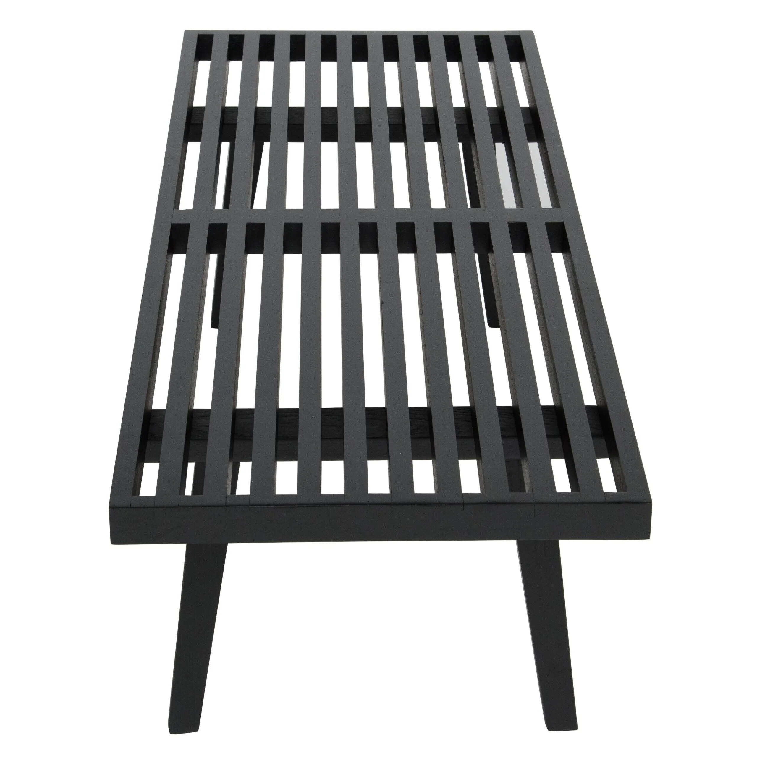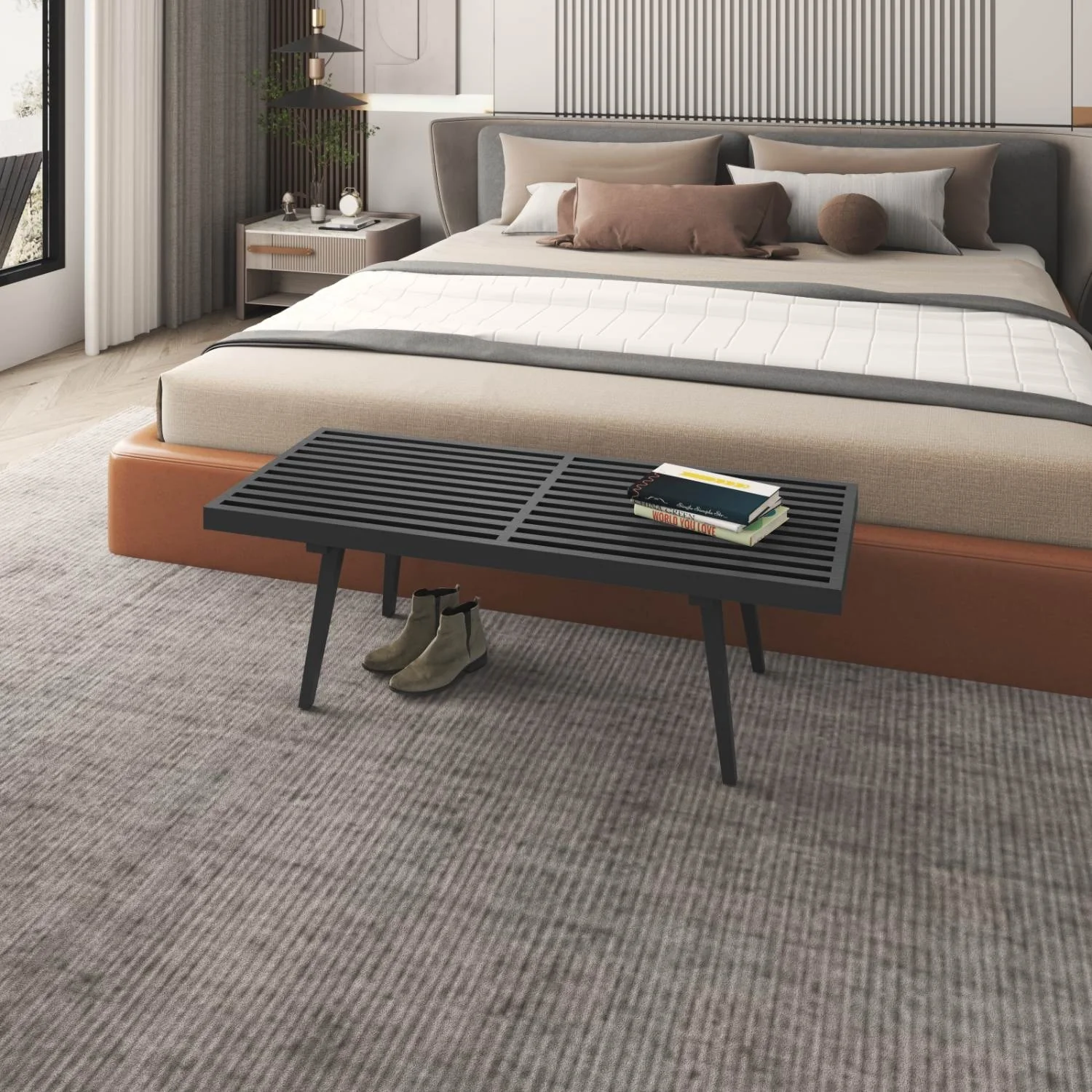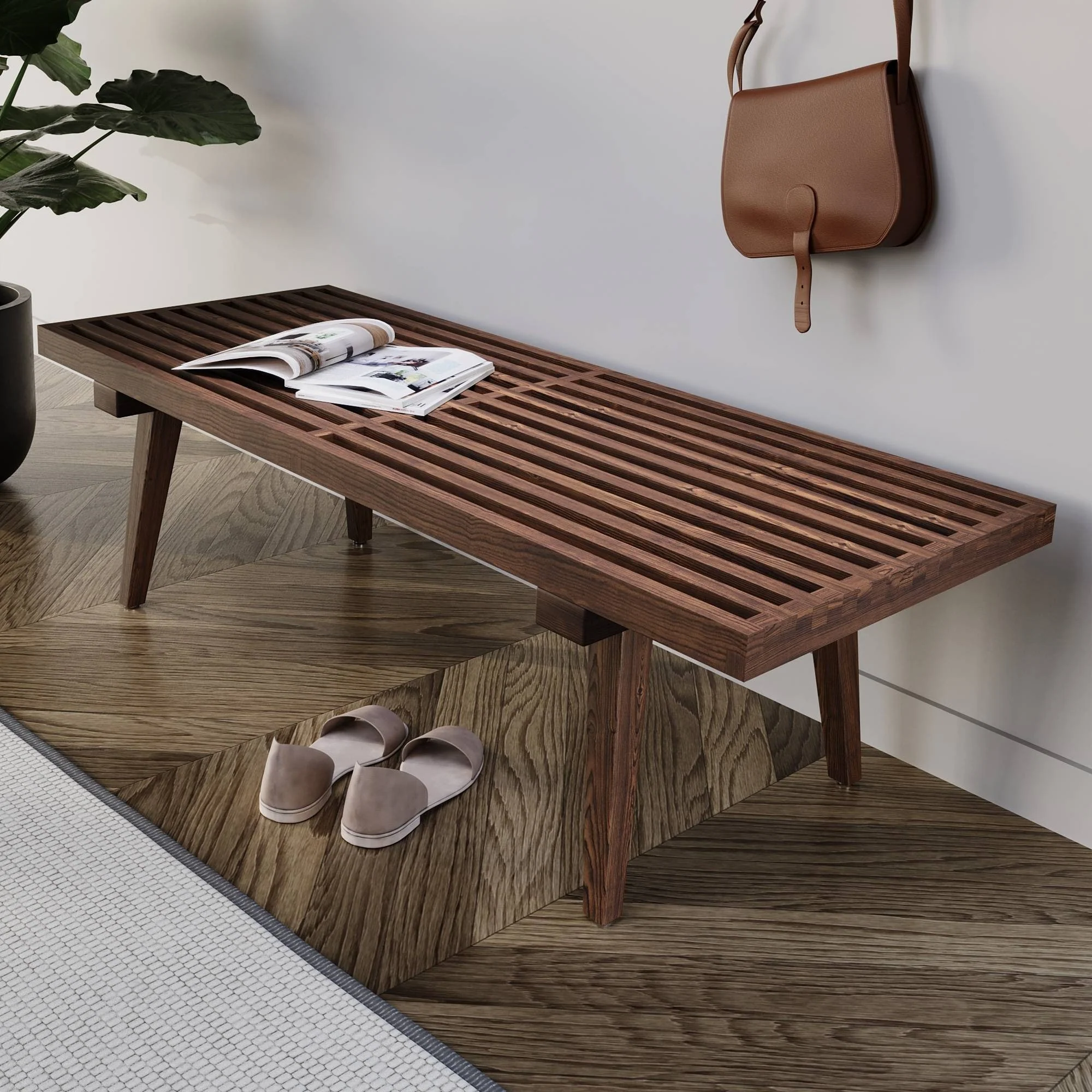 Enhance your living space with this versatile Inwood Modern Slatted Bench. Crafted from a solid rubberwood frame with beech wood legs, this bench showcases a beautiful, stained finish that enhances the natural grain of the wood, providing a sophisticated look to complement a variety of home decors. Perfect for both indoor and outdoor use, this sleek slatted design offers a balance between style and functionality, making it a timeless addition to your entryway, bedroom, or living room. The slatted top design allows for breathability, while also offering plenty of space underneath for storage. Whether used as seating or as an additional surface for books and decor, this bench is designed to meet your needs. With plastic glides that protect your floors, this piece is both stylish and practical. Best of all, it requires no assembly, so you can start enjoying it as soon as it arrives.