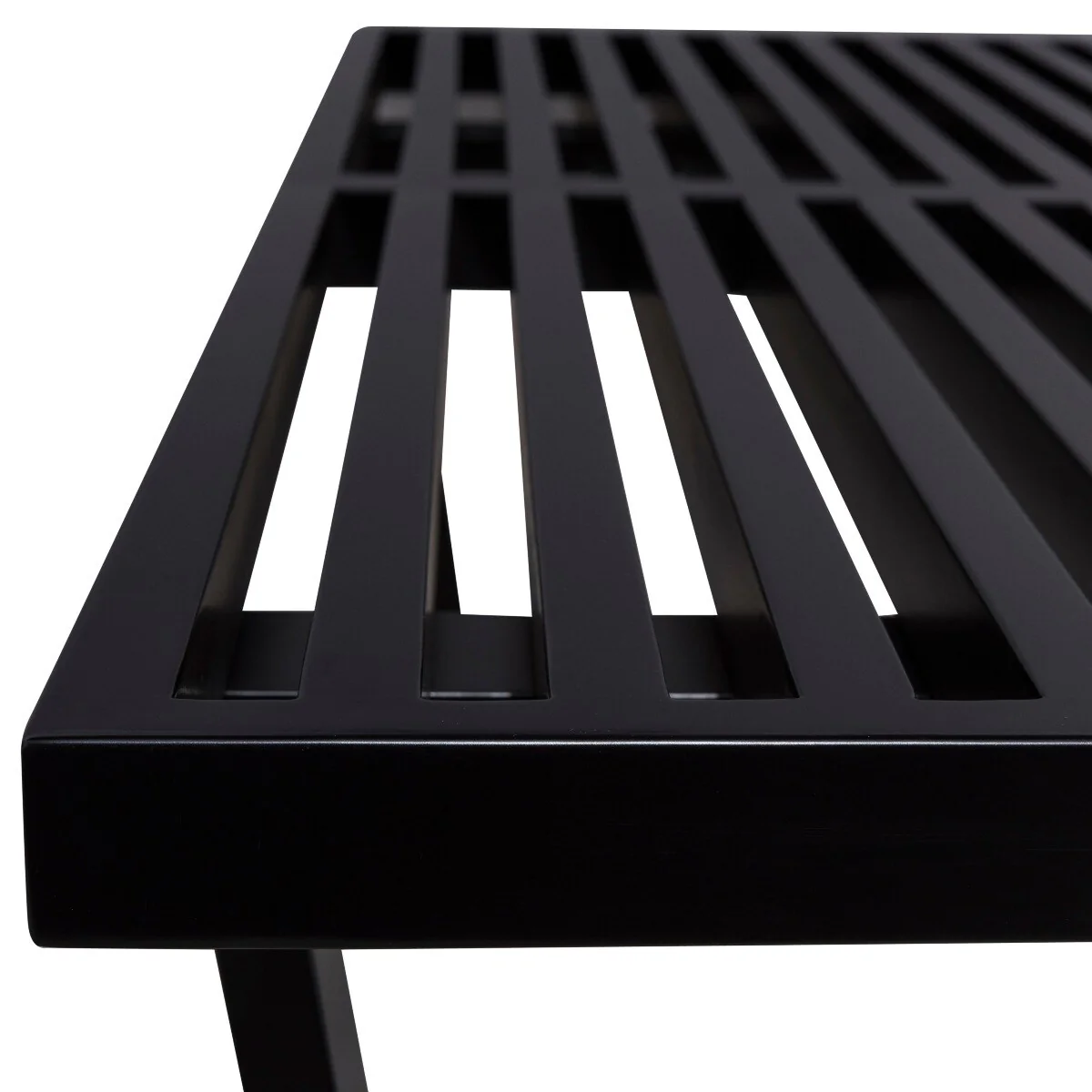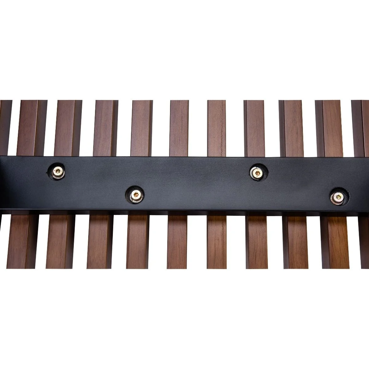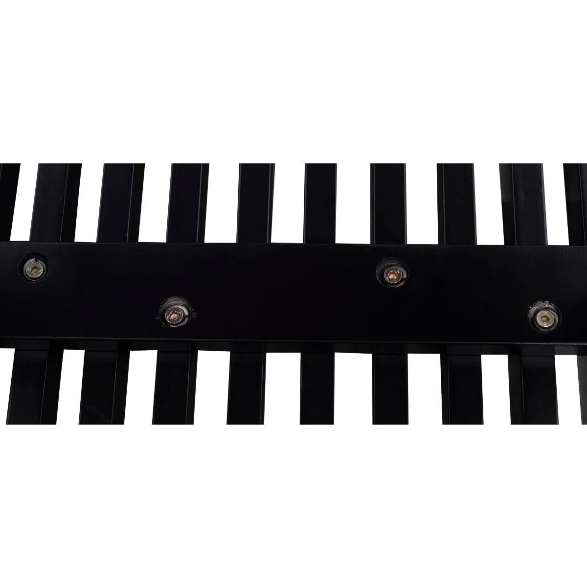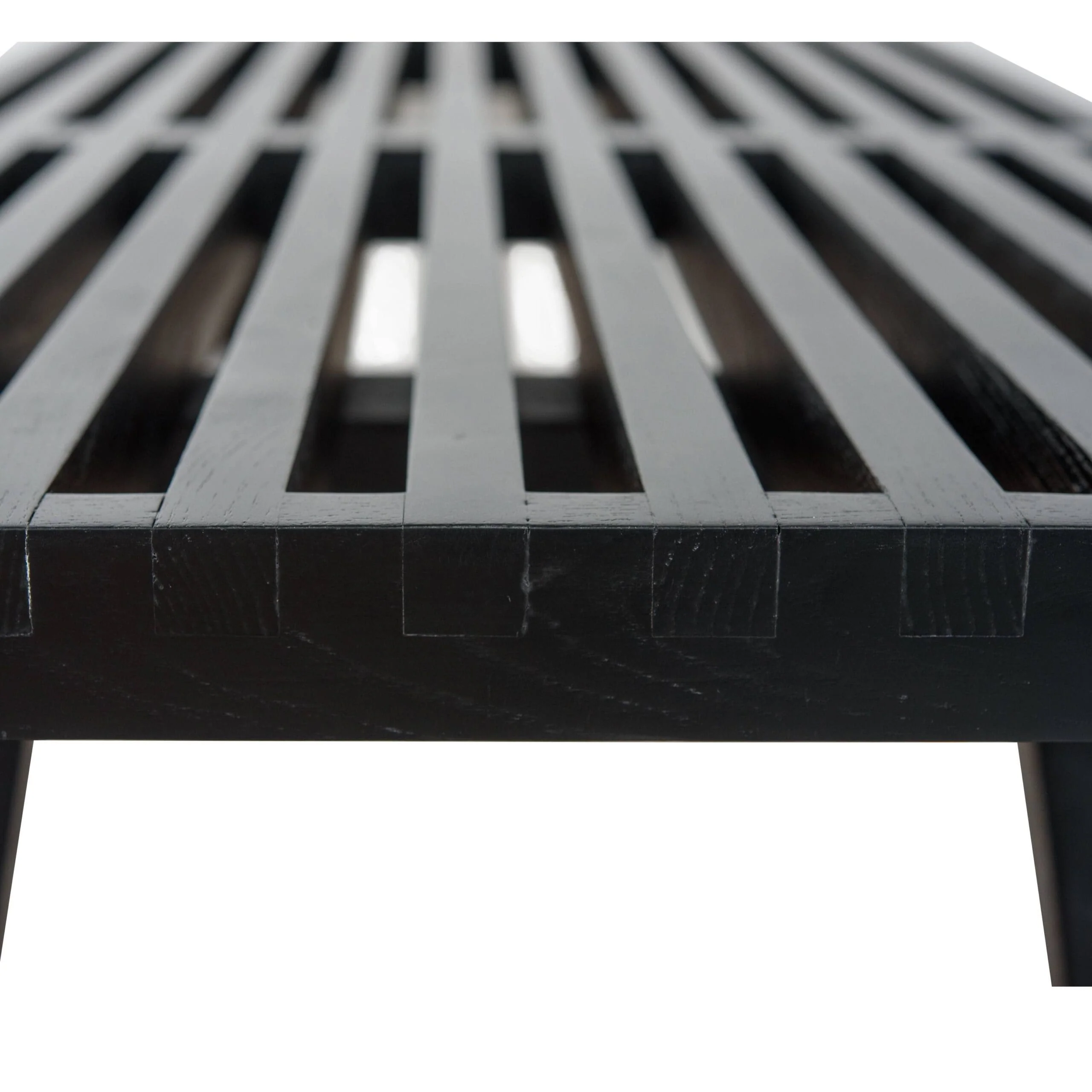 • Slatted Top with Open Storage: The top of the bench features a slatted design, made of evenly spaced wooden slats. This design creates a visually appealing grid pattern while allowing for airflow. The space beneath the slatted top remains open, with no enclosed storage, offering room to place items underneath the bench.