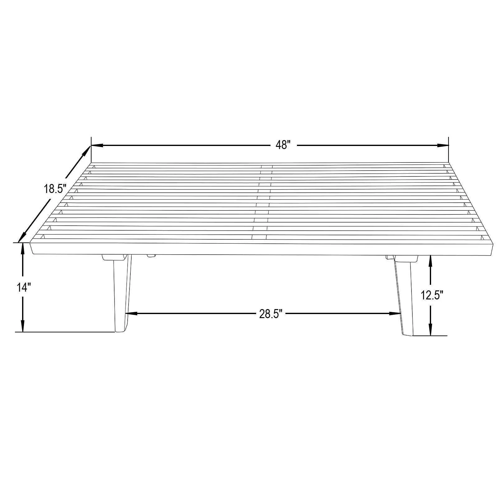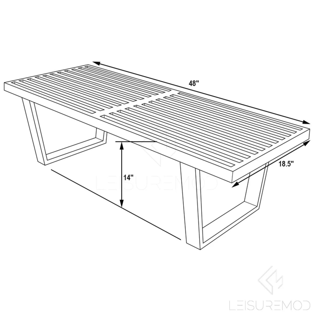 • Functional Dimensions: The wooden bench measures 48 inches in width, 14 inches in height, and 18.5 inches in depth. These dimensions provide a flat, rectangular seating surface capable of accommodating multiple individuals. The flat top can also be used as a surface to place objects, as the slatted design supports a level surface.
