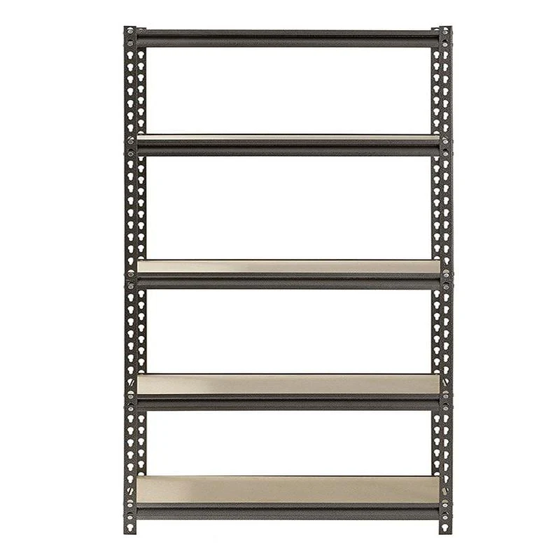 Organize your garage or workspace with this heavy-duty storage shelf. Made of steel and MDF, it features a solid structure that is stable and durable. With five tiers, it provides ample space for storage and display. The powder-coated finish prevents rust and keeps it looking great. Assembly is a breeze, making it easy to get organized in no time.