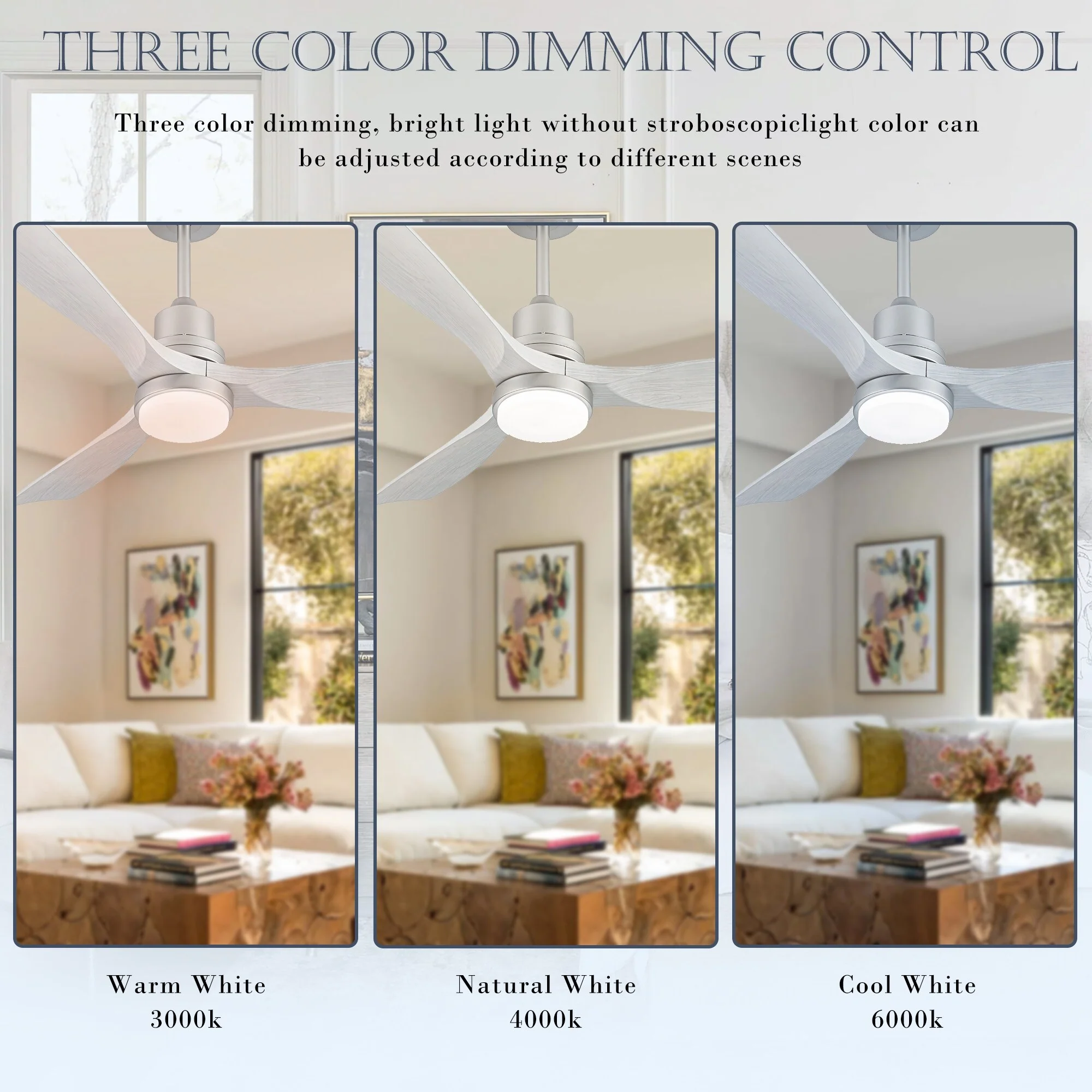 - 3-color light conversion (3000K/4000K/6000K), bright and energy-saving light source
