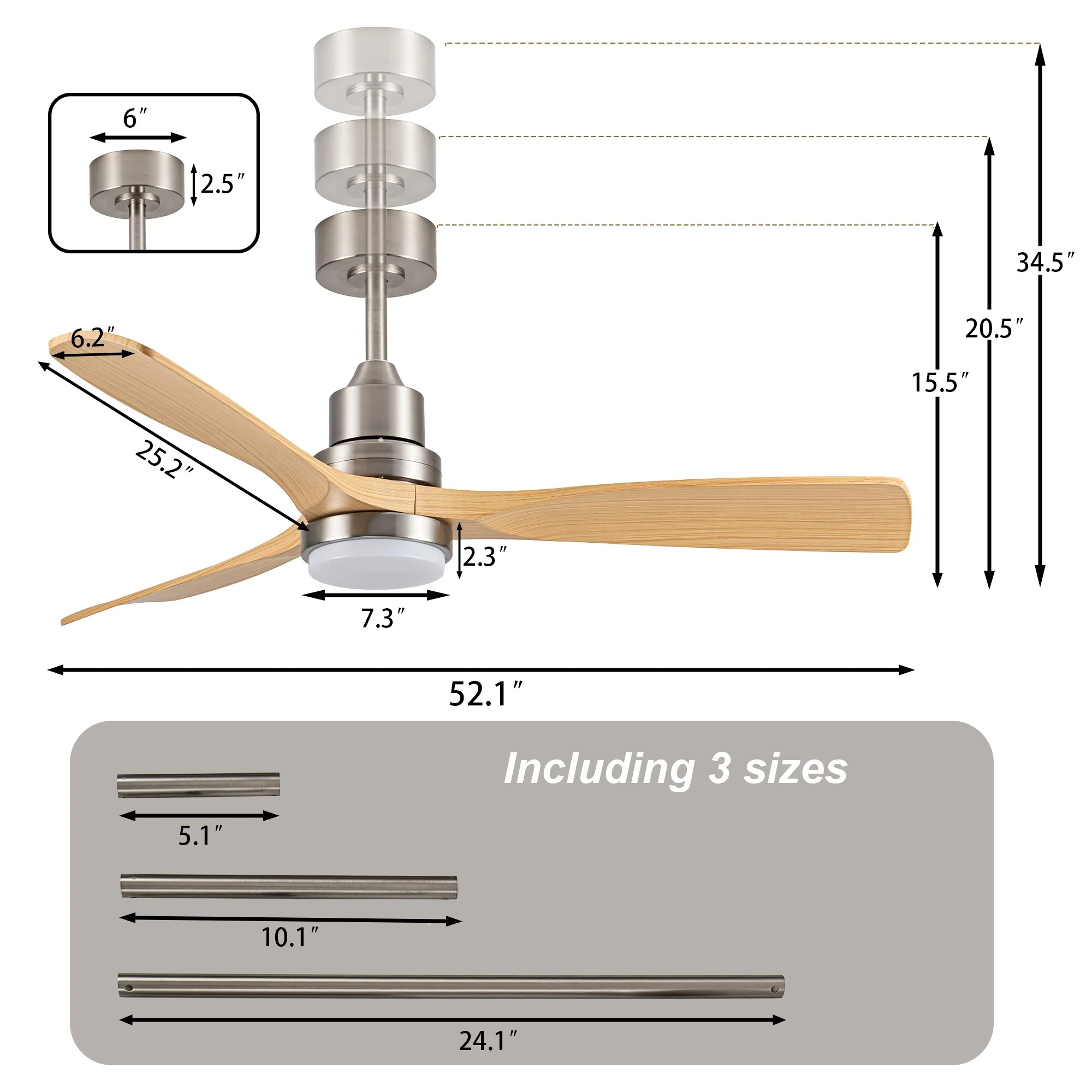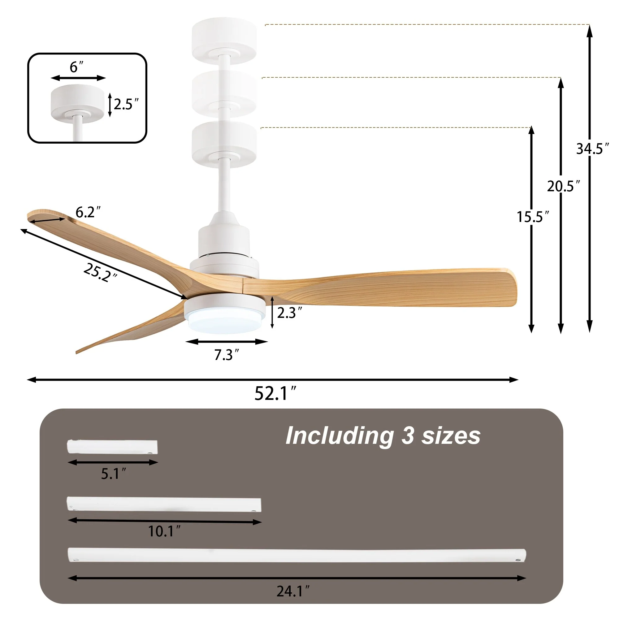 - ABS wood-like fan blade, multiple colors of fan finish available.