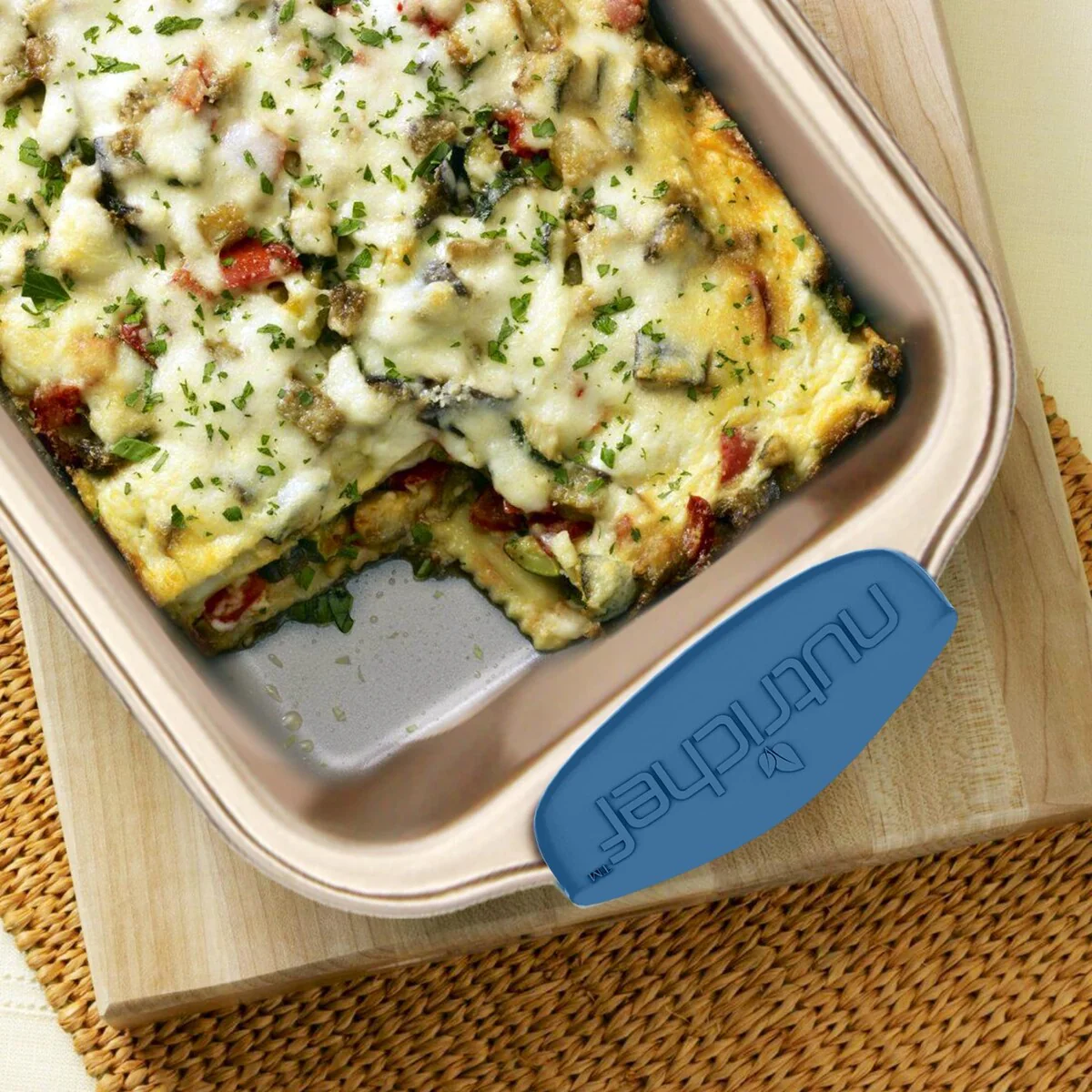 HEATPROOF SILICONE HANDLES:The commercial grade restaurant quality kitchen bakeware features blue silicone handles to prevent accidental burns. Also stain-resistant, easy to clean & dishwasher safe but hand washing is recommended to extend pan life