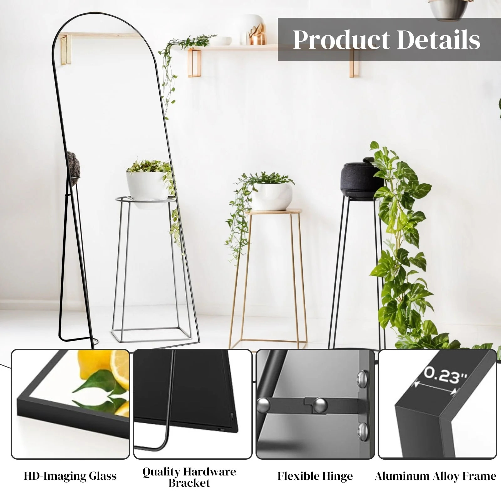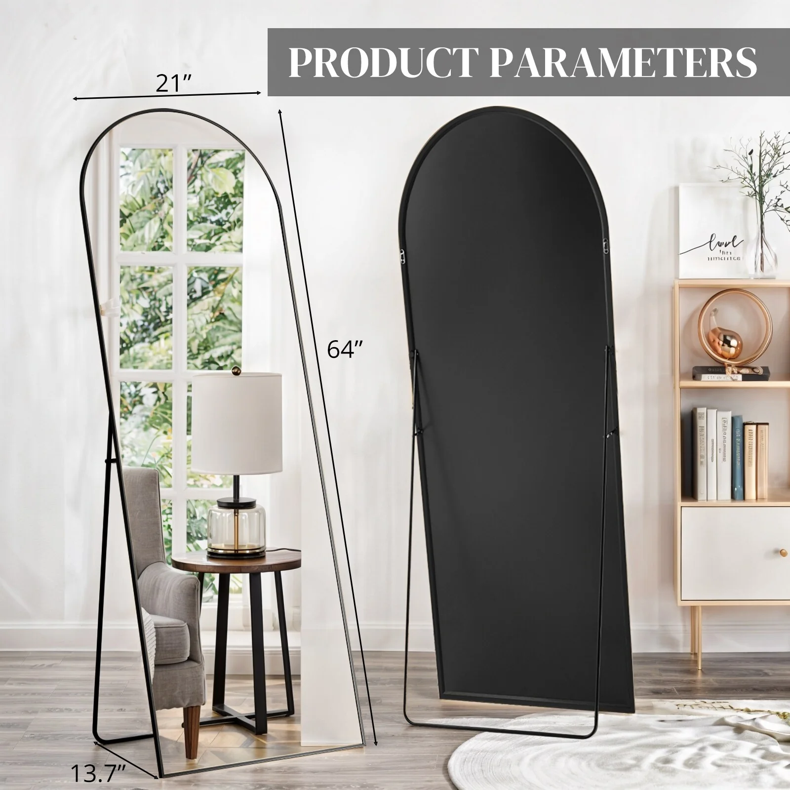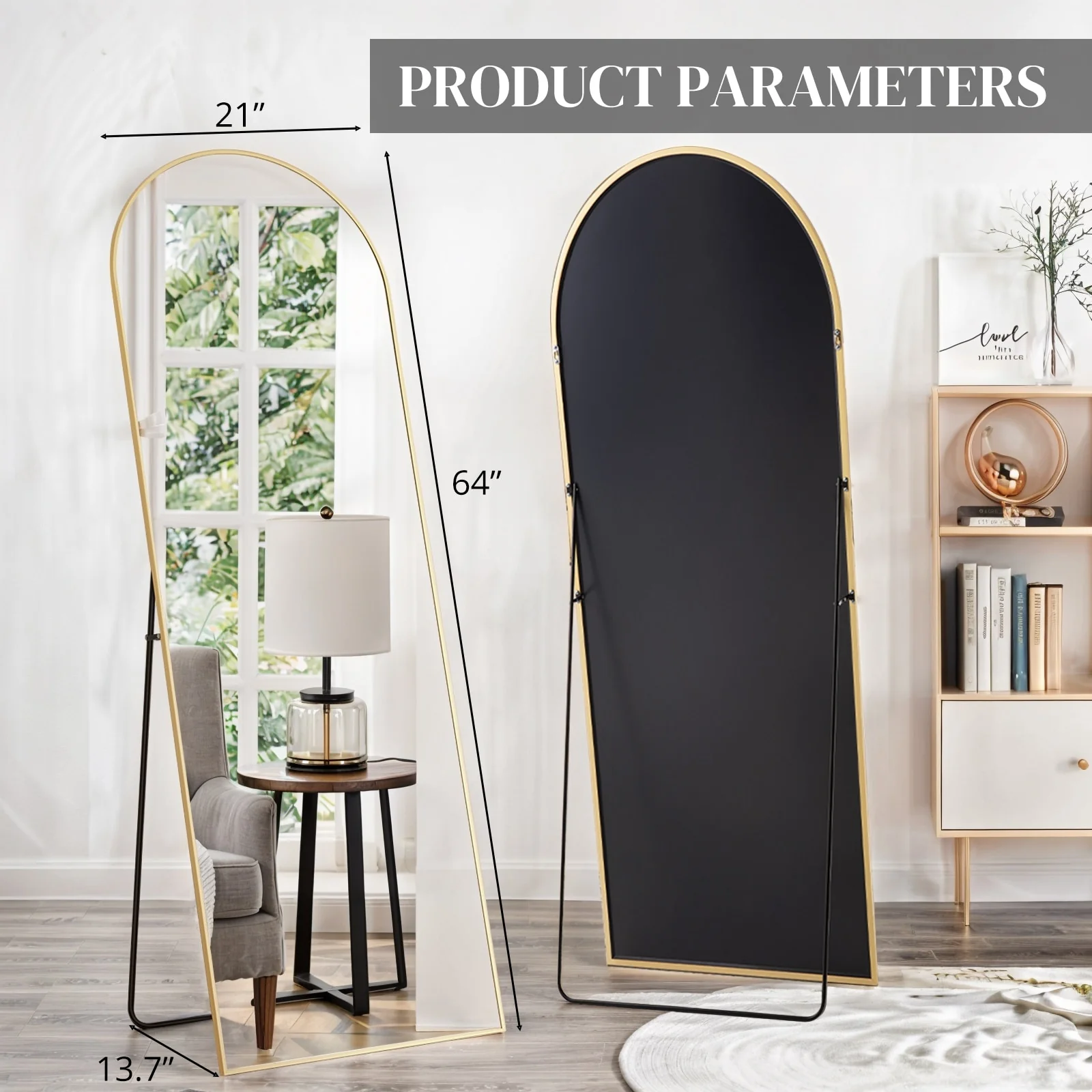 - LARGE FULL SIZE: This standing mirror measures 64" in length and 21" in width, providing a full-length view of your figure in a single glance. It not only serves as a functional body mirror but also adds a touch of elegance and artistry to your home decor, enhancing your mood every day.