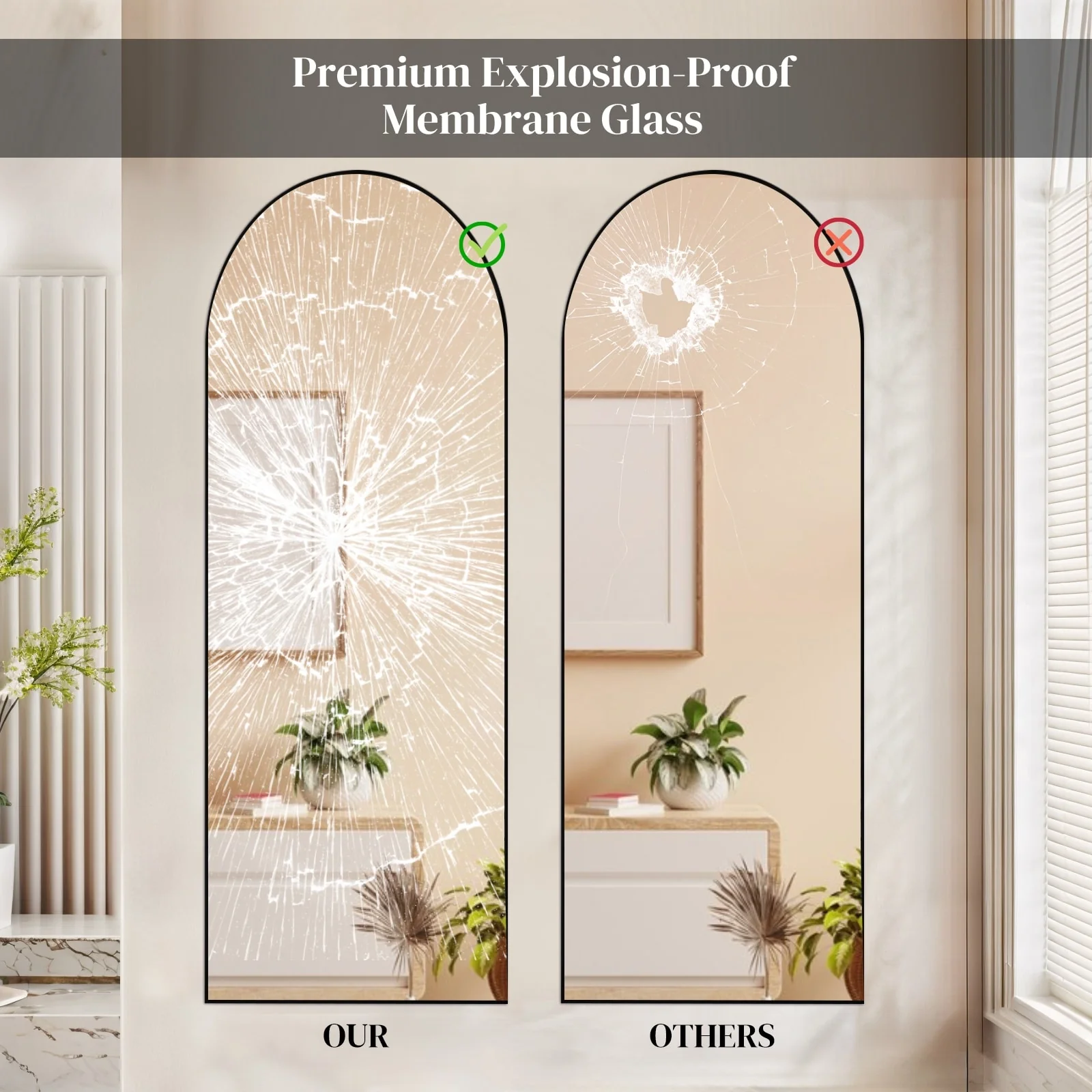 - UPGRADED NANO GLASS: Our long mirror is constructed with 3 mm high-definition nano glass, which has been upgraded with a pure silver layer. This upgrade enhances the mirror's clarity and prevents easy breakage. Even if the mirror is accidentally damaged by external force, the broken pieces of glass will not scatter in all directions, ensuring safety.