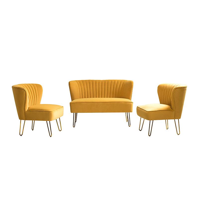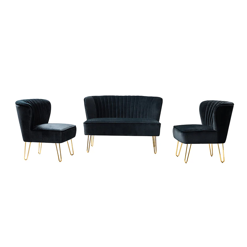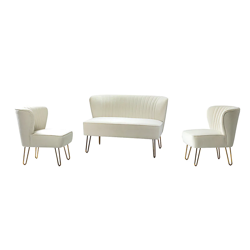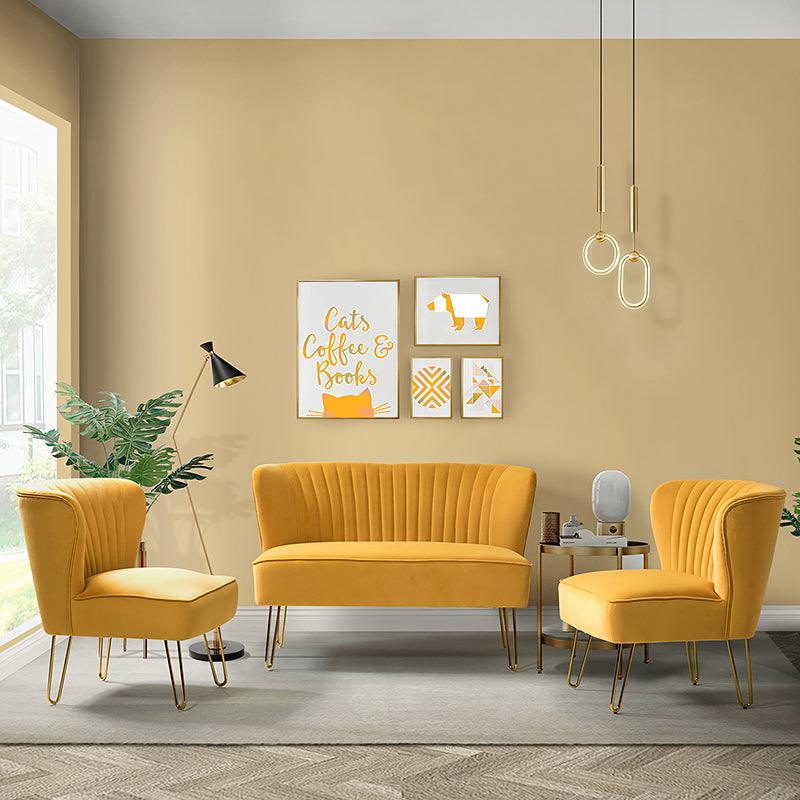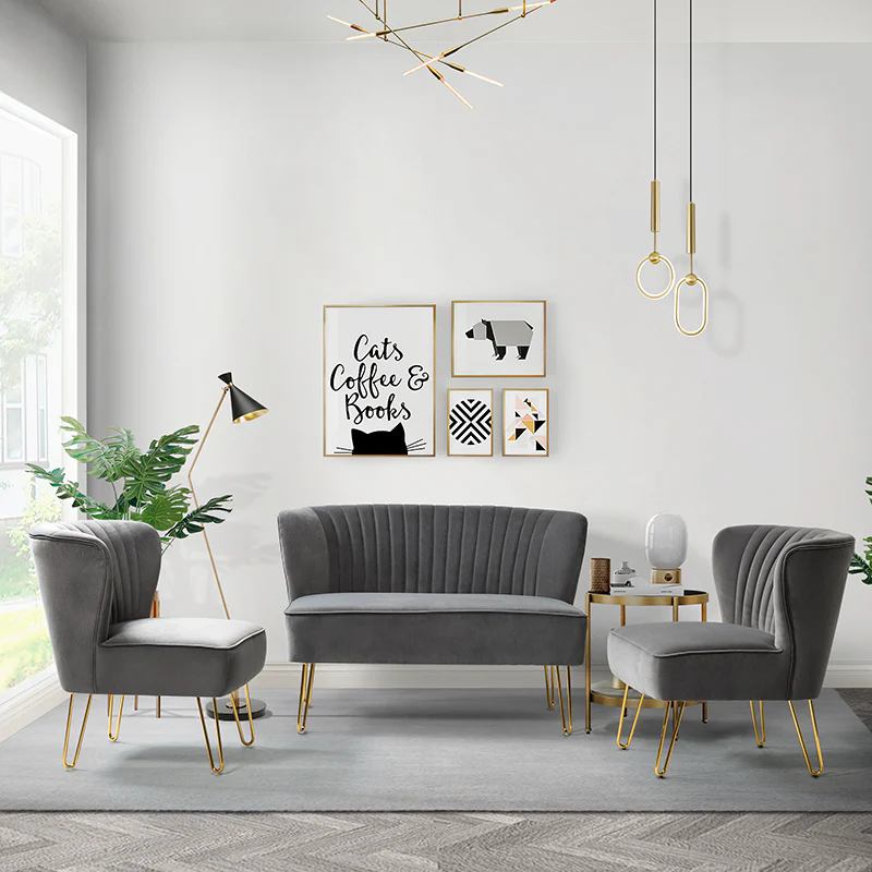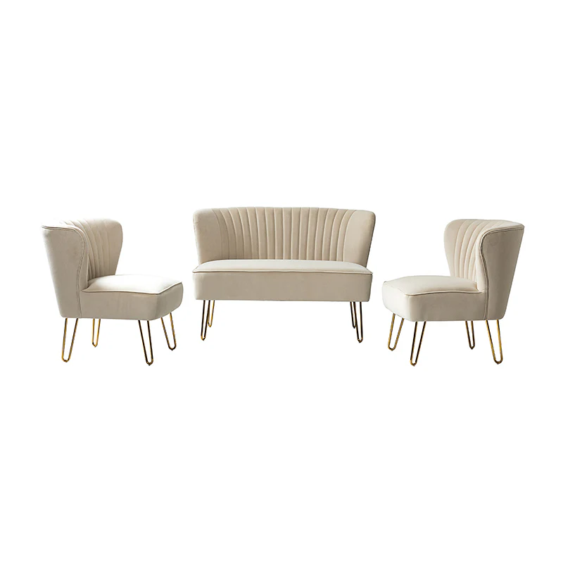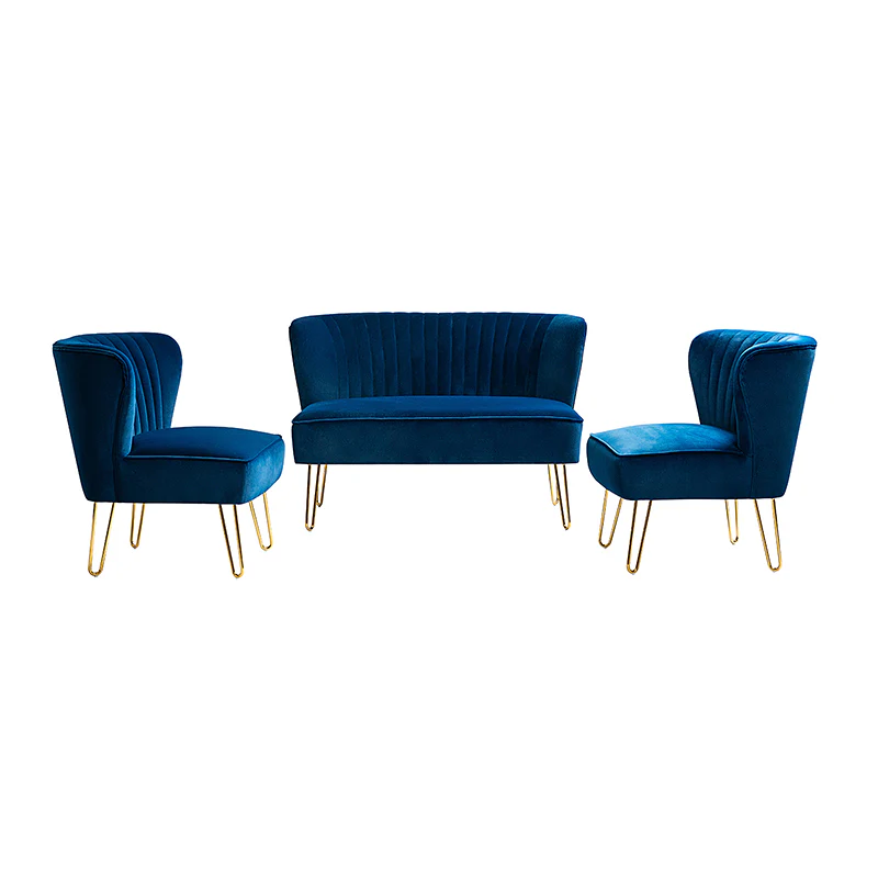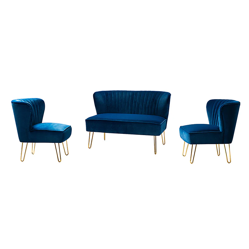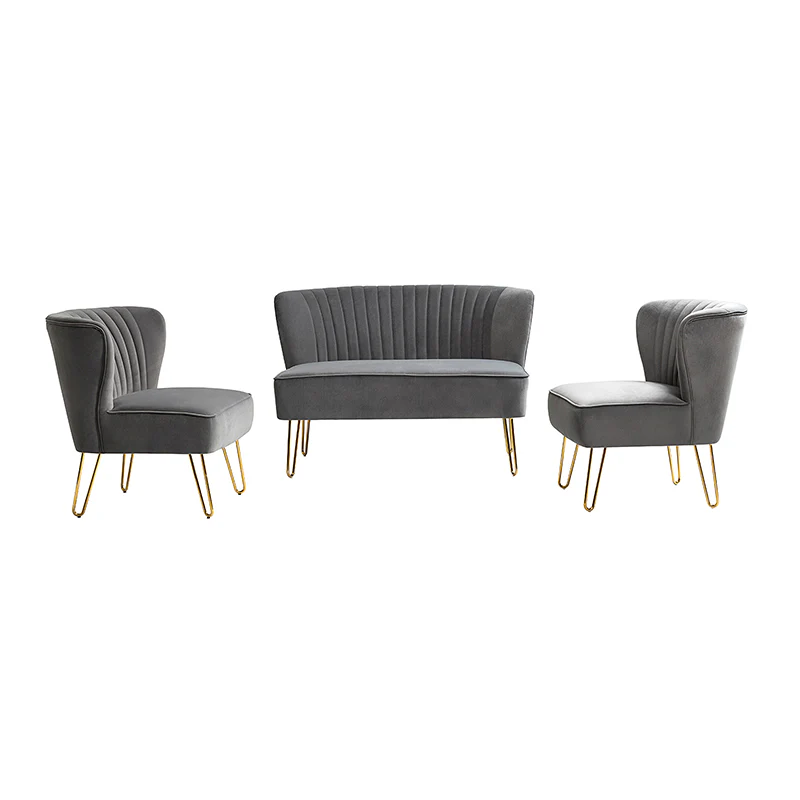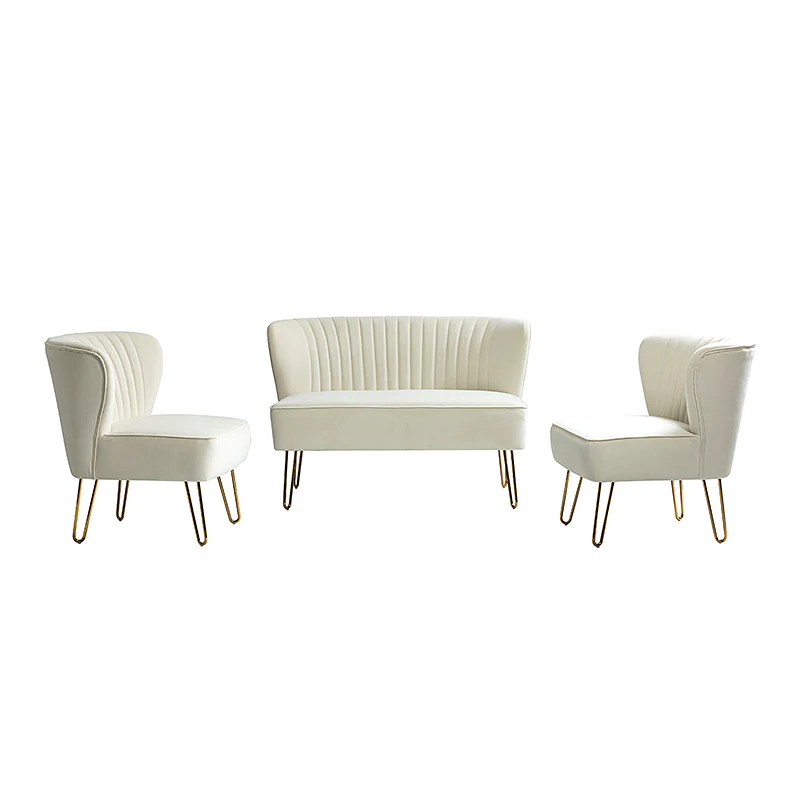 If you're looking to make a statement, this three piece living room set has it all. Its tufted design and channel back will be the perfect centerpiece for hours of family gatherings or entertainment fun. And with delicate U-shaped legs, you'll have even more reasons to linger! Refresh your space today with an inviting look that's hard not to love.