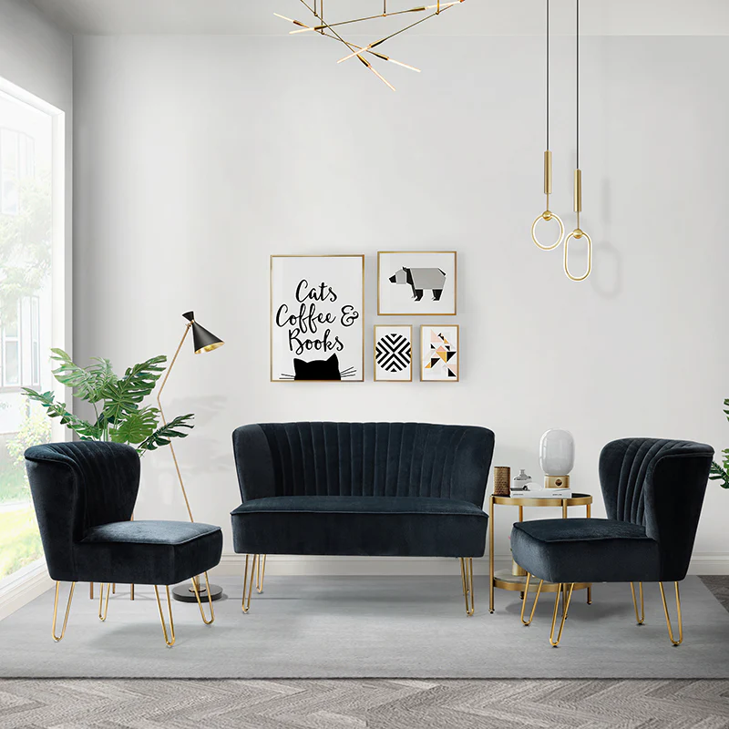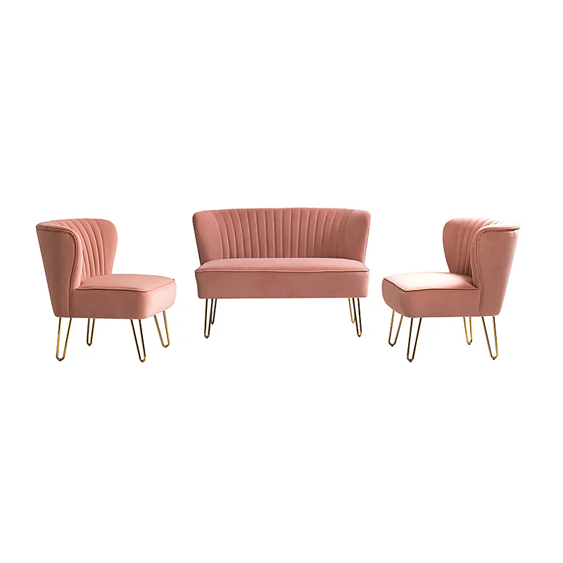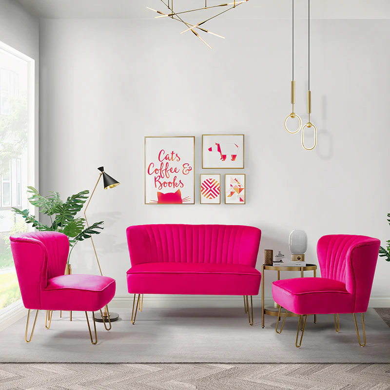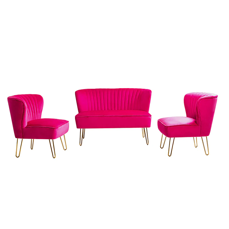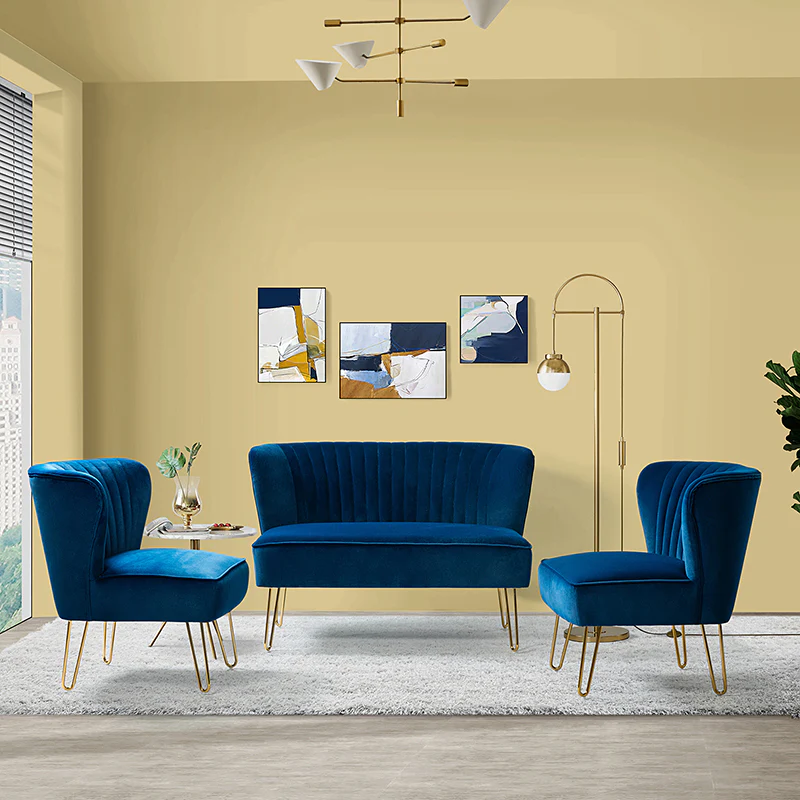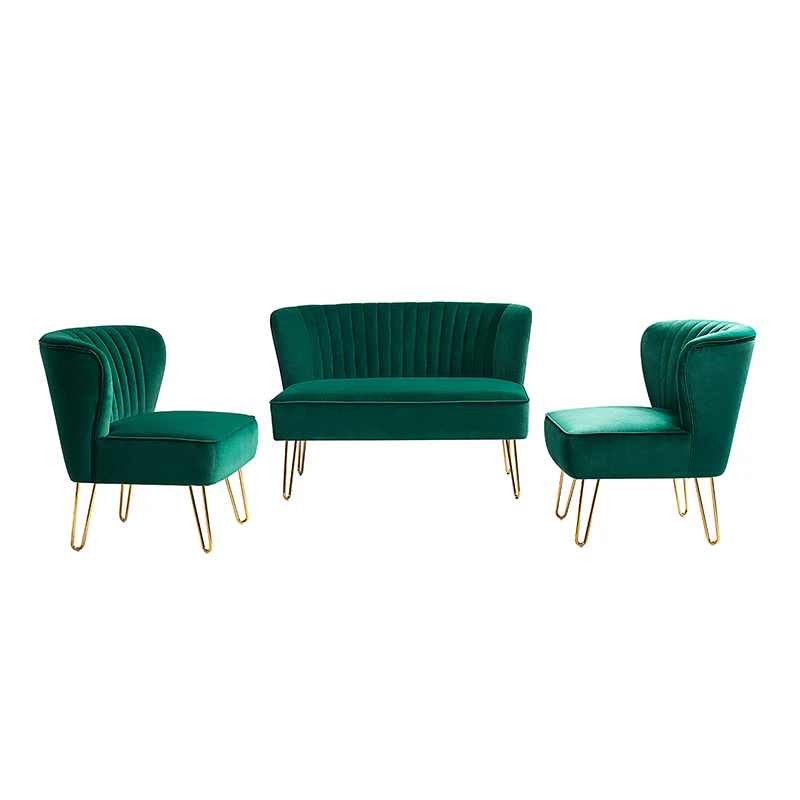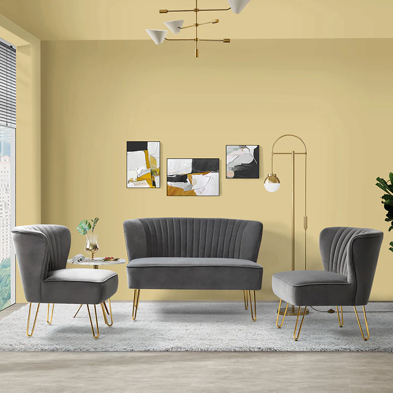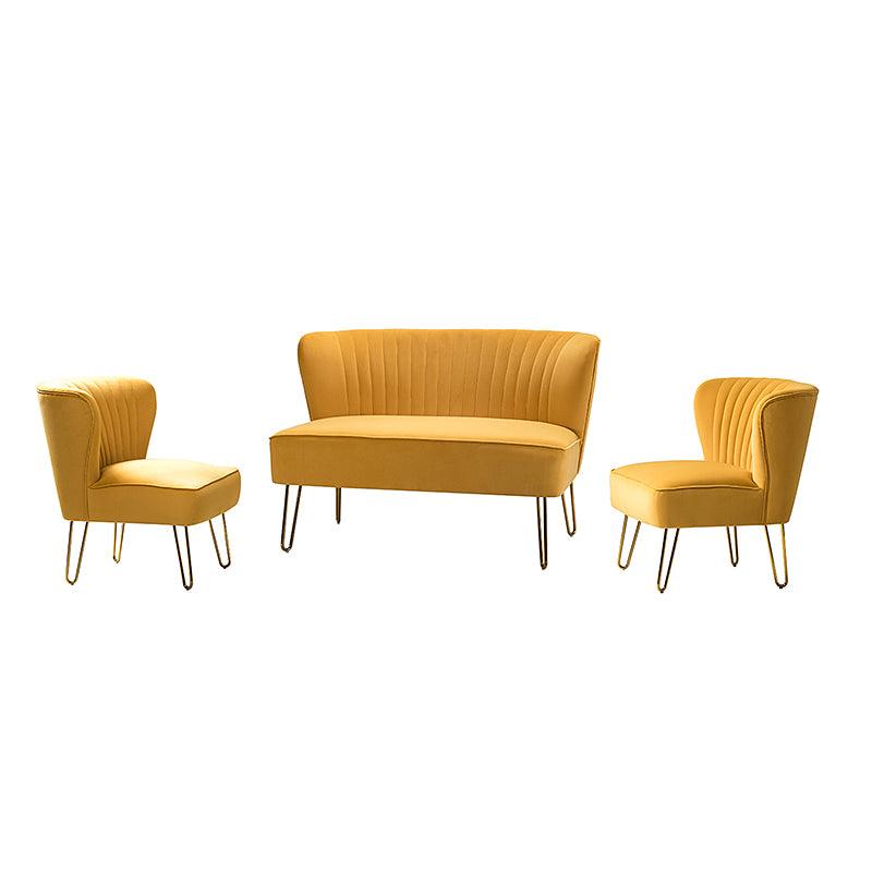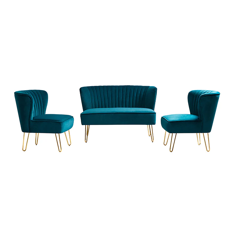If you're looking to make a statement, this three piece living room set has it all. Its tufted design and channel back will be the perfect centerpiece for hours of family gatherings or entertainment fun. And with delicate U-shaped legs, you'll have even more reasons to linger! Refresh your space today with an inviting look that's hard not to love.