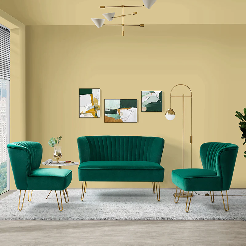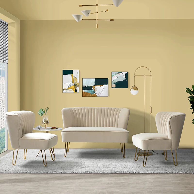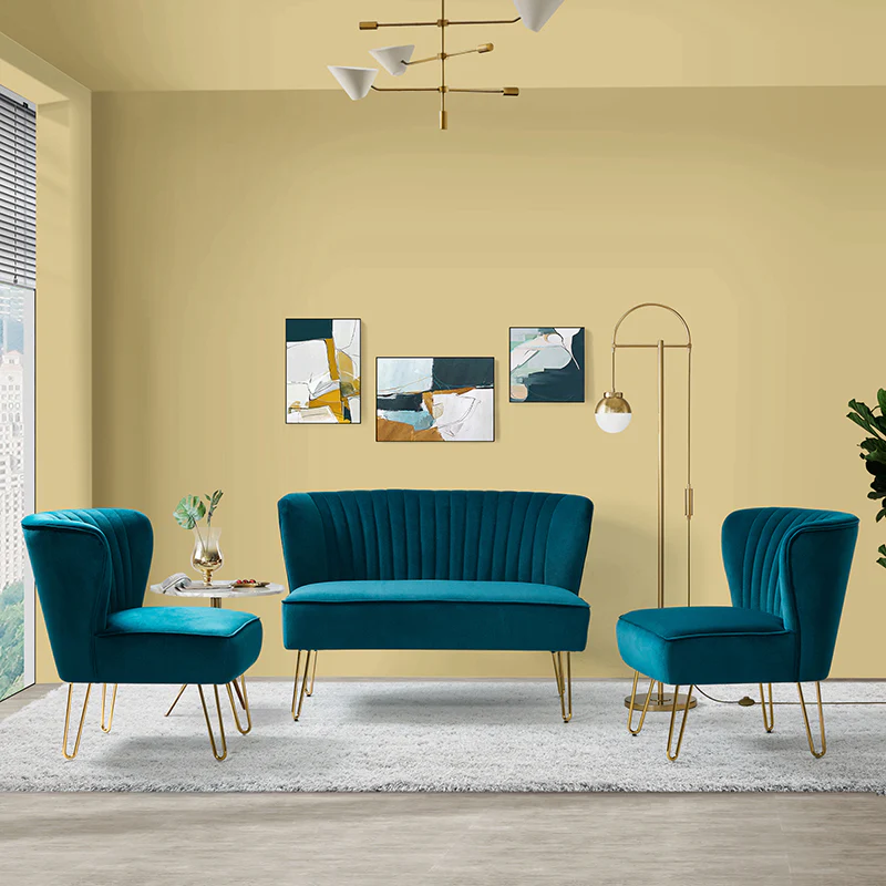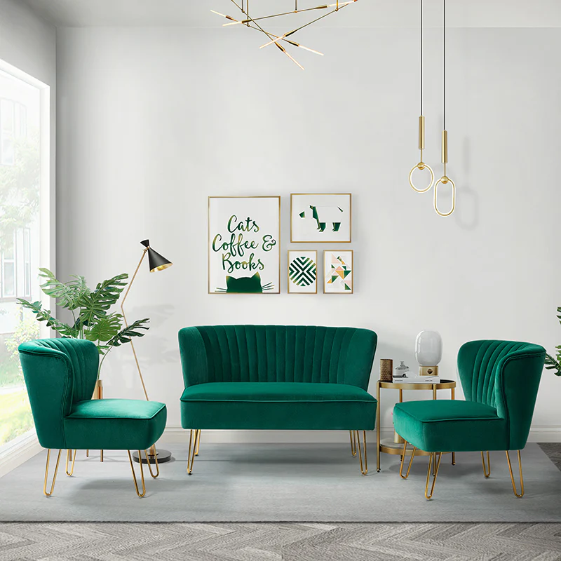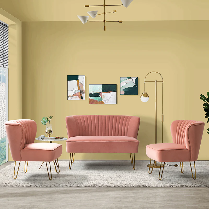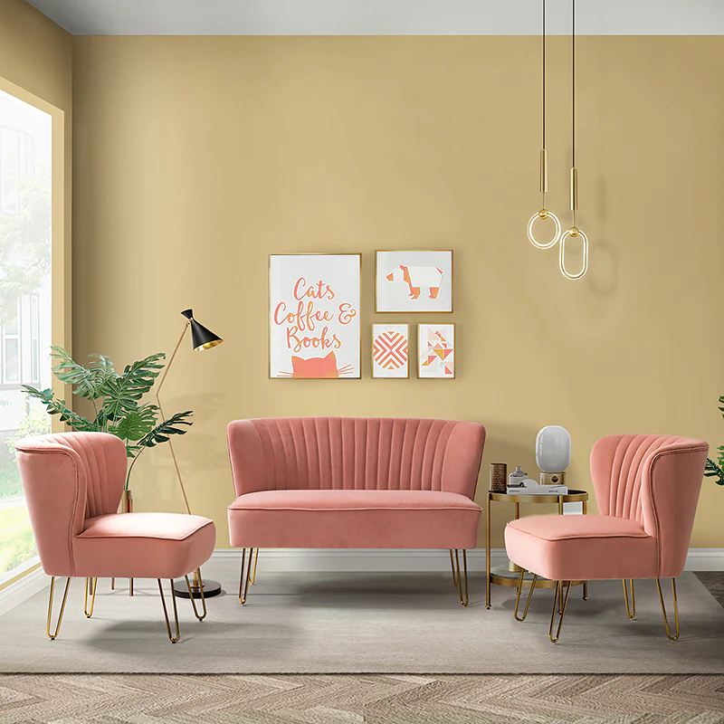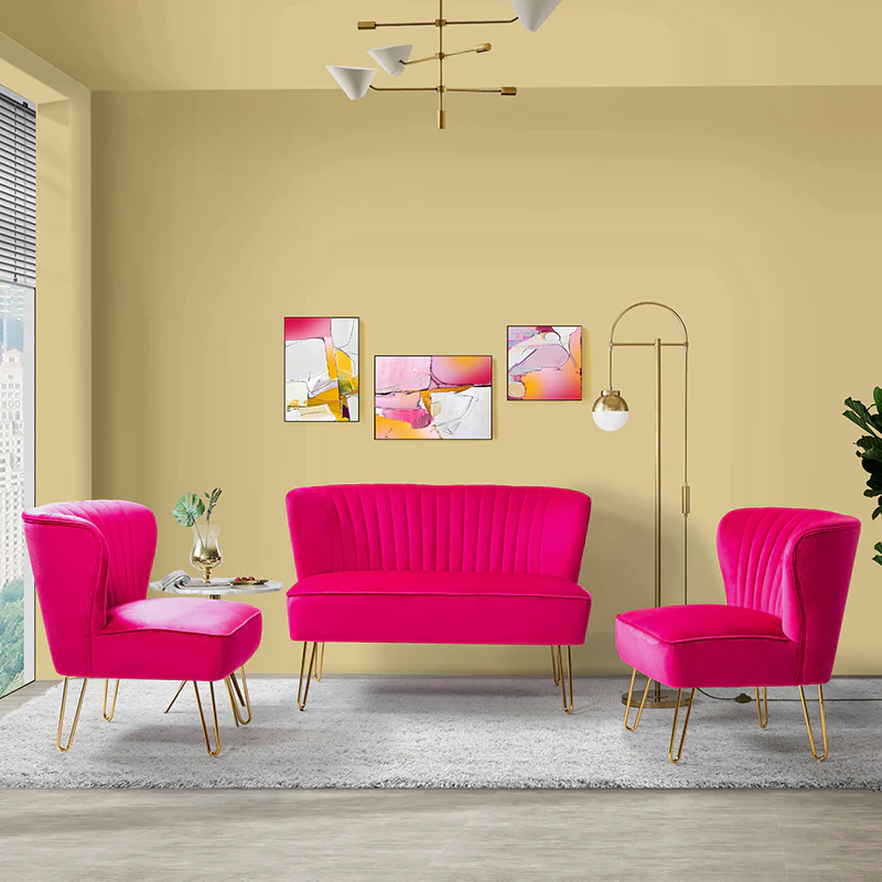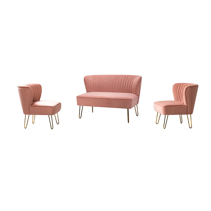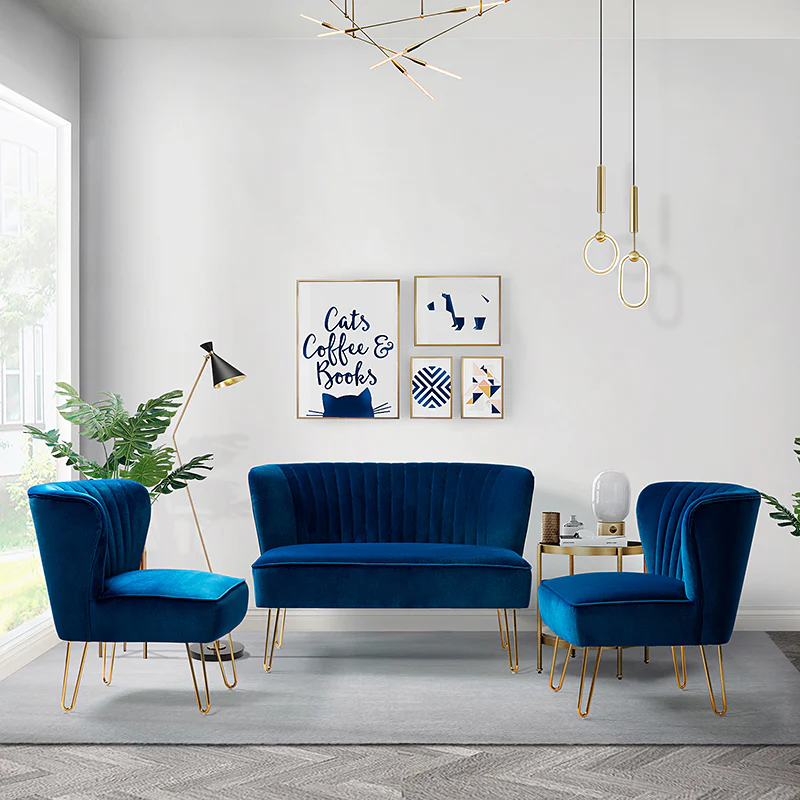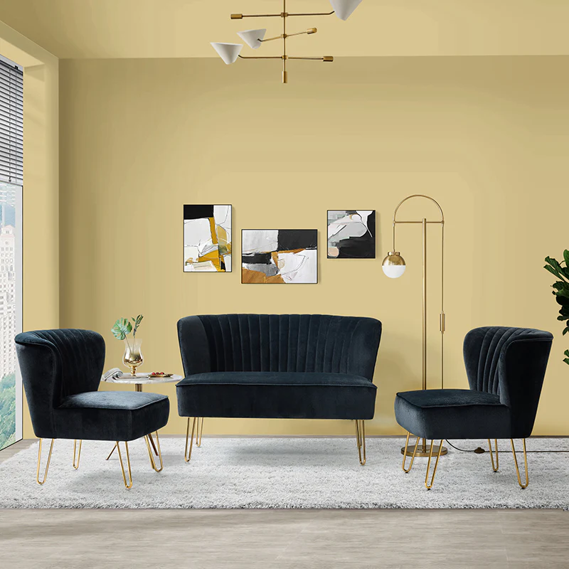If you're looking to make a statement, this three piece living room set has it all. Its tufted design and channel back will be the perfect centerpiece for hours of family gatherings or entertainment fun. And with delicate U-shaped legs, you'll have even more reasons to linger! Refresh your space today with an inviting look that's hard not to love.