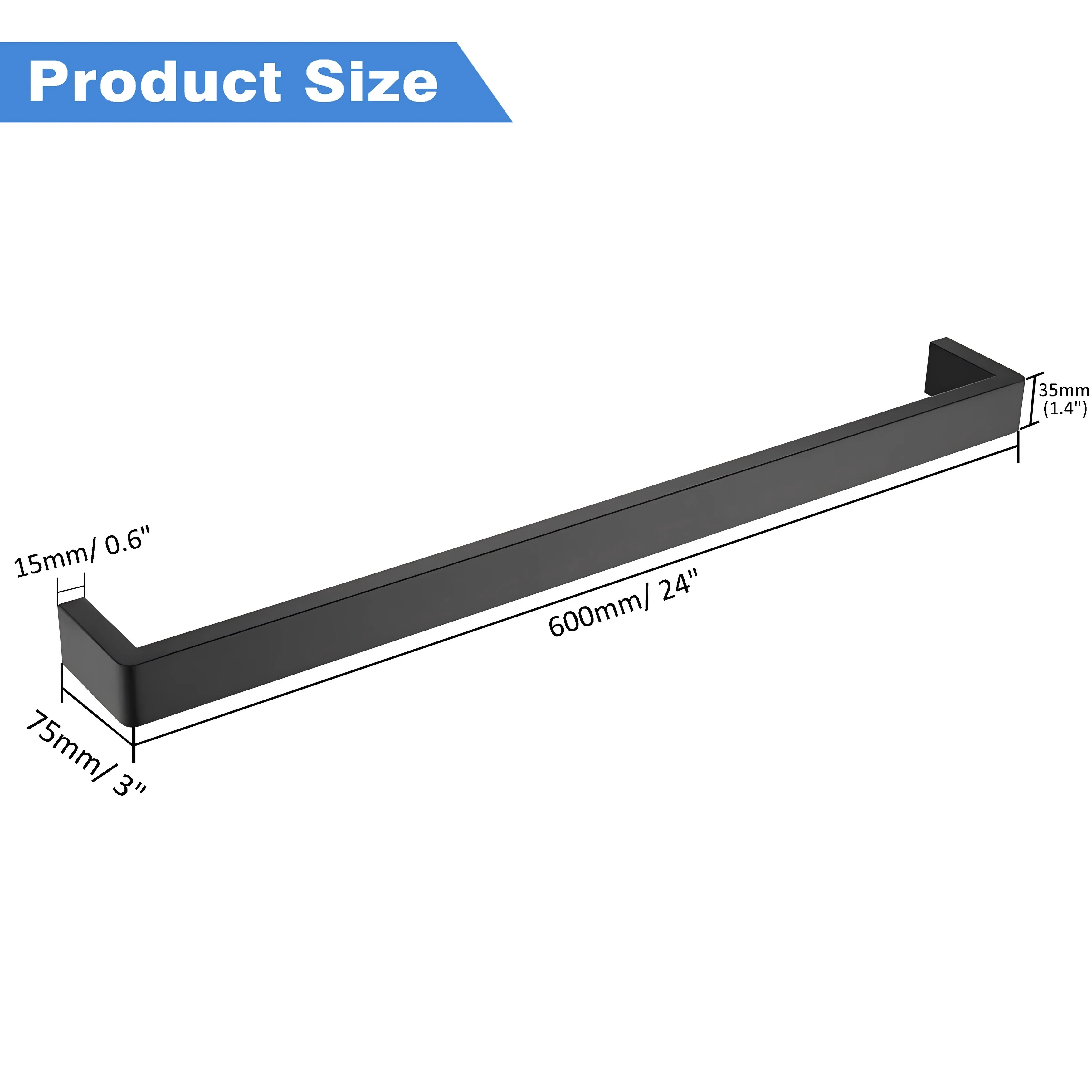 - Size reference: towel bar: 23.6 in. L x 1.97 in. W x 3.15 in. D
