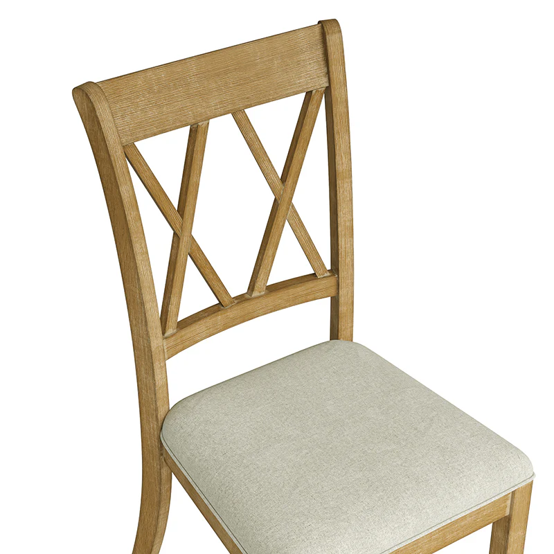 Enhancing your dining experience, the rustic farmhouse-style dining chairs complement your dining set beautifully, offering you an ideal seat for savoring meals while reinforcing the aesthetic established by your dining table. This farmhouse-style chair set of 2 is an excellent choice for achieving a subtle country-inspired appearance, constructed from sturdy rubber wood featuring a solid, muted finish and creating a vintage-inspired vibe that's just right in cozy aesthetics. Plus, this charming design showcases a classic cross-back backrest and four subtly curved legs in a calming solid hue. Sink into relaxation with its high-density soft cushions, engineered for a comfortable sitting experience. Ideal for your breakfast nook or dining room table, its armless design simplifies tucking it neatly under your table, ensuring it stays out of the way when not in use.