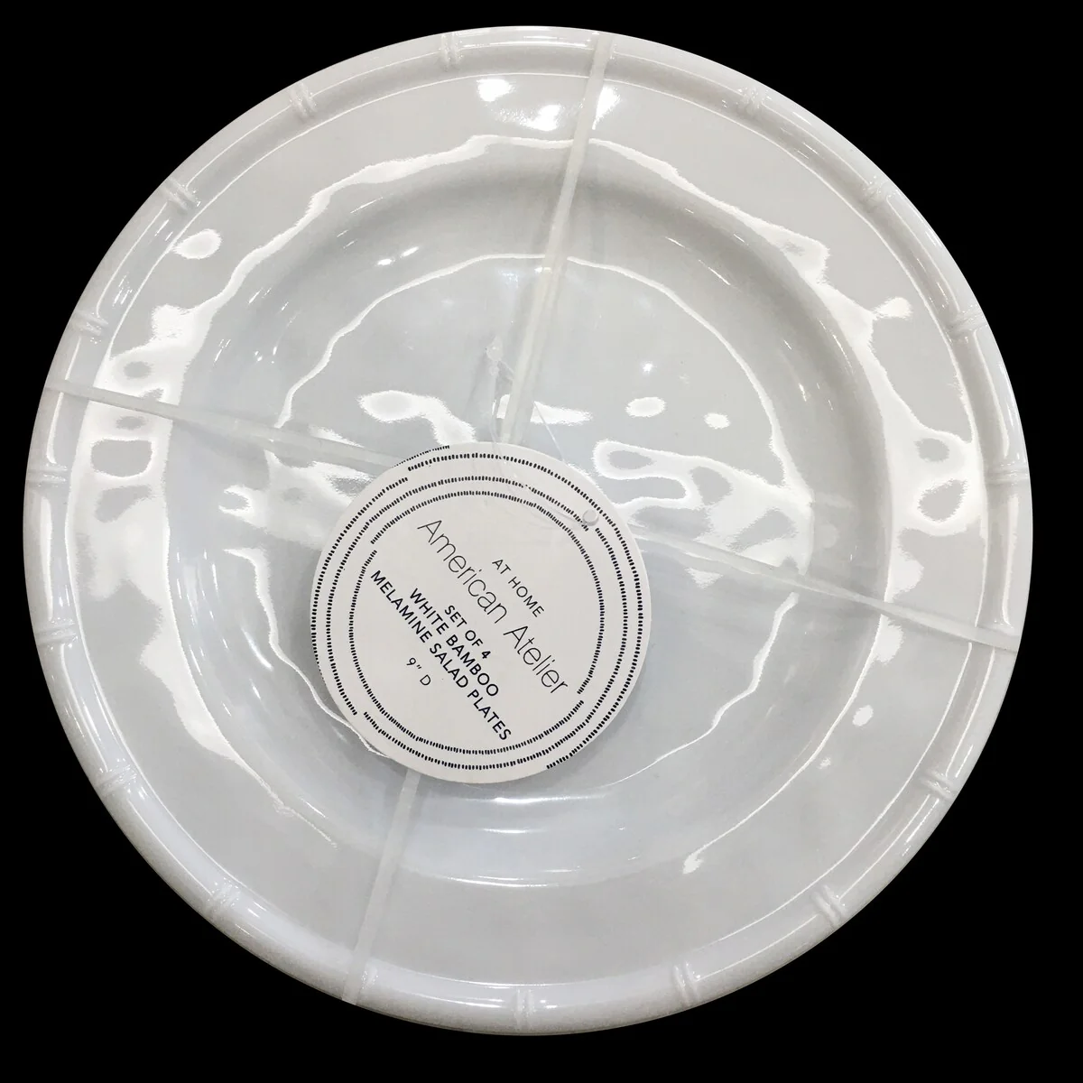 • American Atelier White Bamboo Edge Design Melamine Plates Set of 4