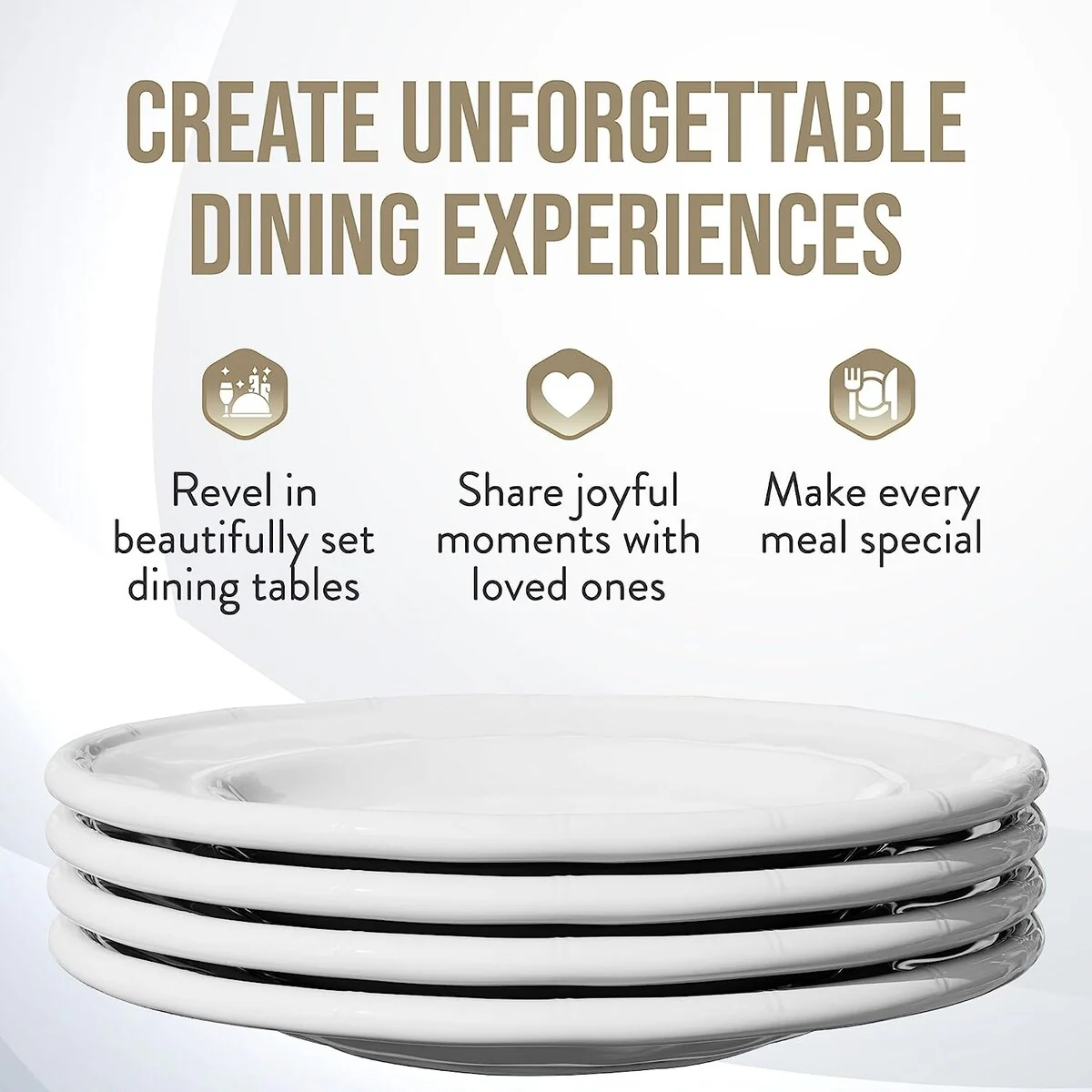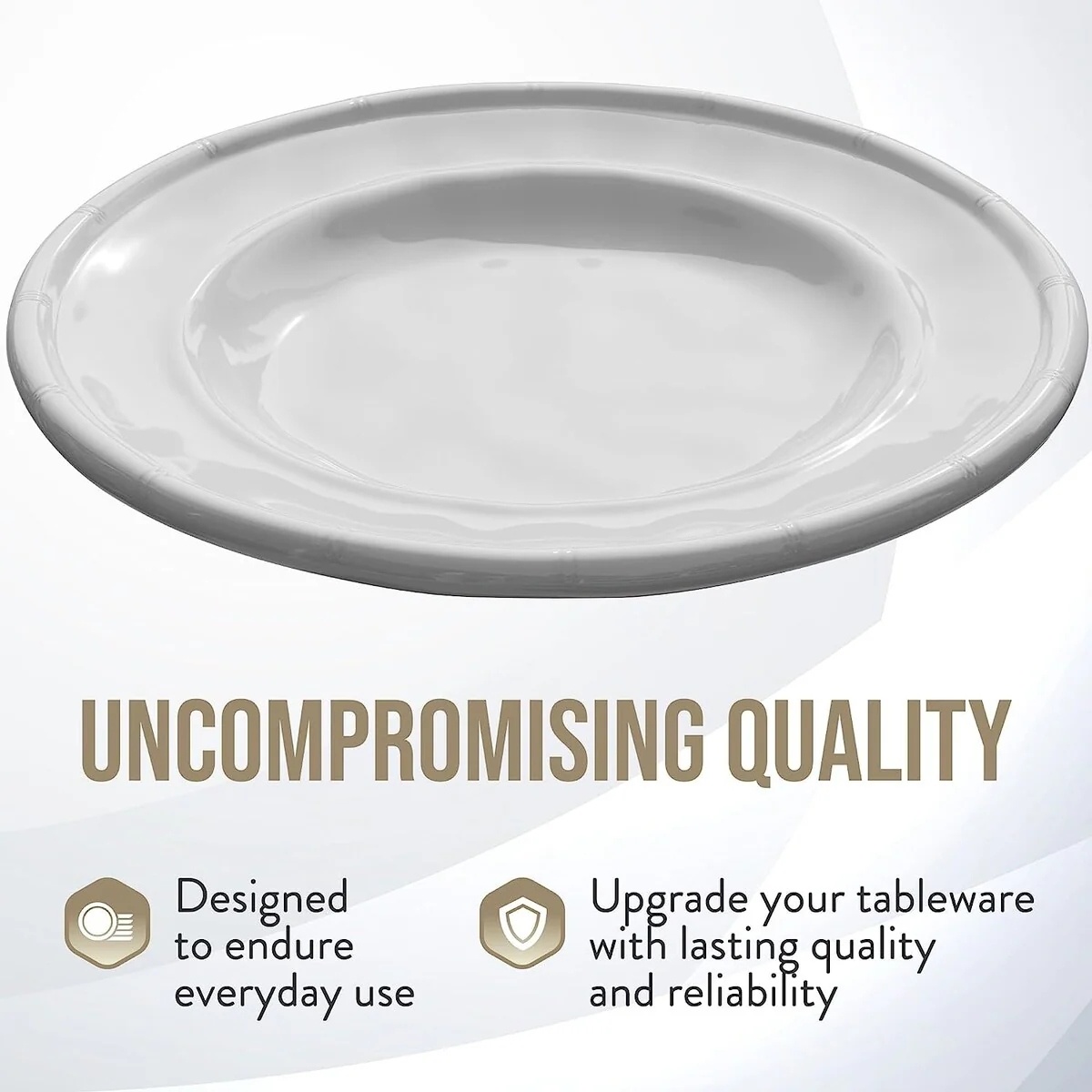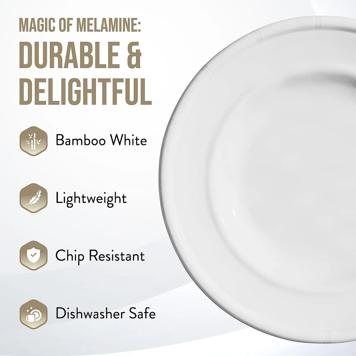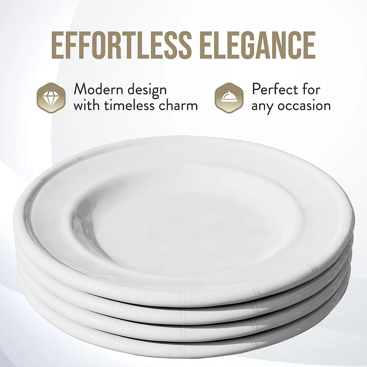 • This melamine plates set are easy stack to save space if you have a limit cupboard. Traditional classic white plates are elegant for all occasions