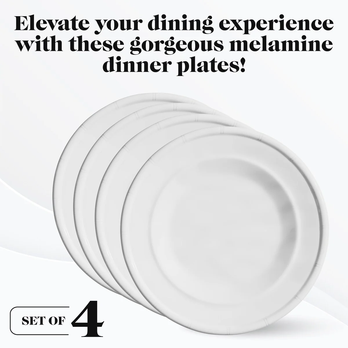 • (1) American Atelier White Bamboo Edge Design Melamine Plates Set, Break Resistant, Lightweight, Set of 4