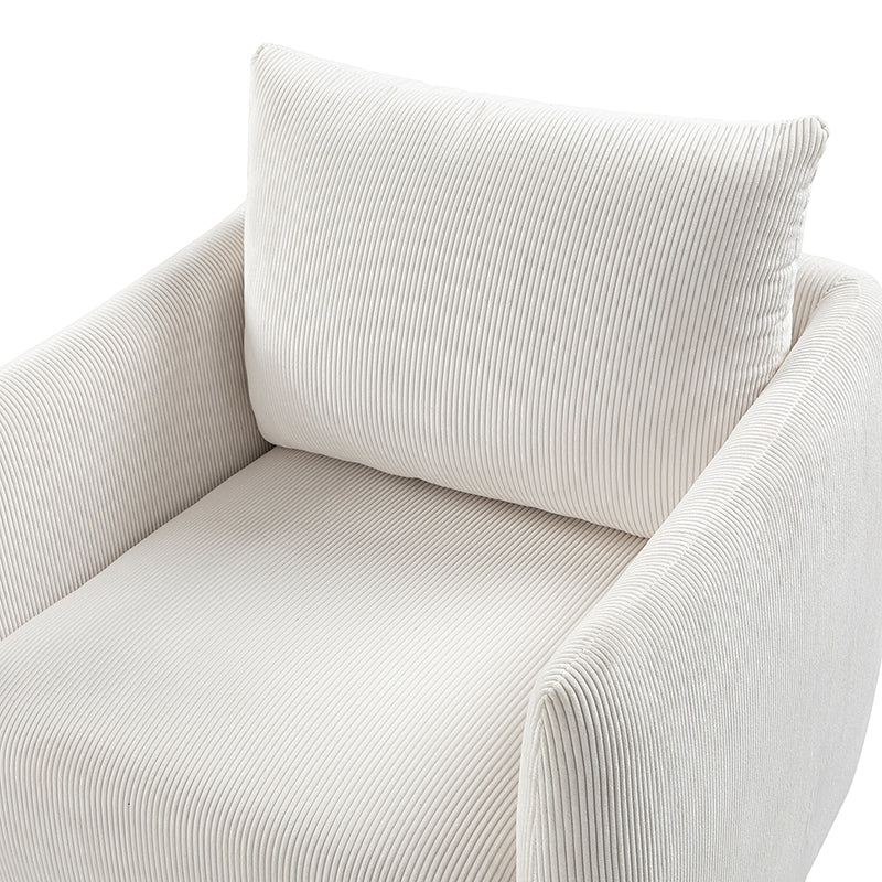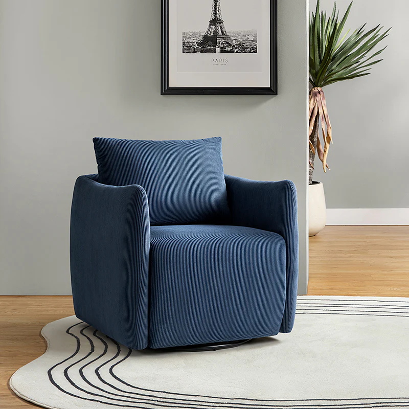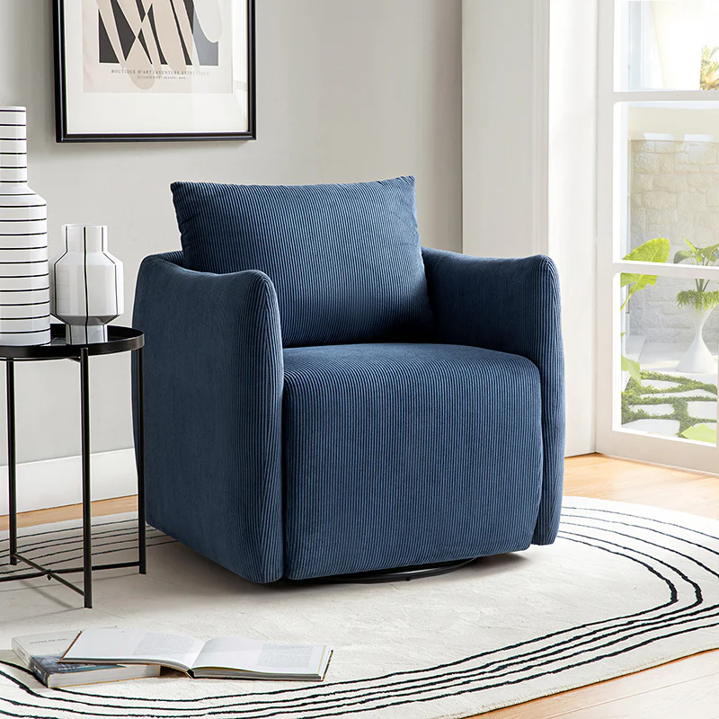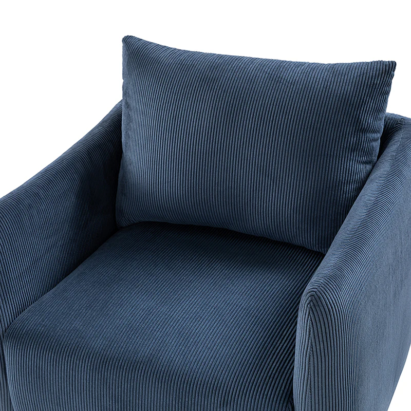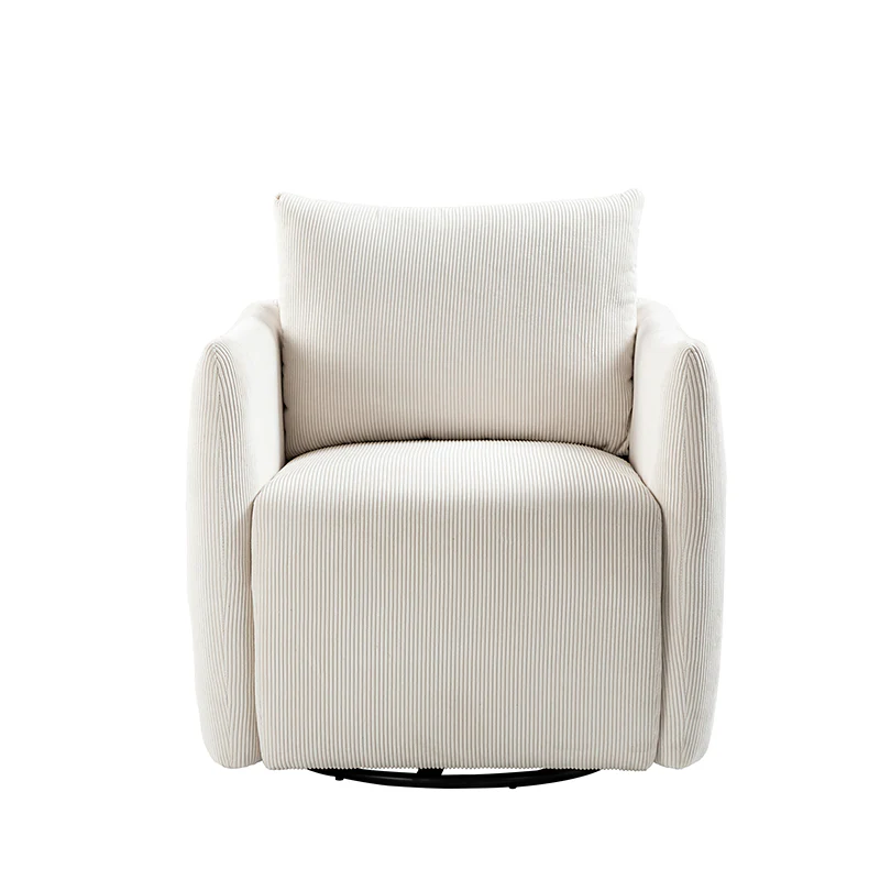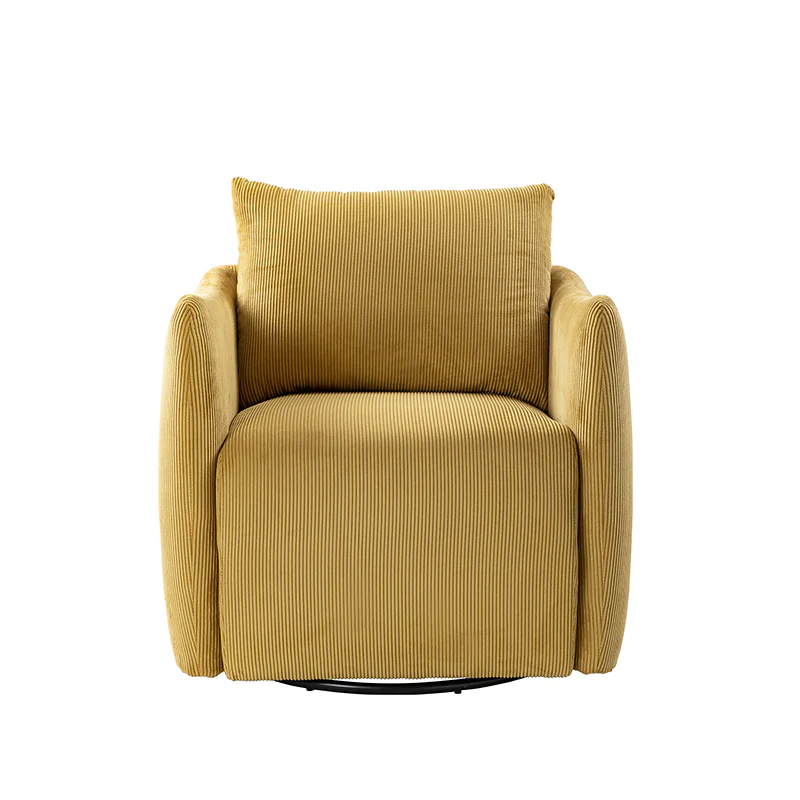 Introducing the 360-degree rotatable modern swivel chair, upholstered in luxurious corduroy fabric. Its smooth rotation allows you to effortlessly find the perfect angle for conversing with your loved ones. Not limited to socializing, this versatile chair is also ideal for enjoying movies, sipping coffee, or simply unwinding. With its ability to seamlessly blend into any home decor style, be it Italian contemporary, contemporary glam, ultra-modern, Scandinavian style, or classic Boho, it adds a touch of elegance to any space. The chair features a thick cushion, ensuring a comfortable seating experience, while the reversible and detachable backrest cushion, made with washable fabric, guarantees easy cleaning. Simply unbox and enjoy its endless possibilities in multiple scenarios.