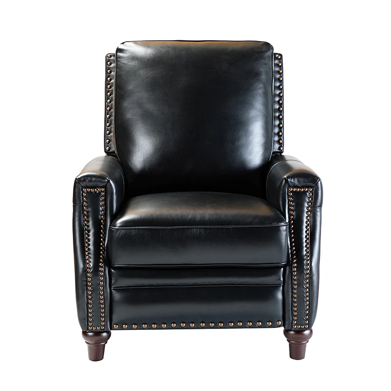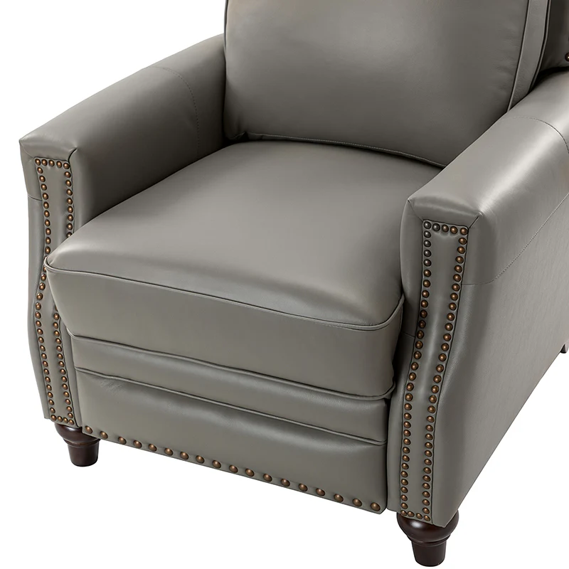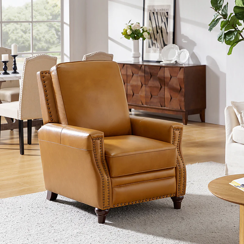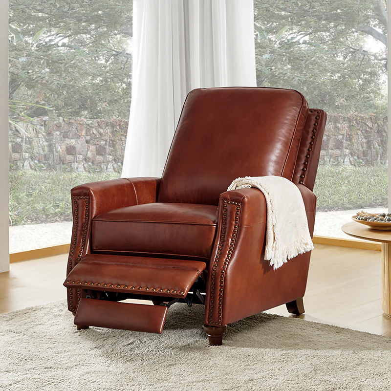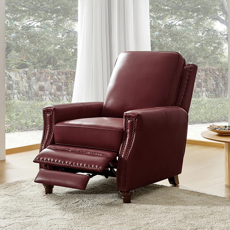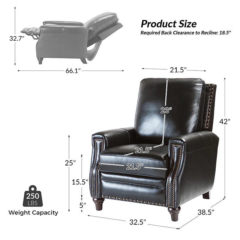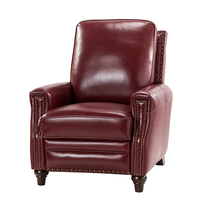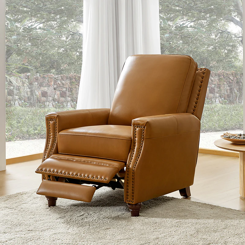 Whether you need to round out your living room look or accent the master suite, this cigar recliner is the perfect spot to unwind. This genuine leather chair exudes luxury and comfort whether upright or reclining. The smooth leather adds sophistication, combining style with relaxation.The recliner chair is made of high-quality cowhide, easy to clean and maintain, you can easily clean with a dry or damp lint-free cloth. Humanization design with comfortable backrest for different using of reading books, watching TV, and sleeping, provide extreme comfort for your neck, back, and lumbar. The recliner can be perfectly matched with any decoration, offers a fashion air of sophistication to your home.