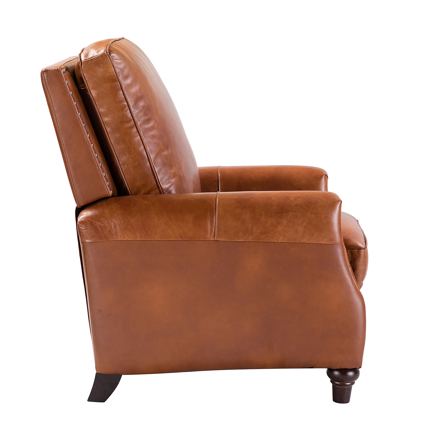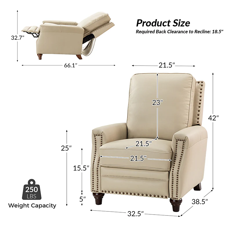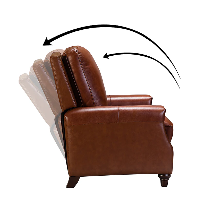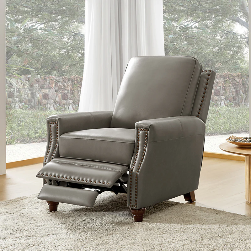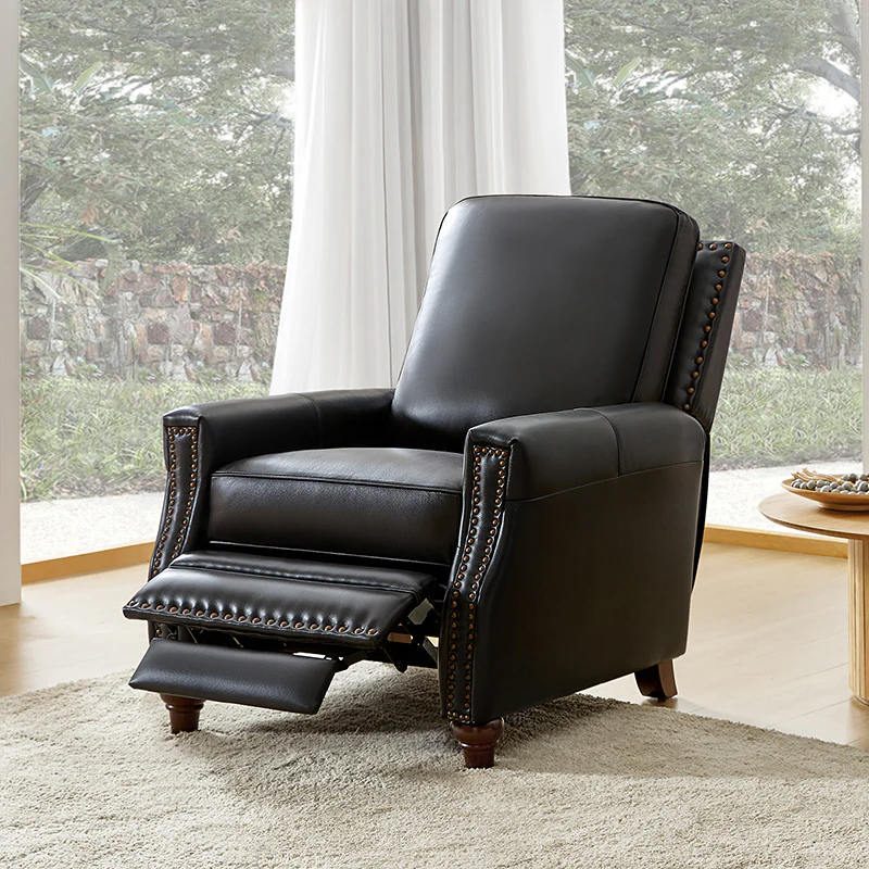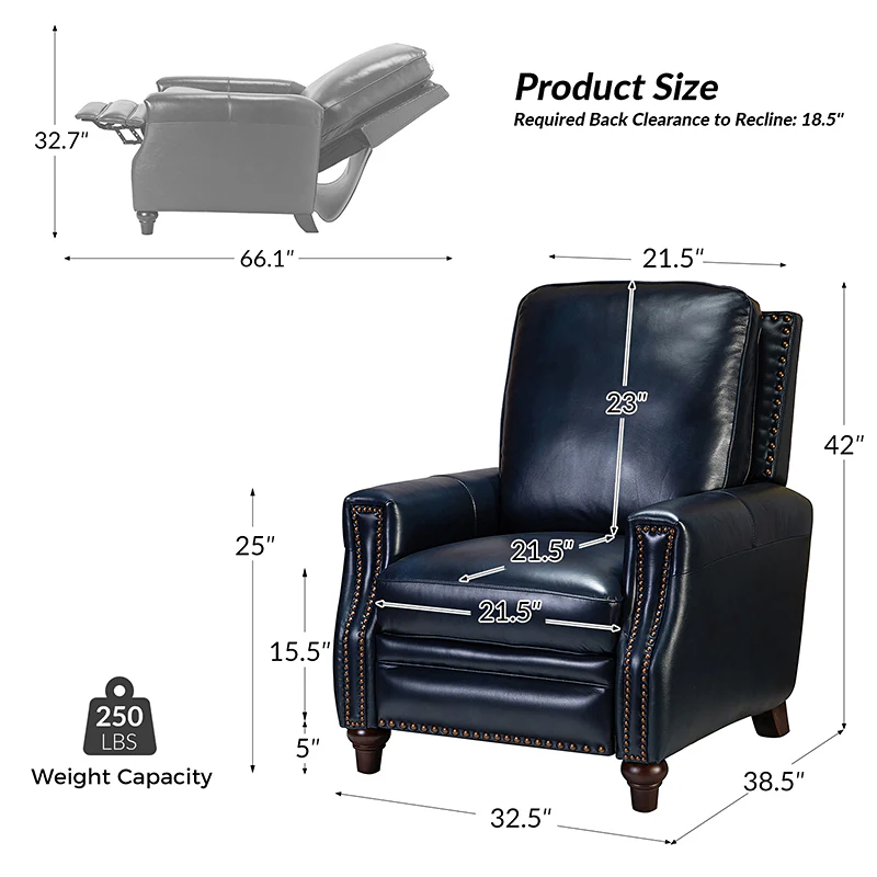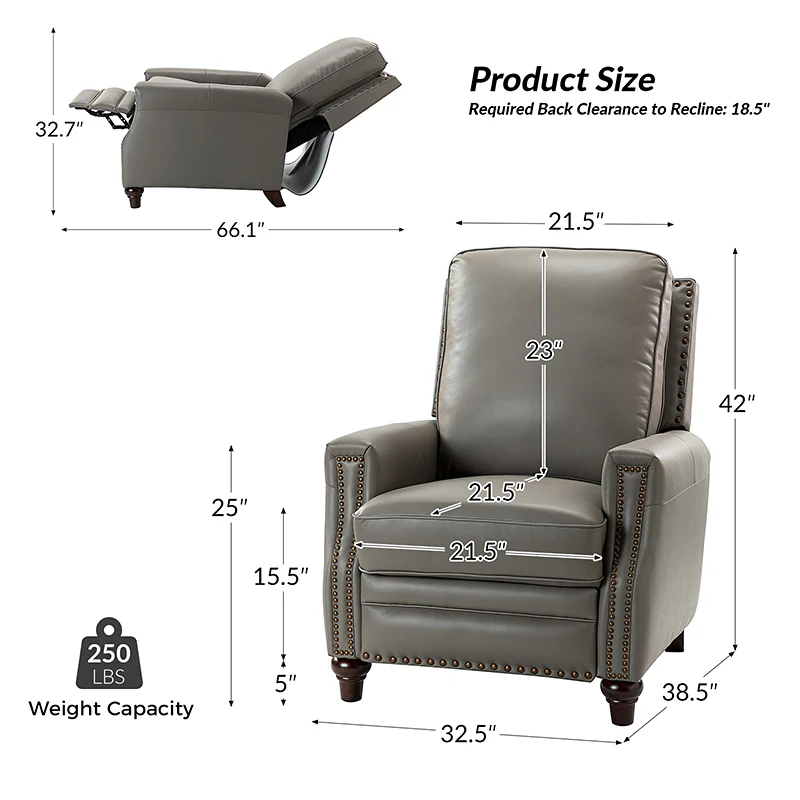 Whether you need to round out your living room look or accent the master suite, this cigar recliner is the perfect spot to unwind. This genuine leather chair exudes luxury and comfort whether upright or reclining. The smooth leather adds sophistication, combining style with relaxation.The recliner chair is made of high-quality cowhide, easy to clean and maintain, you can easily clean with a dry or damp lint-free cloth. Humanization design with comfortable backrest for different using of reading books, watching TV, and sleeping, provide extreme comfort for your neck, back, and lumbar. The recliner can be perfectly matched with any decoration, offers a fashion air of sophistication to your home.