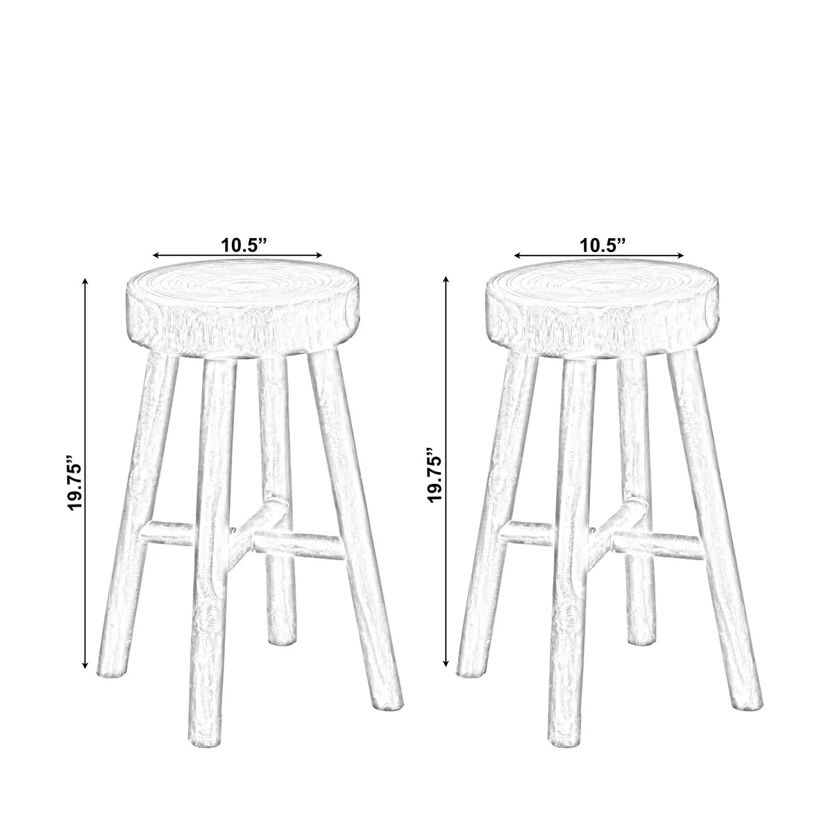 Antique Round Wooden Chair Log Cabin Stools Set of 2