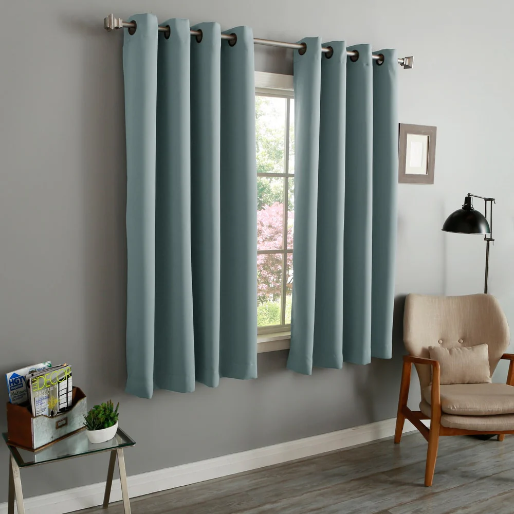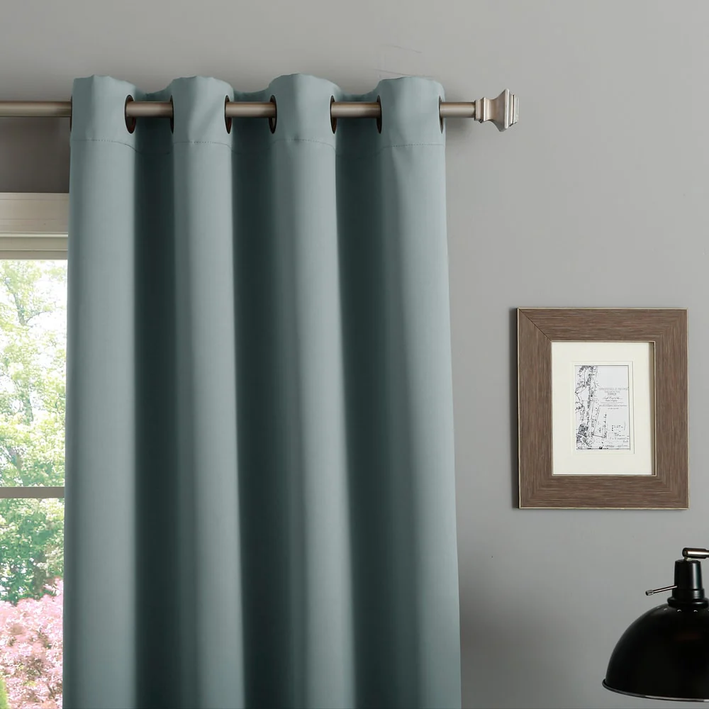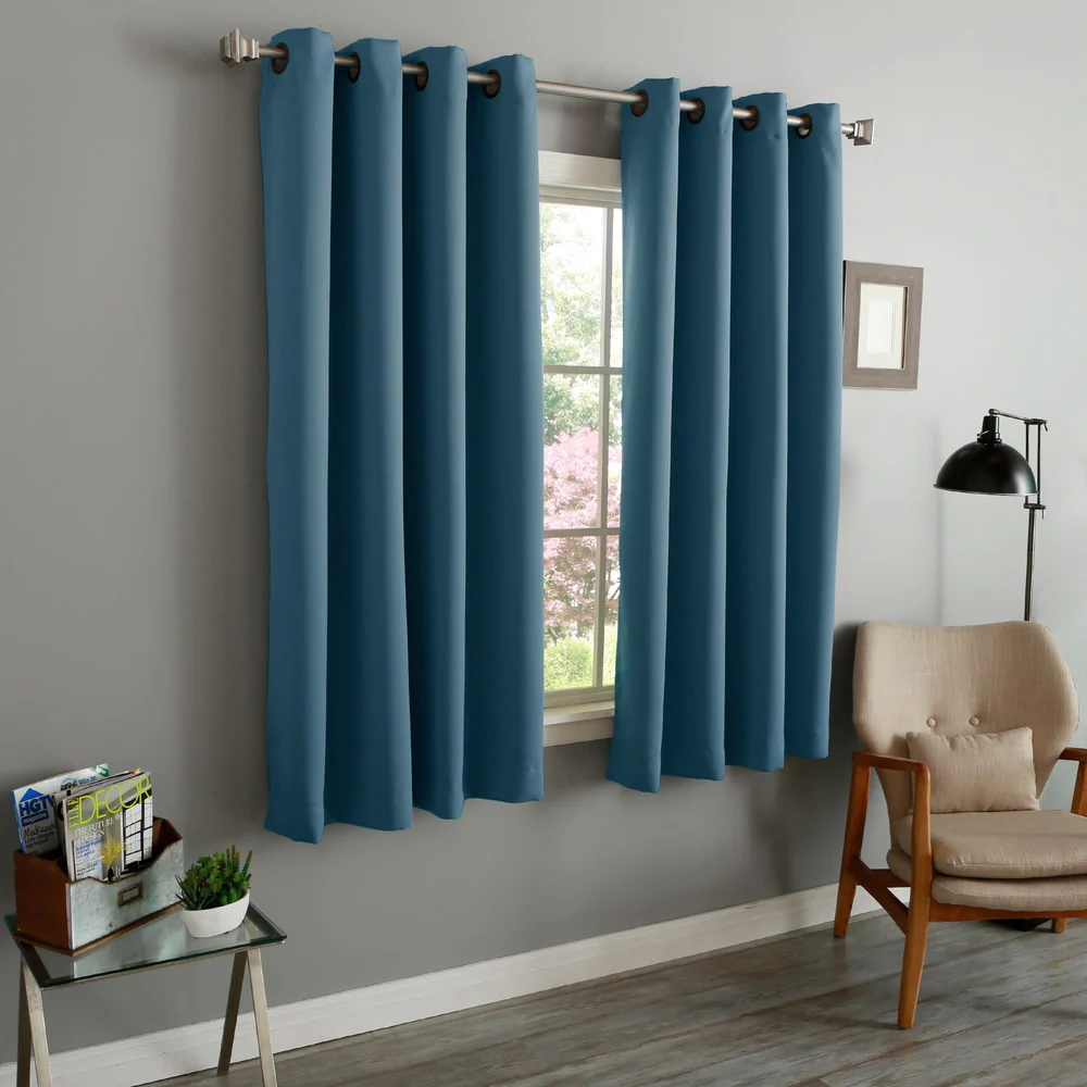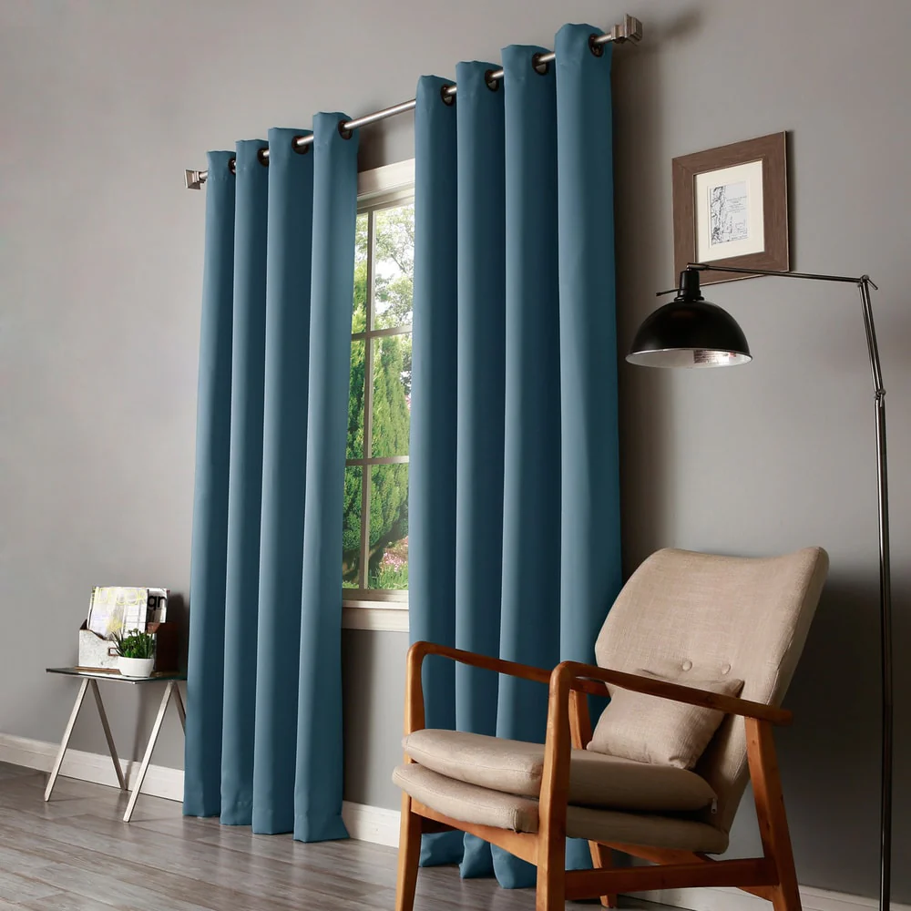 Elevate your room's décor with these beautiful blackout curtain panels from Aurora Home. Made of durable polyester fiber, these curtain panels come in a solid color that will add a pop of color to any room setting. With thermal insulation and energy-saving properties, these curtain panels provide total privacy while keeping your room cool in summer and warm in winter. These easy-to-install panels come with antique bronze grommets that are compatible with standard or decorative rods and brackets. A coordinating tieback is included with each panel pair for a complete look.