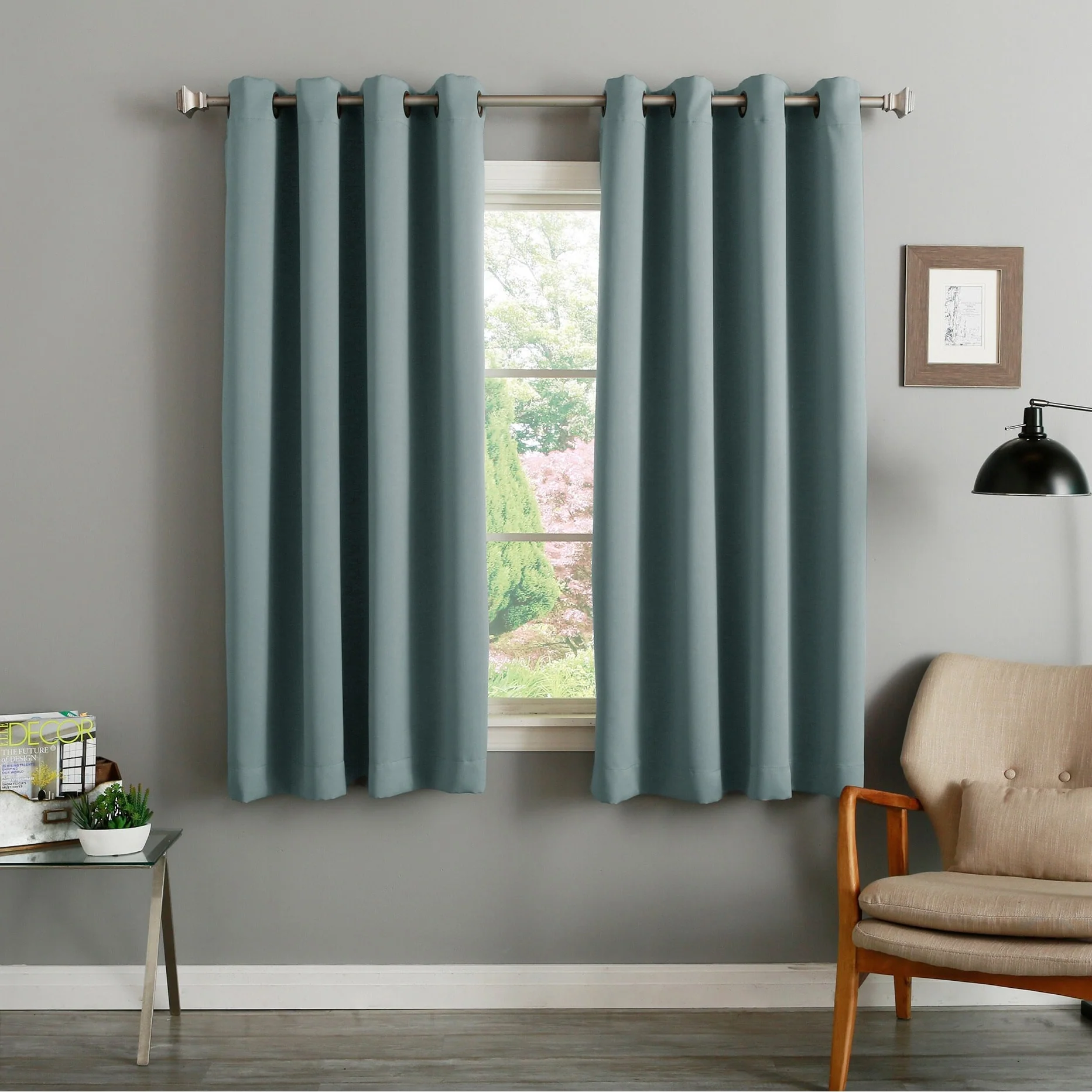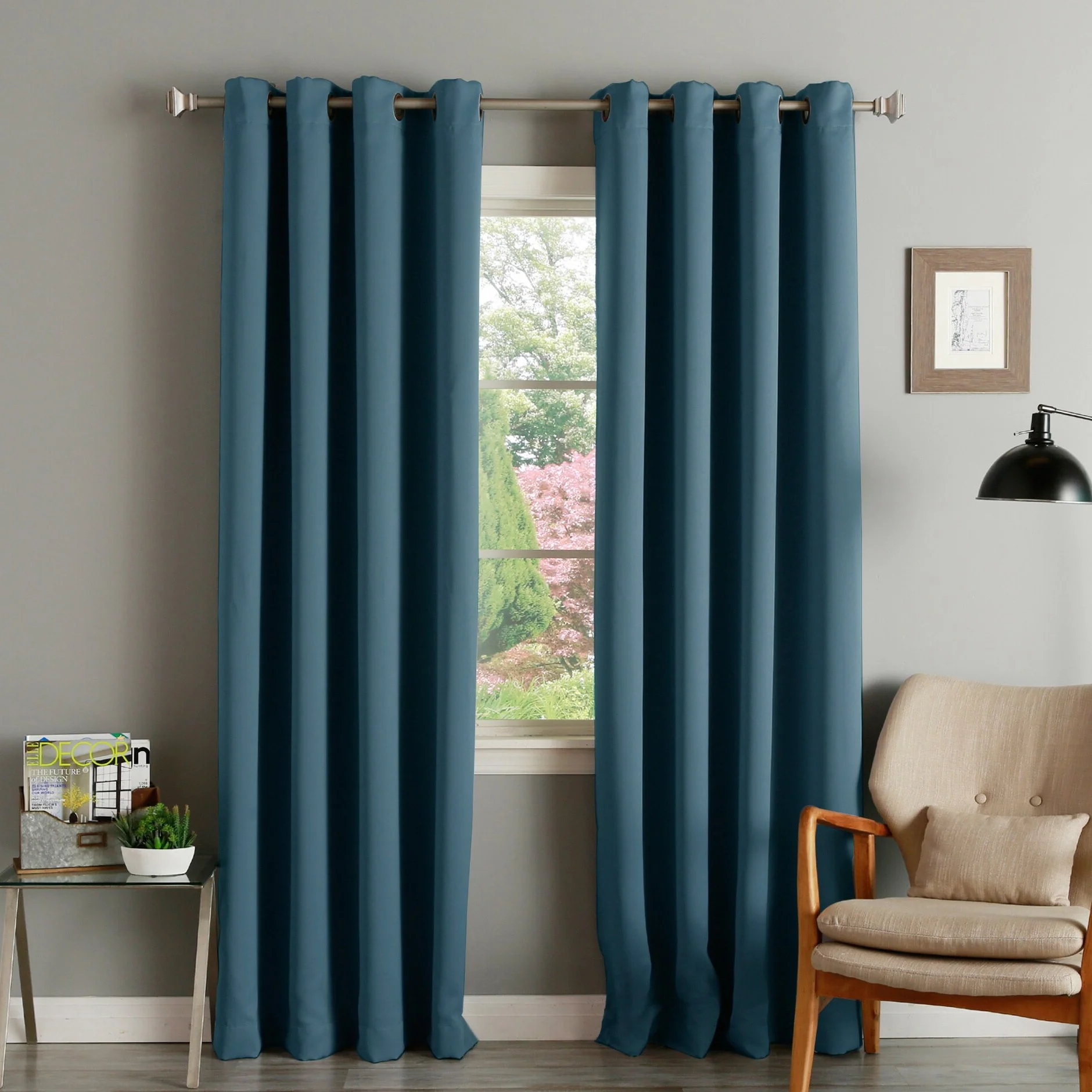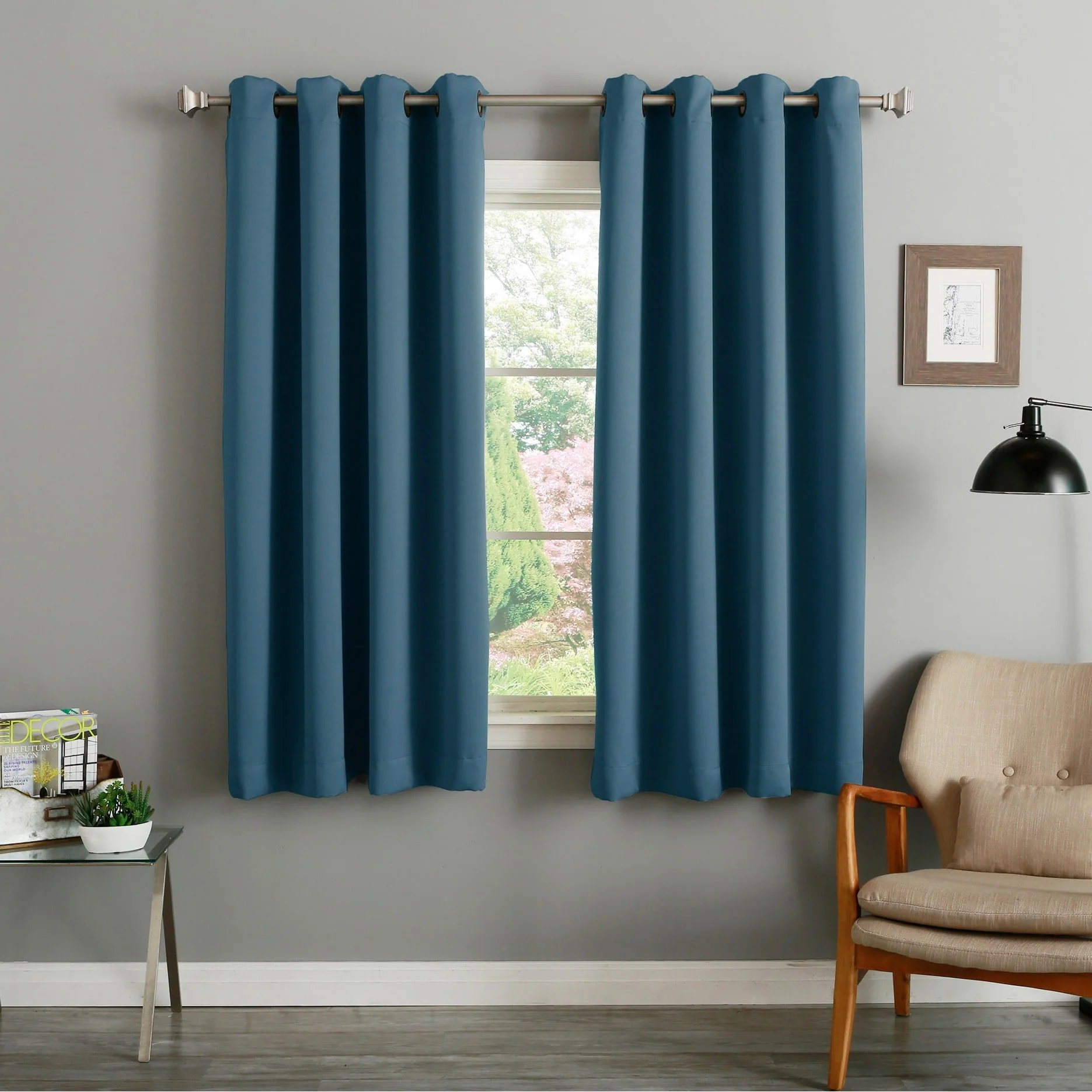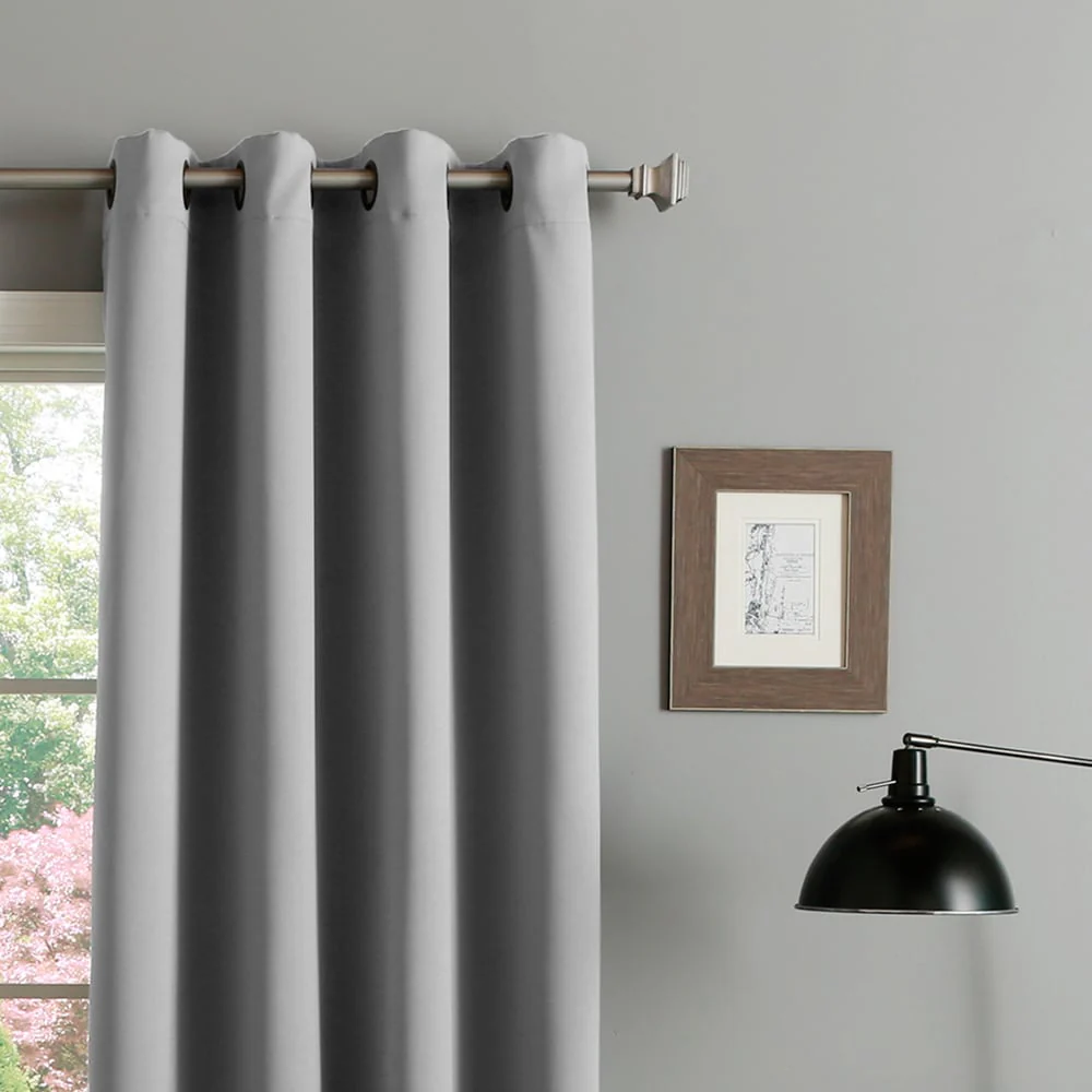 Elevate your room's décor with these beautiful blackout curtain panels from Aurora Home. Made of durable polyester fiber, these curtain panels come in a solid color that will add a pop of color to any room setting. With thermal insulation and energy-saving properties, these curtain panels provide total privacy while keeping your room cool in summer and warm in winter. These easy-to-install panels come with antique bronze grommets that are compatible with standard or decorative rods and brackets. A coordinating tieback is included with each panel pair for a complete look.