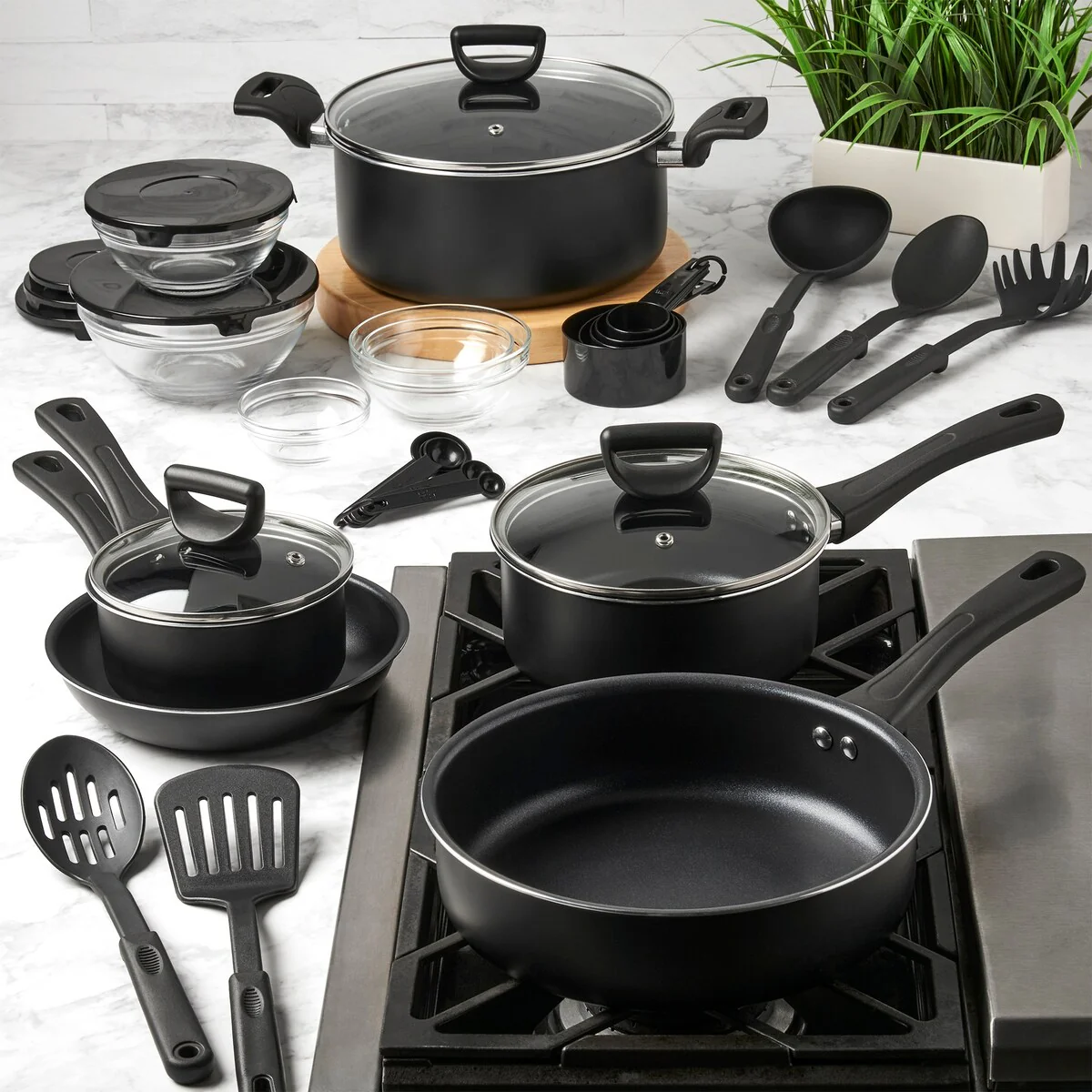 Basic essentials introduces essential cookware designed for everyday durability and high-quality cooking performance. Built to handle all your favorite recipes, this cookware set features durable aluminum that heats up quickly and evenly and a premium non-stick coating for excellent food release.