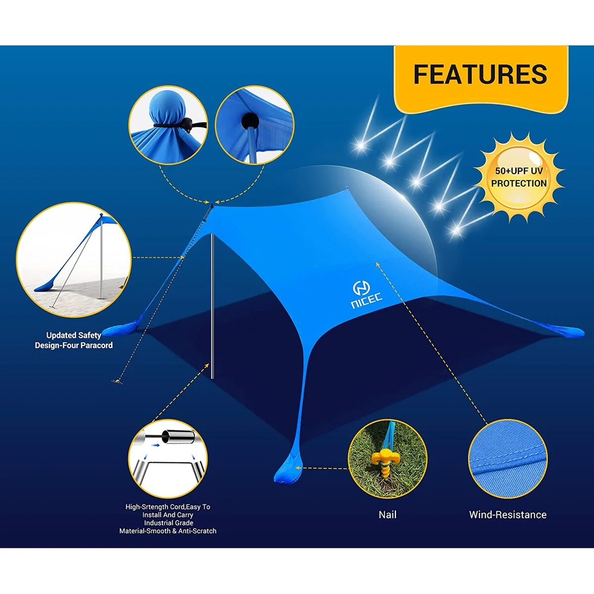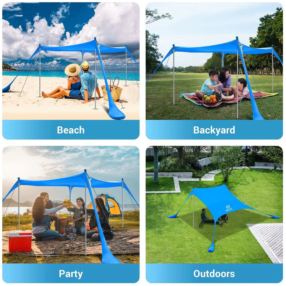 - Multiple Options: Choose from two size options (6.6 x 6.6 FT or 10 x 10FT) and either two or four poles to accommodate couples, families, or groups of up to 10 people.