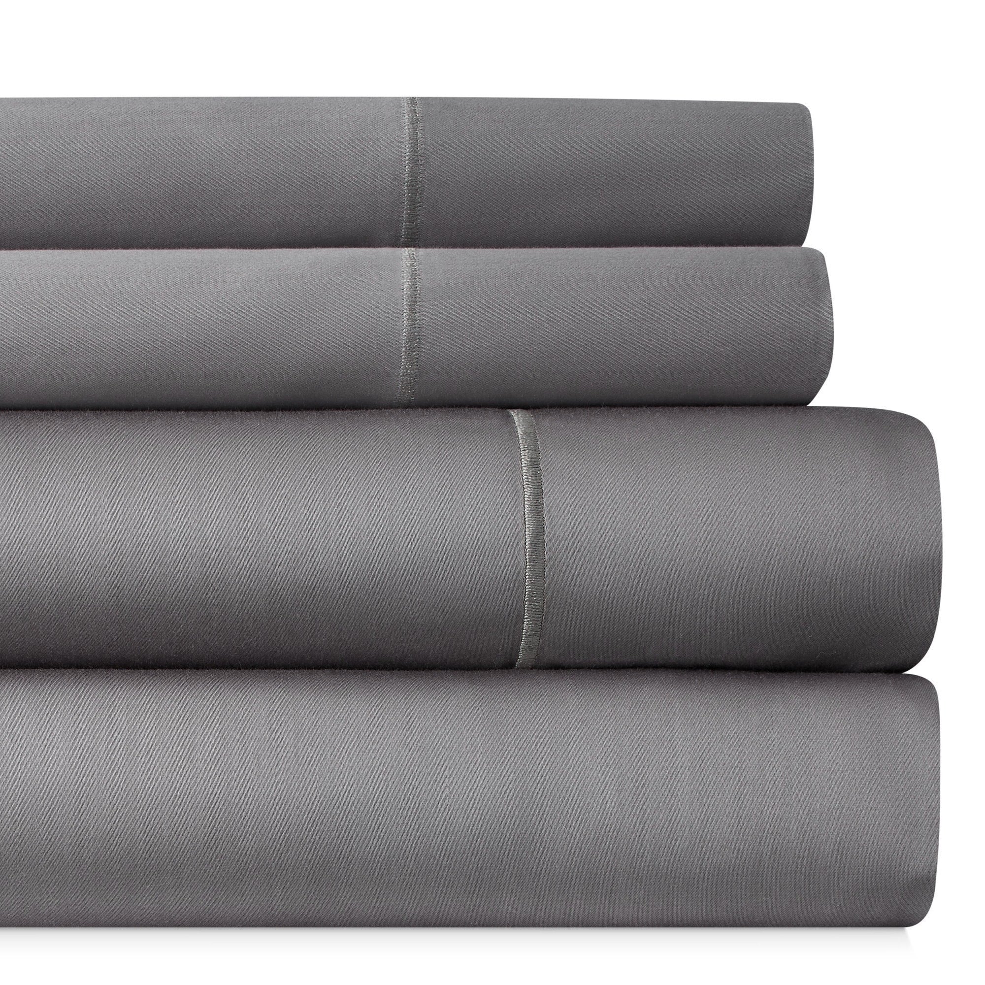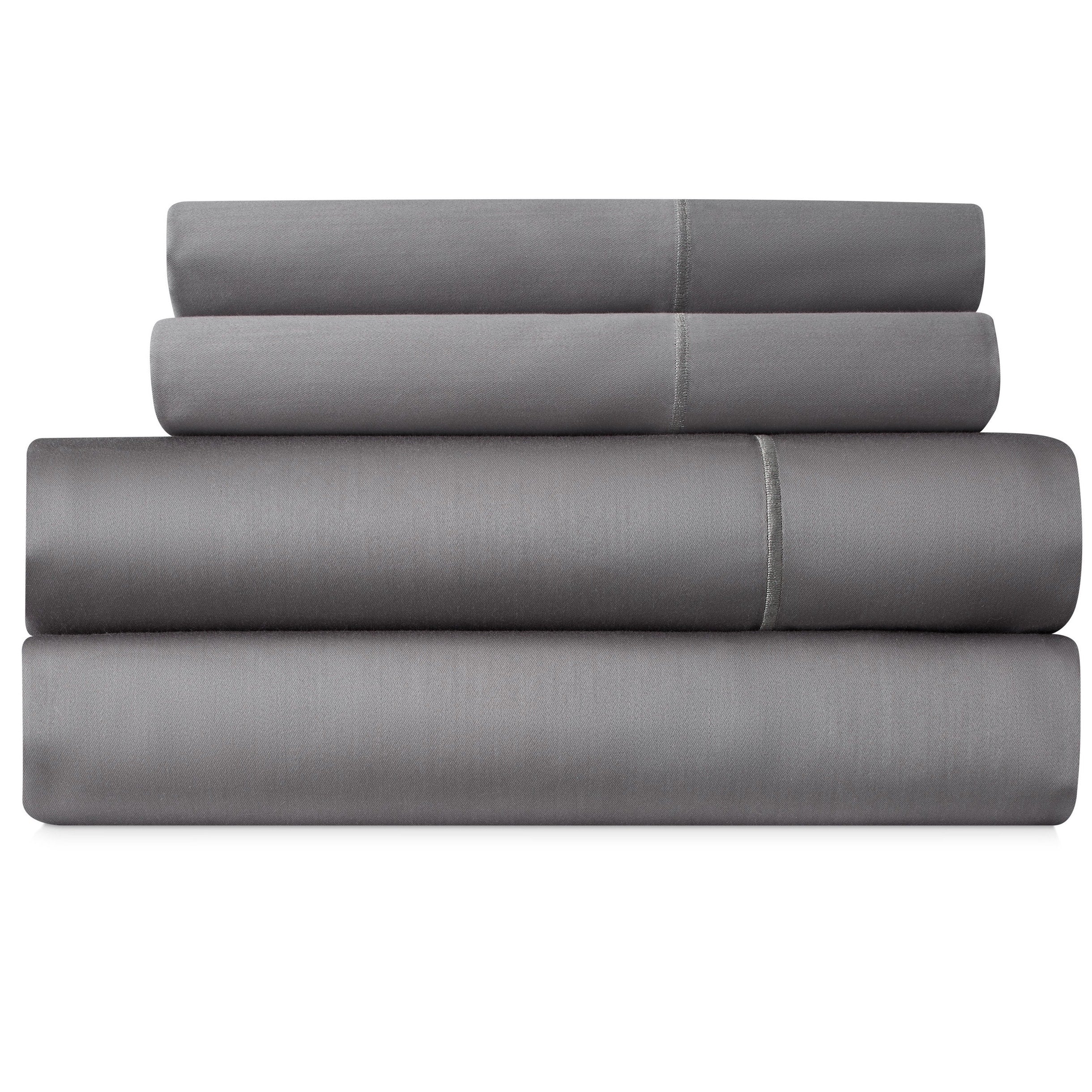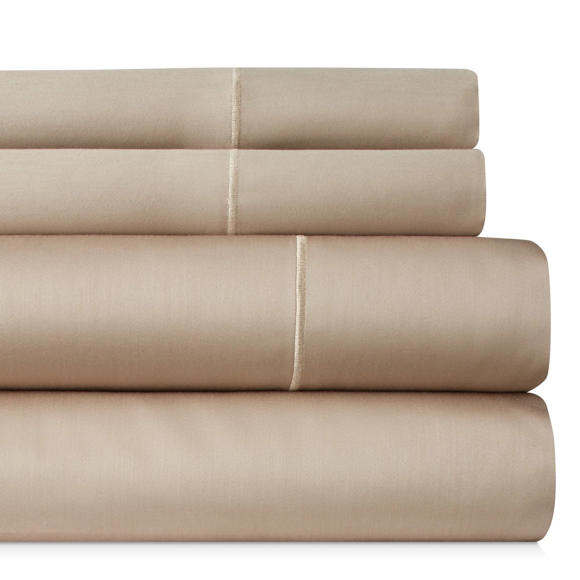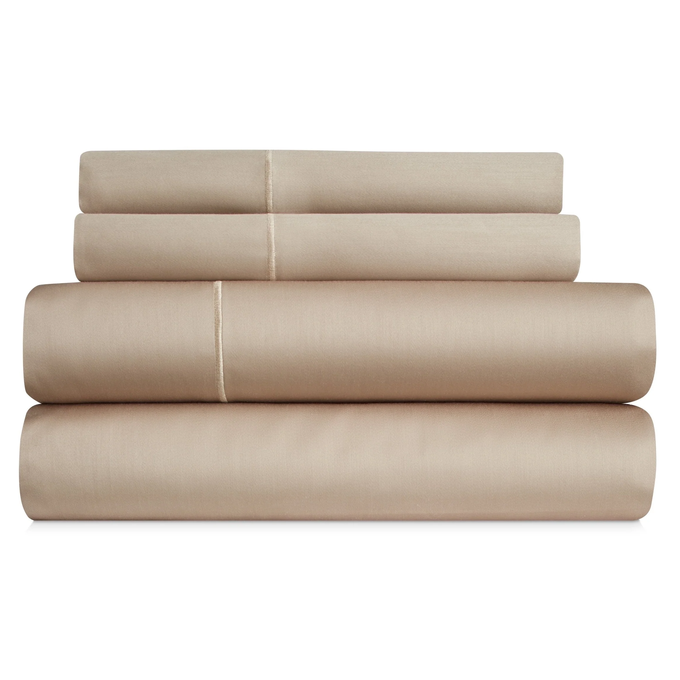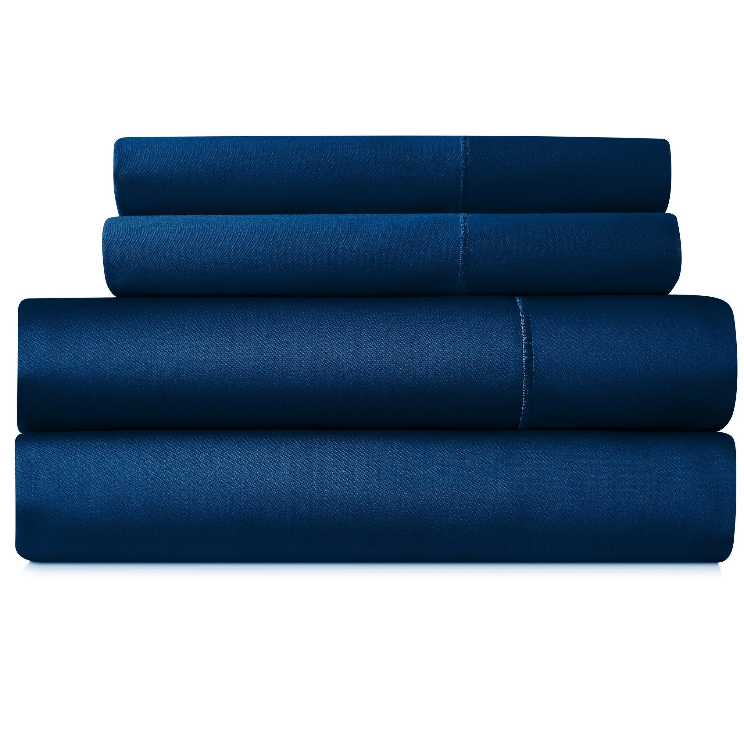Transform your bed into a haven of comfort and style with the Bibb Home 1000TC Cotton Rich 4-Piece Sheet Set. Experience the luxury of high thread count combined with the practicality of a cotton-polyester blend, ensuring a restful and opulent sleep every night. Crafted with precision from a composition of 55% cotton and 45% polyester, this sheet set offers the best of both worlds for a restful night's sleep. Immerse yourself in the lavish comfort of a 1000 thread count, offering a smooth and indulgent surface for a night of unparalleled relaxation.Set includes: 1 Flat Sheet, 1 Fitted Sheet, & 2 Pillowcases Features:Silky Soft: Luxurious sheets are made from ultra soft single ply Egyptian cotton blend yarn Our cotton blend sheets are conveniently machine washable, wrinkle resistant, and Anti - Pill Light, breathable material, and feels cool during hot summer nights and keeps you warm during the winter Patended Weave: Allows only cotton to be in touch with your skin Textiles are manufactured in a OEKO-TEX Standard 100 certified factory