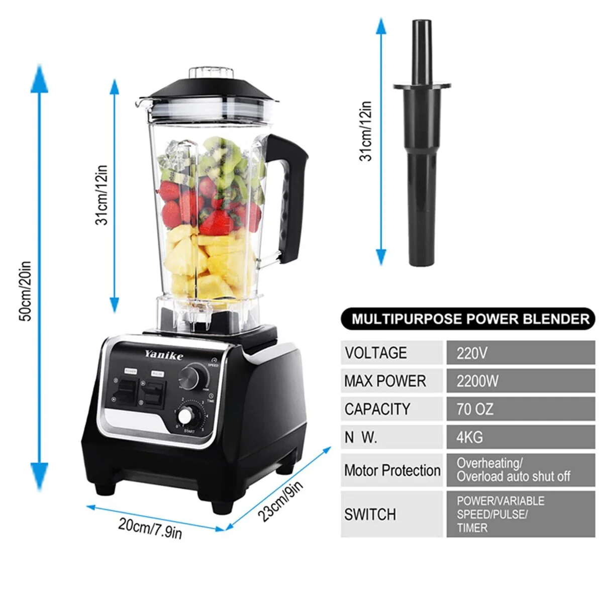 • Blender Smoothie Blender,2200W High Speed Professional Countertop Blender,Commercial Blender Built-in Timer,70OZ BPA-Free Tritan