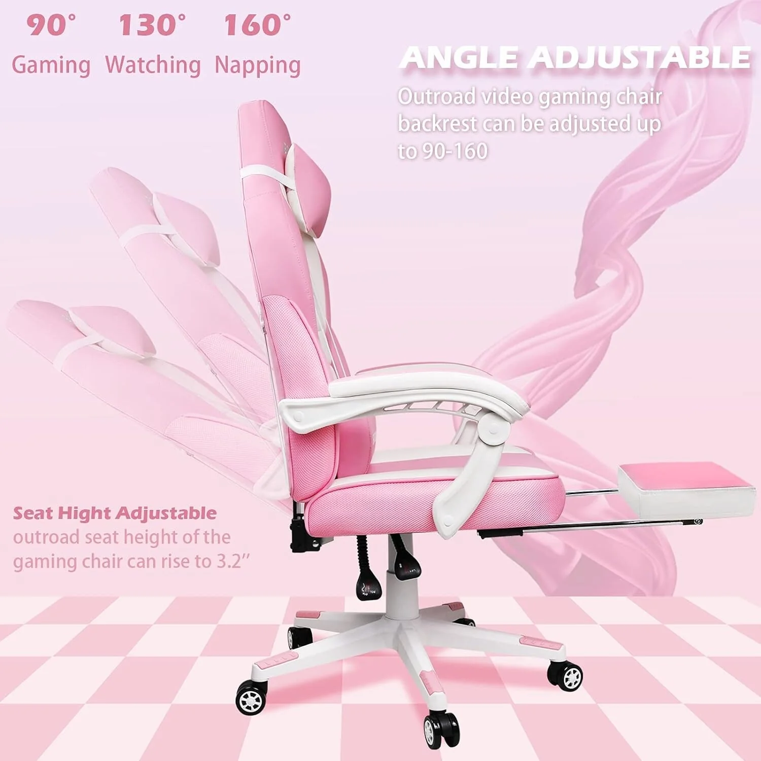 - 📺【Multi-Function Adjustable Game Chairs】This computer chair has an adjustable seat height feature that enables you to lower or raise your seat between 13.4 to 17.3 inch.360 Degree Swivel and omni-directional Wheels. 90 - 155 degree adjustable backrest.Massage lumbar support can relax your lumbar. You can sit it when you play computer. You can also use it as a PS4 chair or office chair.