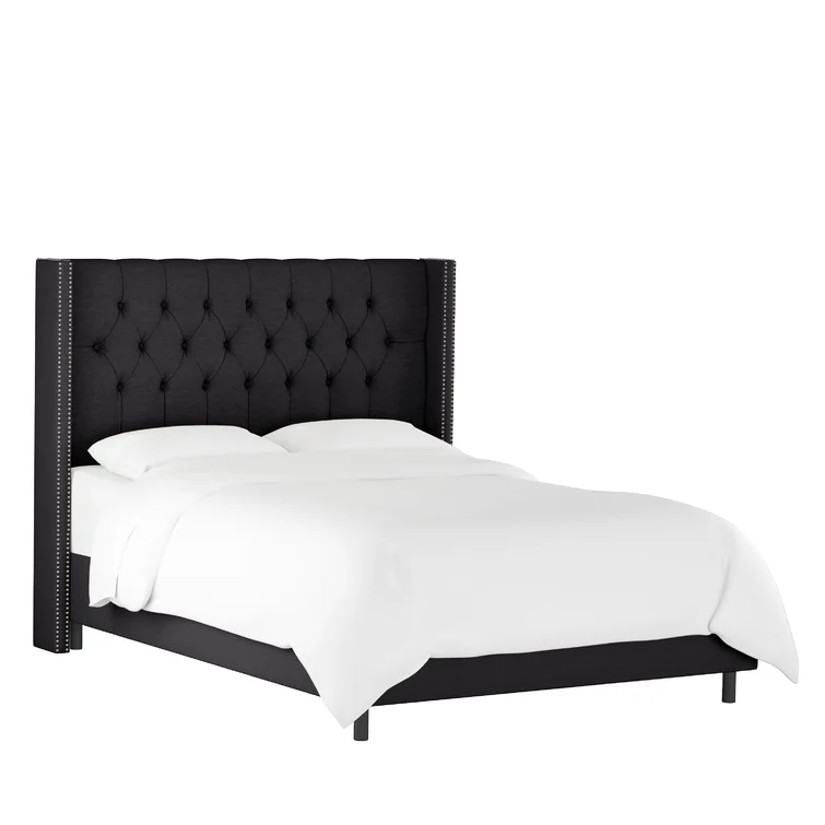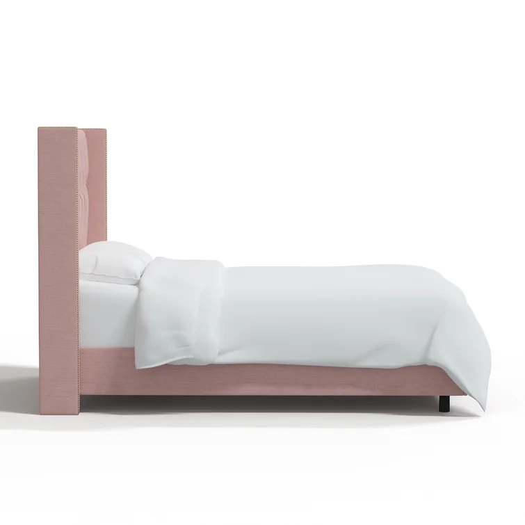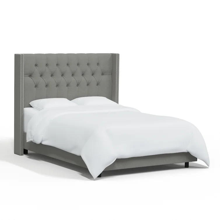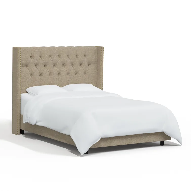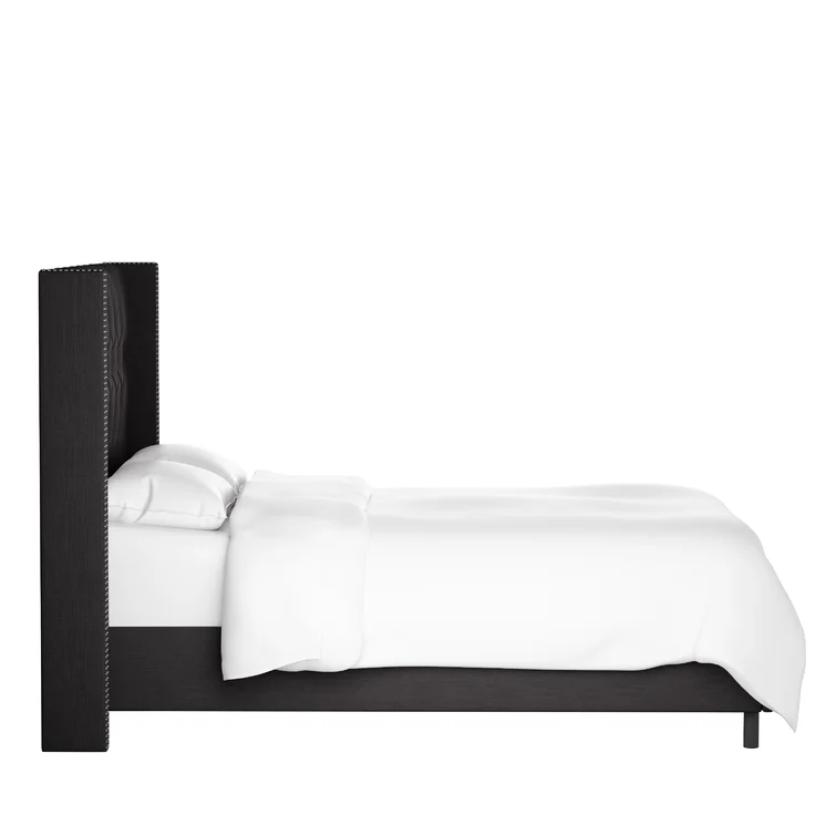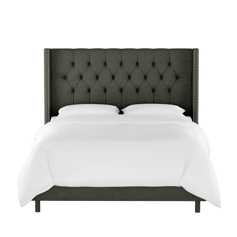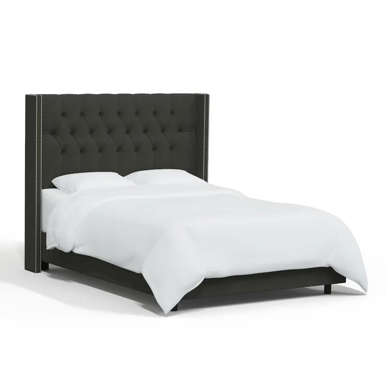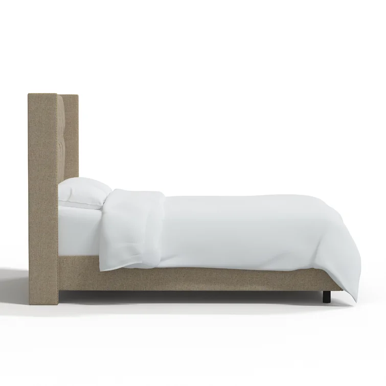 Since you spend about one-third of your life asleep (and another third wishing you were back between the sheets), you might as well pass the time in a bed you love. Crafted from solid pine wood, this bed features a subtle wingback headboard wrapped in linen-like fabric for a classy, casual look in any cozy master suite. Its foam-padded headboard offers support for reading and watching TV, while button tufts and nailhead trim round out the design.
