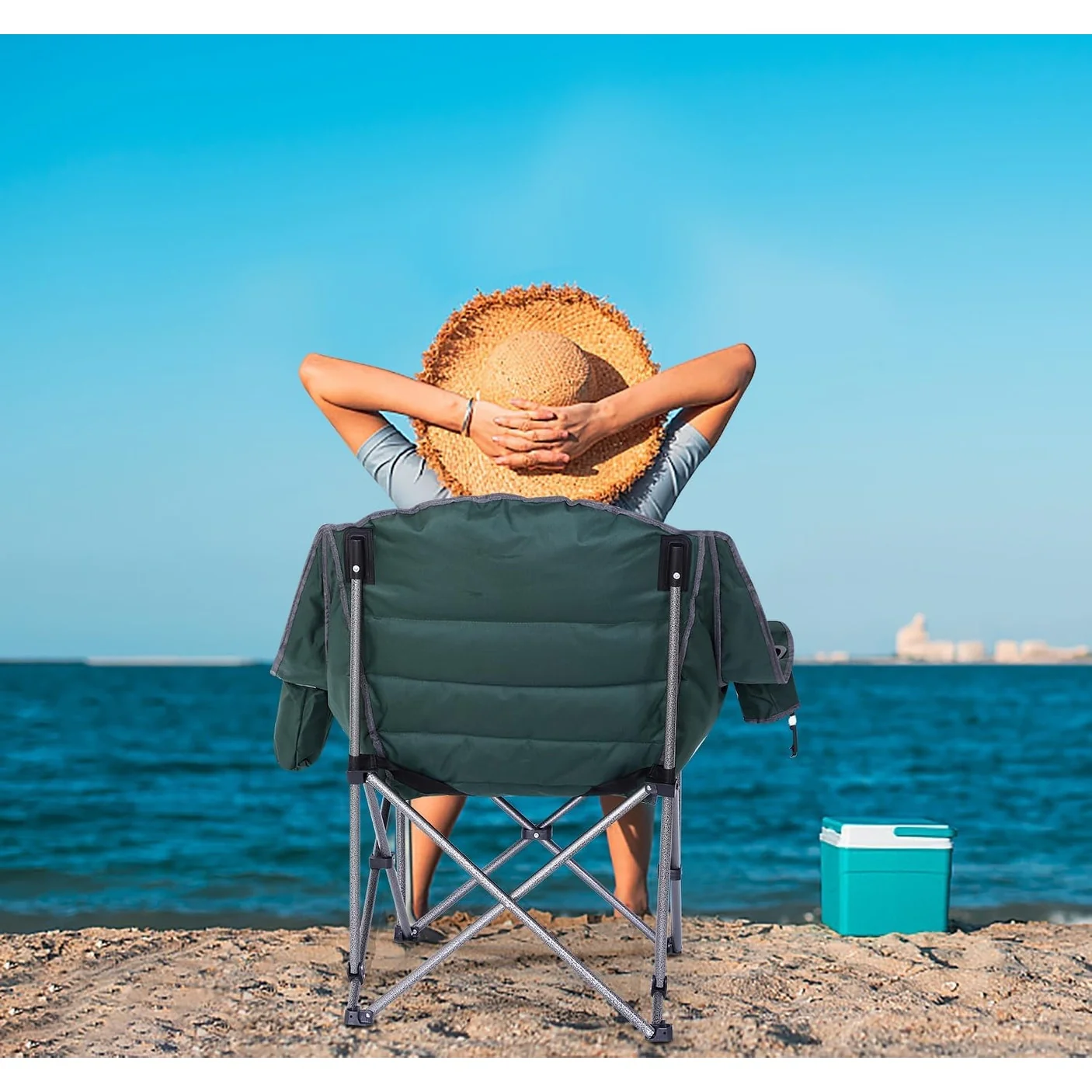 - Versatile Outdoor Seating:** Perfect for camping, picnics, beach outings, or backyard gatherings, this chair offers versatile outdoor seating. The combination of extra-large dimensions and thick padding makes it an ideal choice for those who prioritize both comfort and space during their outdoor activities.