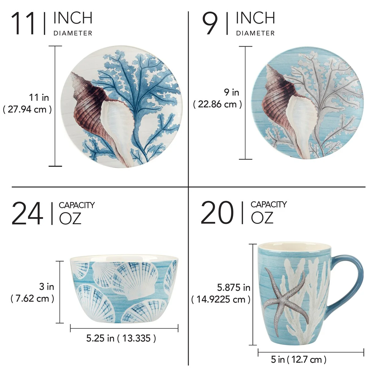 - Versatile Collection: With dinner and dessert plates, mugs, and ice cream bowls, this set has everything you need for a full course meal, echoing the variety of the ocean's own offerings.