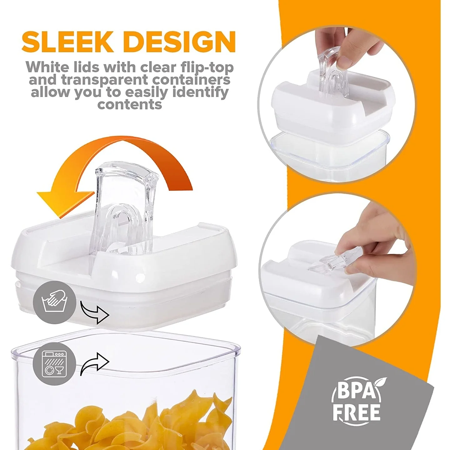 - SLEEK DESIGN - Black or white lids with clear flip-top and transparent containers allow you to easily identify contents