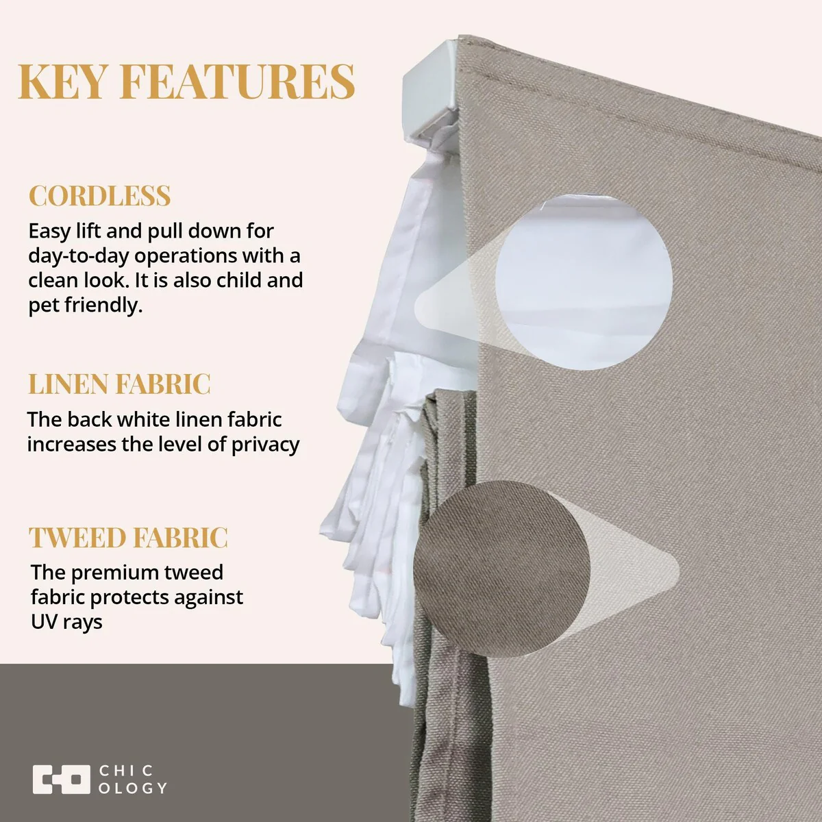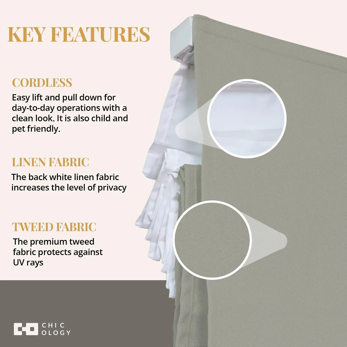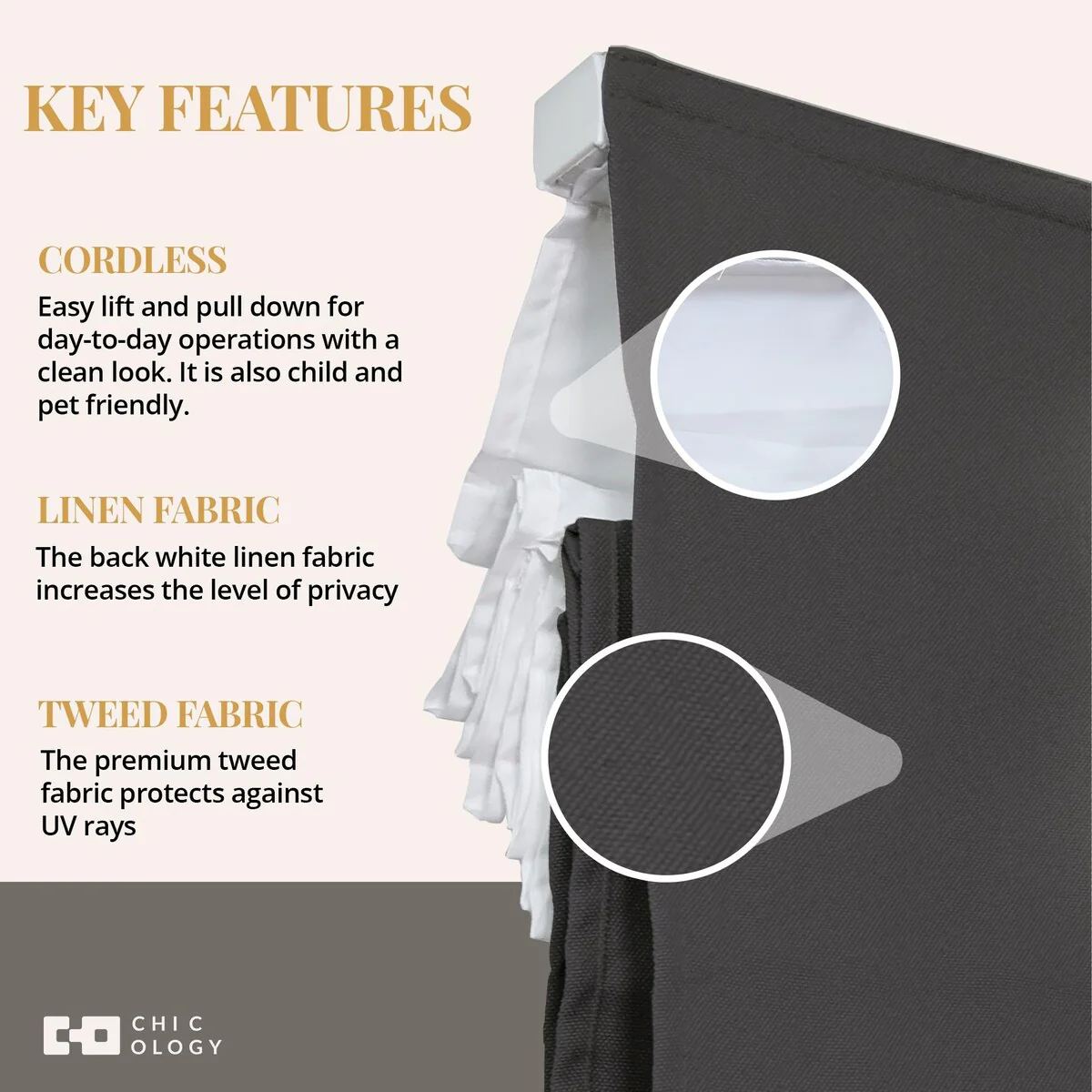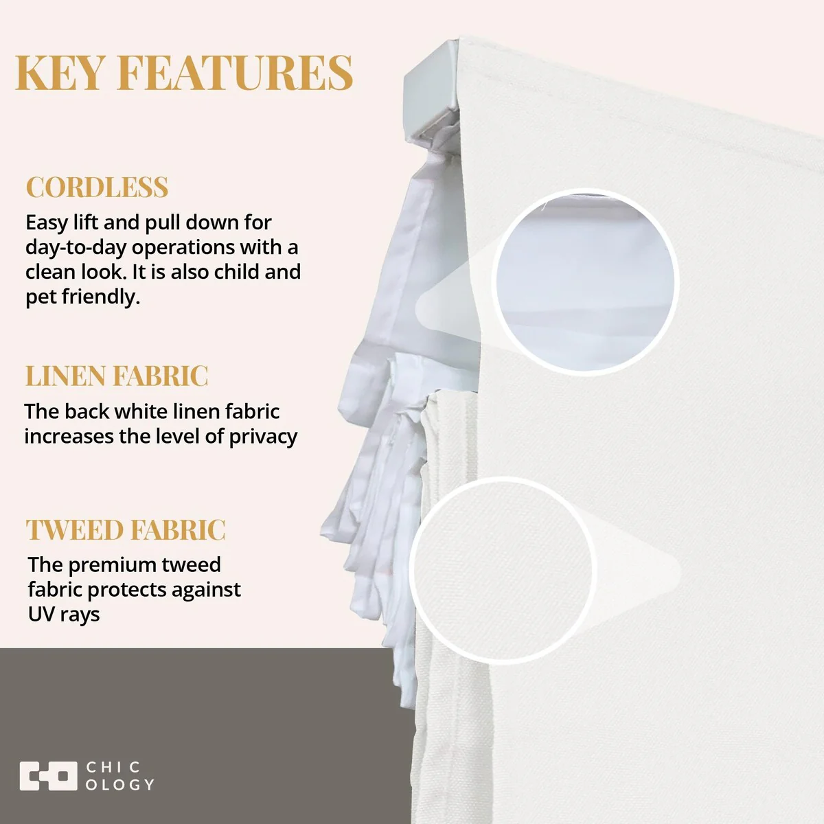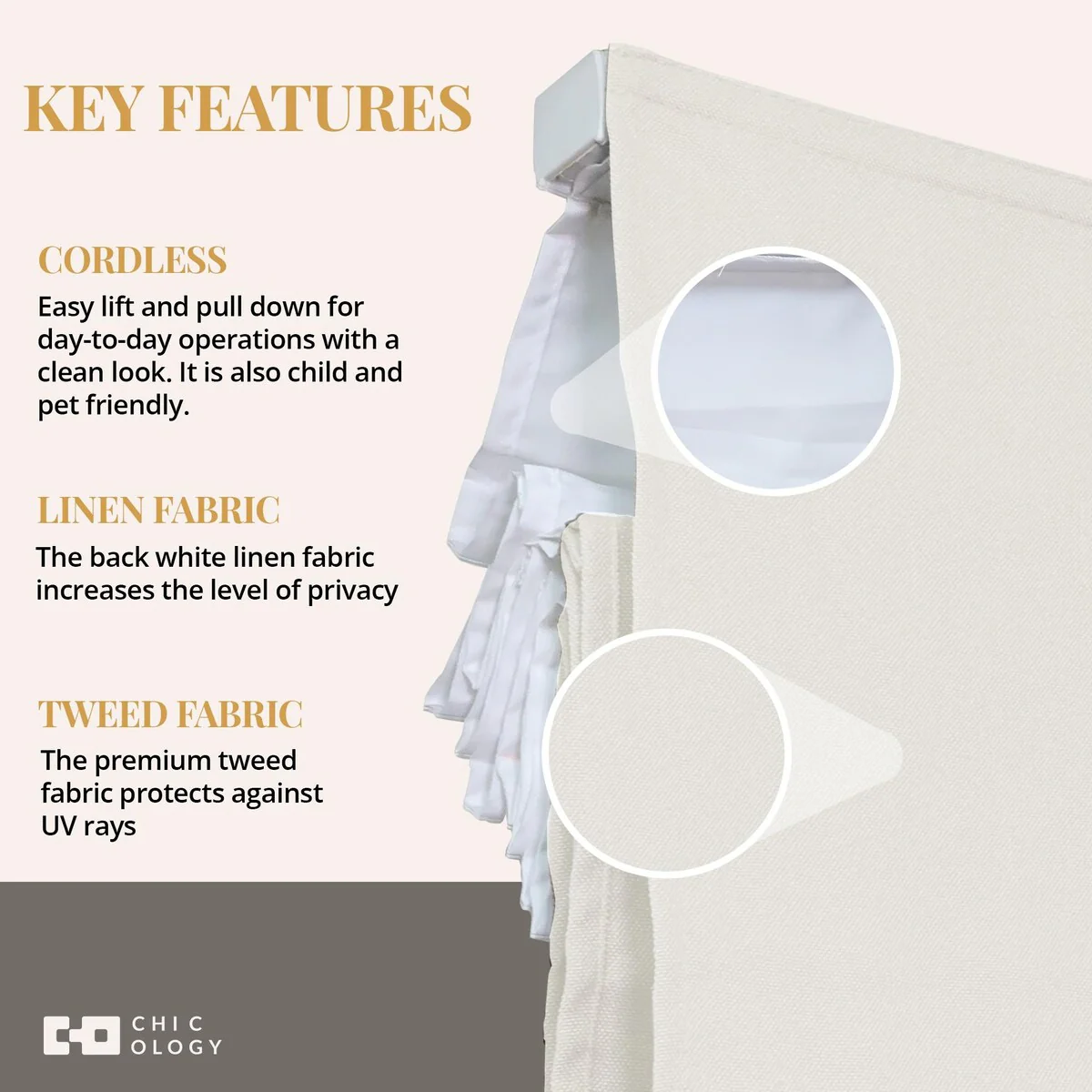 - Cordless & Child-Safe Design - Smooth, tangle-free operation for a sleek look and enhanced safety.