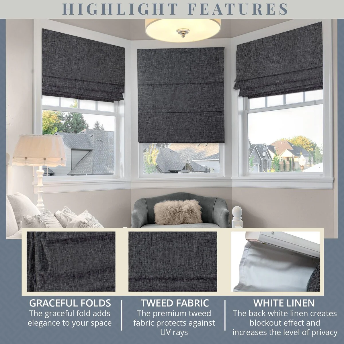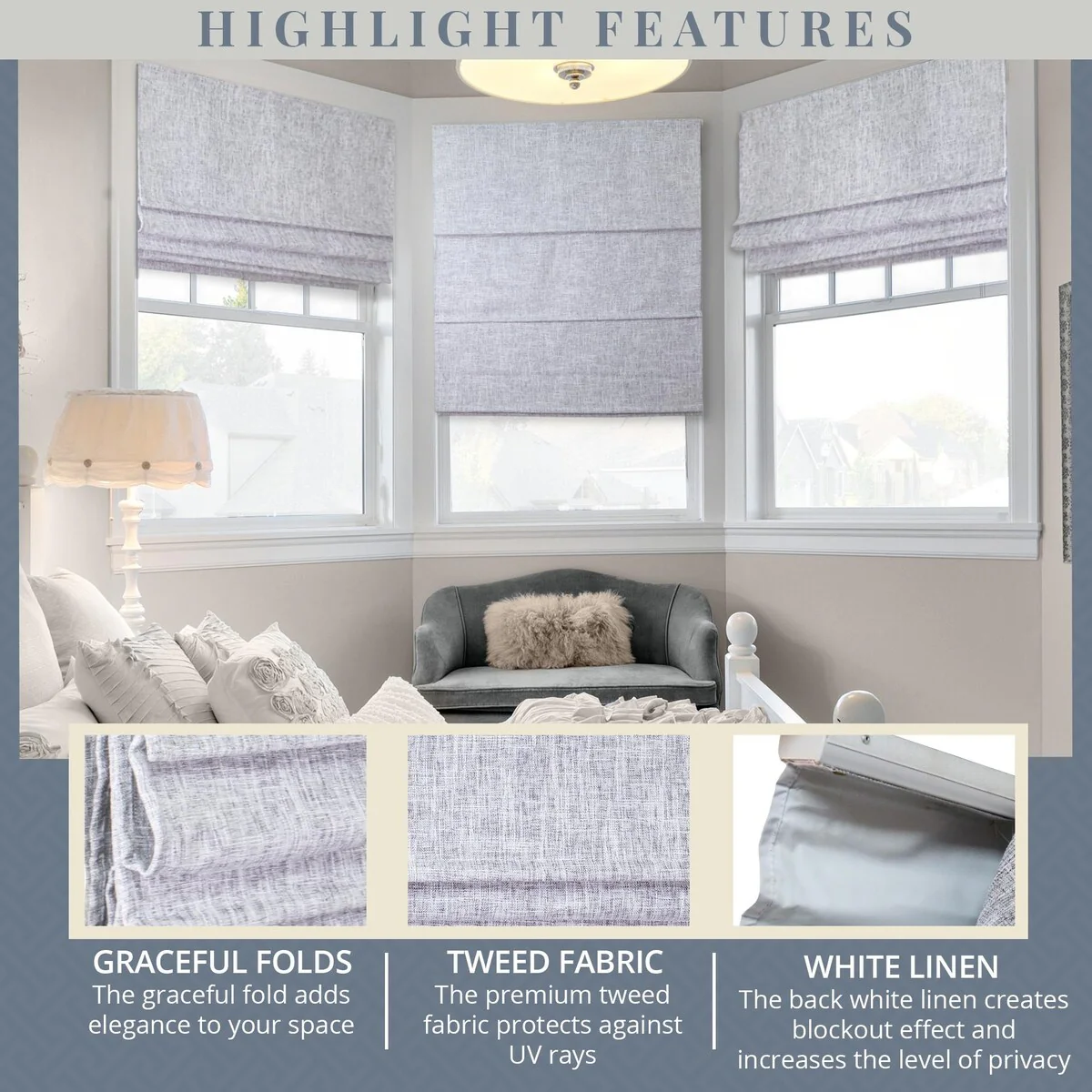 - Stylish & Versatile - Soft Roman folds add an elegant touch, perfect for any room décor.