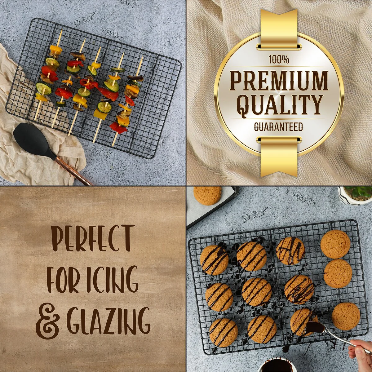 - NON STICK COATING: The cooling rack is made of food-grade superior steel, which is durable and rust-resistant. Featuring a special innovative non-stick coating which allows for easy release and cleanup.