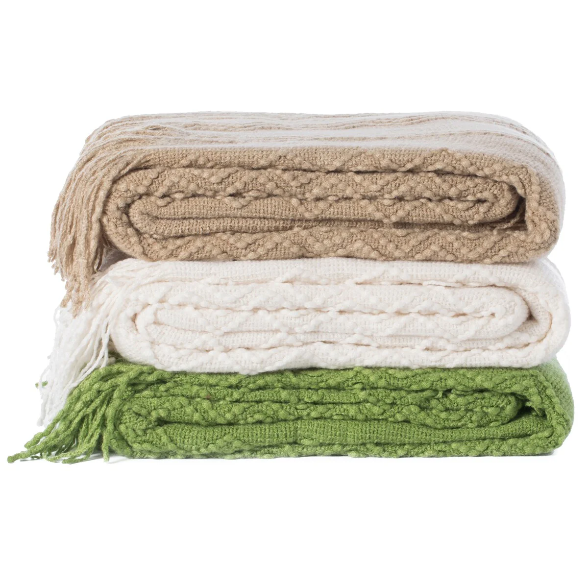 Experience Unmatched Comfort and Coziness with this Versatile Decorative Throw Blanket, Designed to Keep You Warm and Inviting No Matter the Weather. Its Lightweight Textured Knit Fabric Makes it the Perfect All-Season Blanket, providing a Luxurious and Inviting Feel Throughout the Year. Featuring a Knitted Diamond Pattern with Knotted Fringes, this Throw Blanket is Both Stylish and Functional, Perfect for Adding a Touch of Texture and Charm to Your Home Decor. Its High-Quality Craftsmanship Ensures that it Won't Shed or Wear Easily, Holding Up Well for Continual Use. To Ensure Longevity, We Recommend Handwashing the Blanket in Cold Water with Mild Soap. This Will Help to Preserve the Softness and Texture of the Blanket, Ensuring That it Remains a Favorite Accessory for Years to Come. Transform Any Living Space into a Cozy and Inviting Oasis with this Beautifully Crafted Throw Blanket, Perfect for Adding a Touch of Comfort and Style to Your Home Decor. Its Durable Construction and Soft, Inviting Texture Make it the Perfect Addition to Your Bedding, Couch, or Armchair, providing a Warm and Inviting Haven That You'll Never Want to Leave.